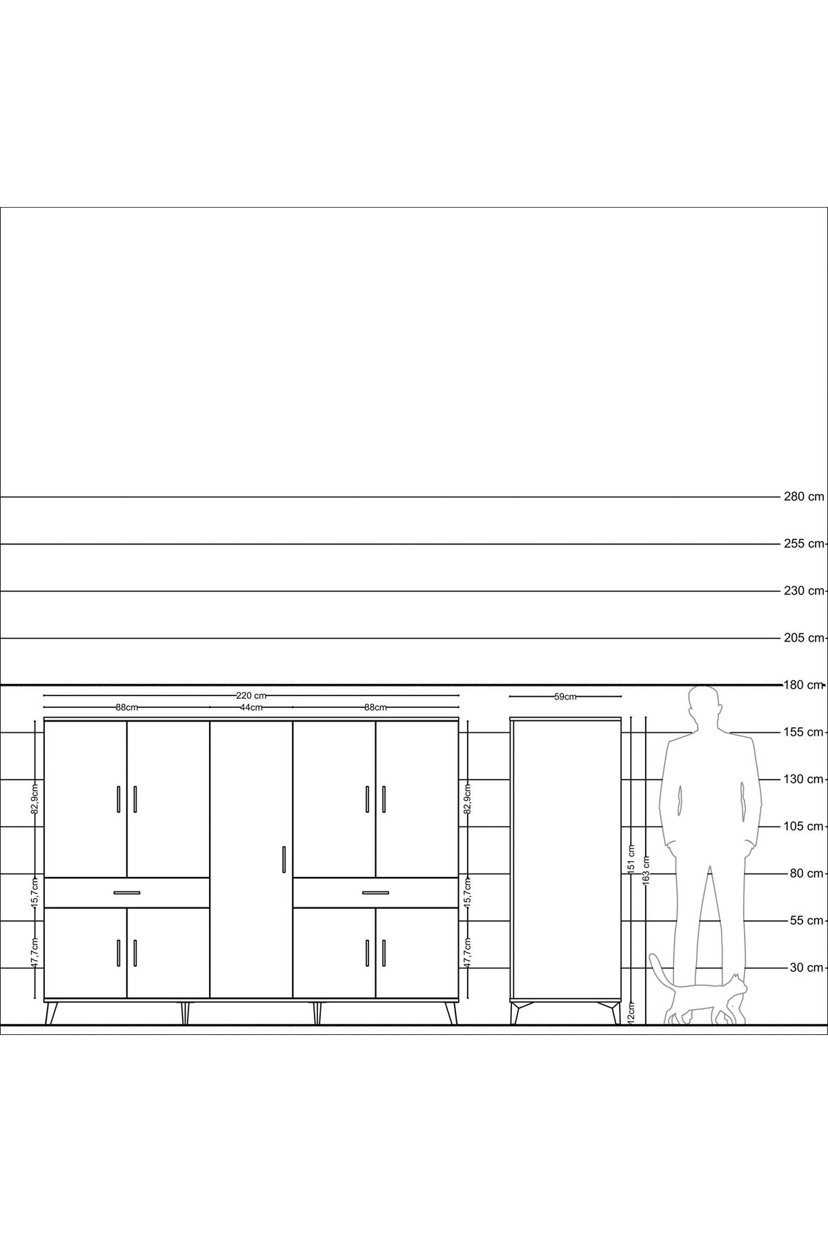 Genişlik: 220 CM – Derinlik: 59 CM – Yükseklik: 163 CM