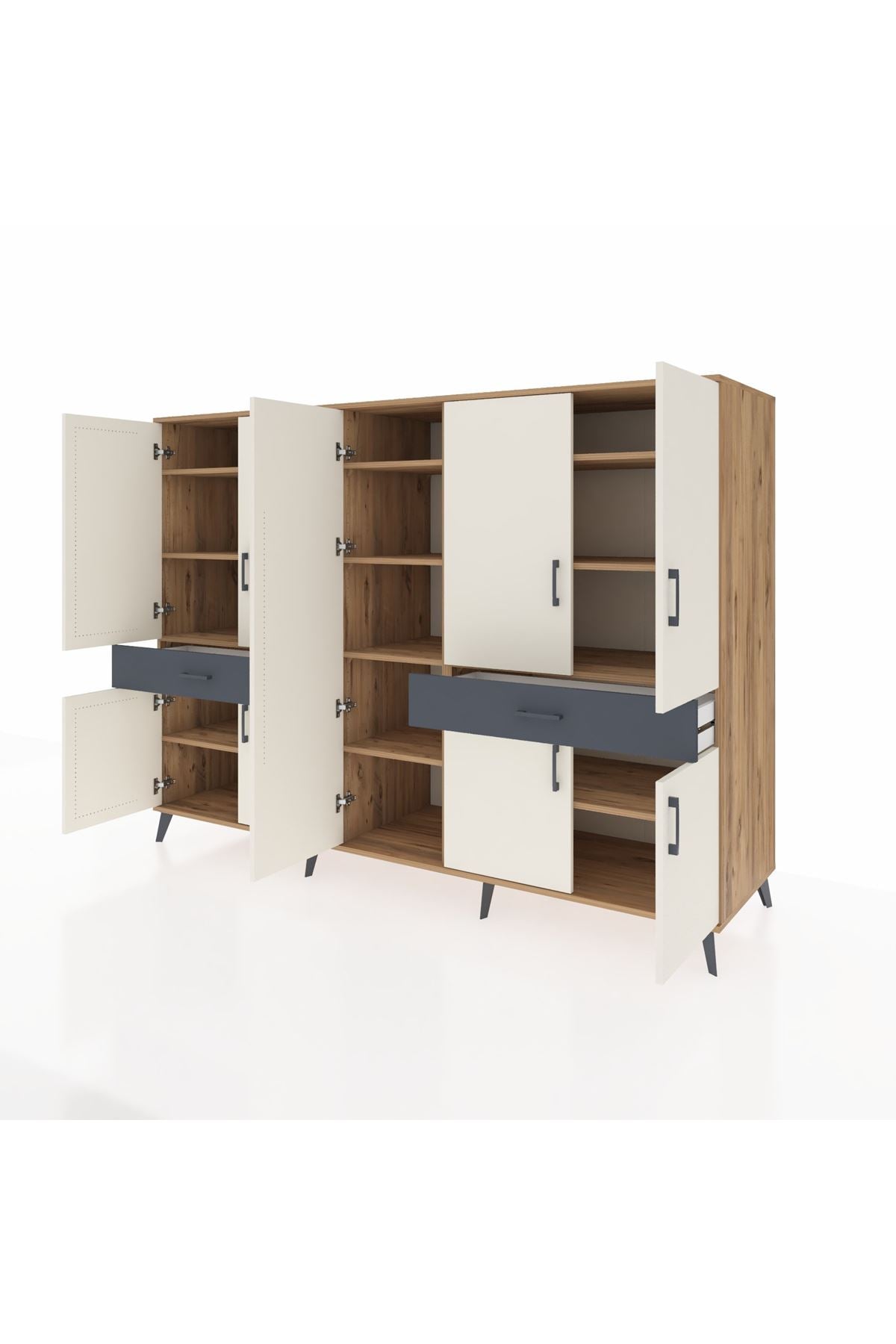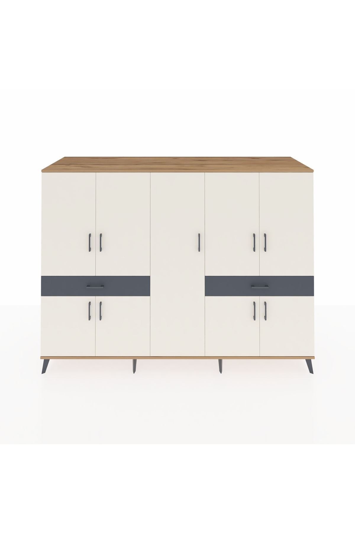Kronos Dolap 12 Raflı 2 Çekmeceli 8 Kapaklı 220x59x163 Çam-Aytaşı/Antrasit