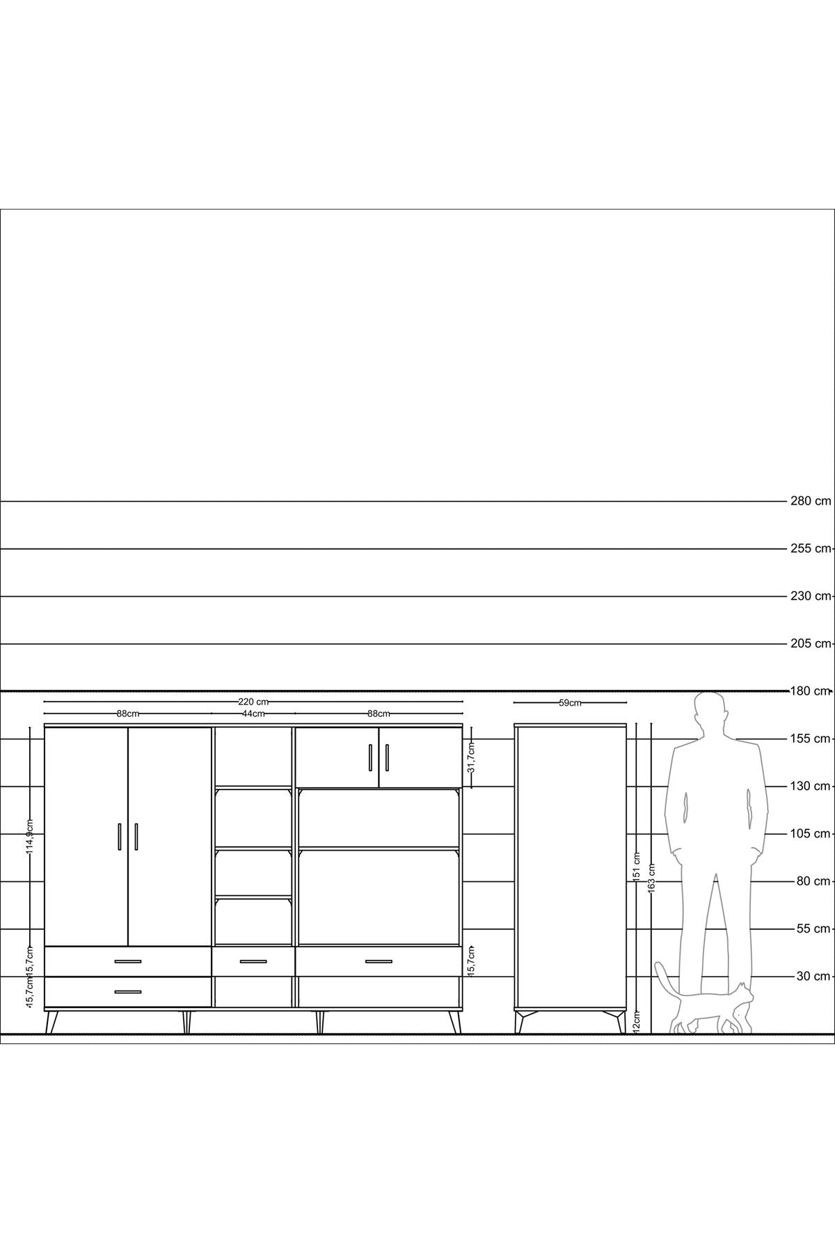 Genişlik: 220 CM – Derinlik: 59 CM – Yükseklik: 163 CM