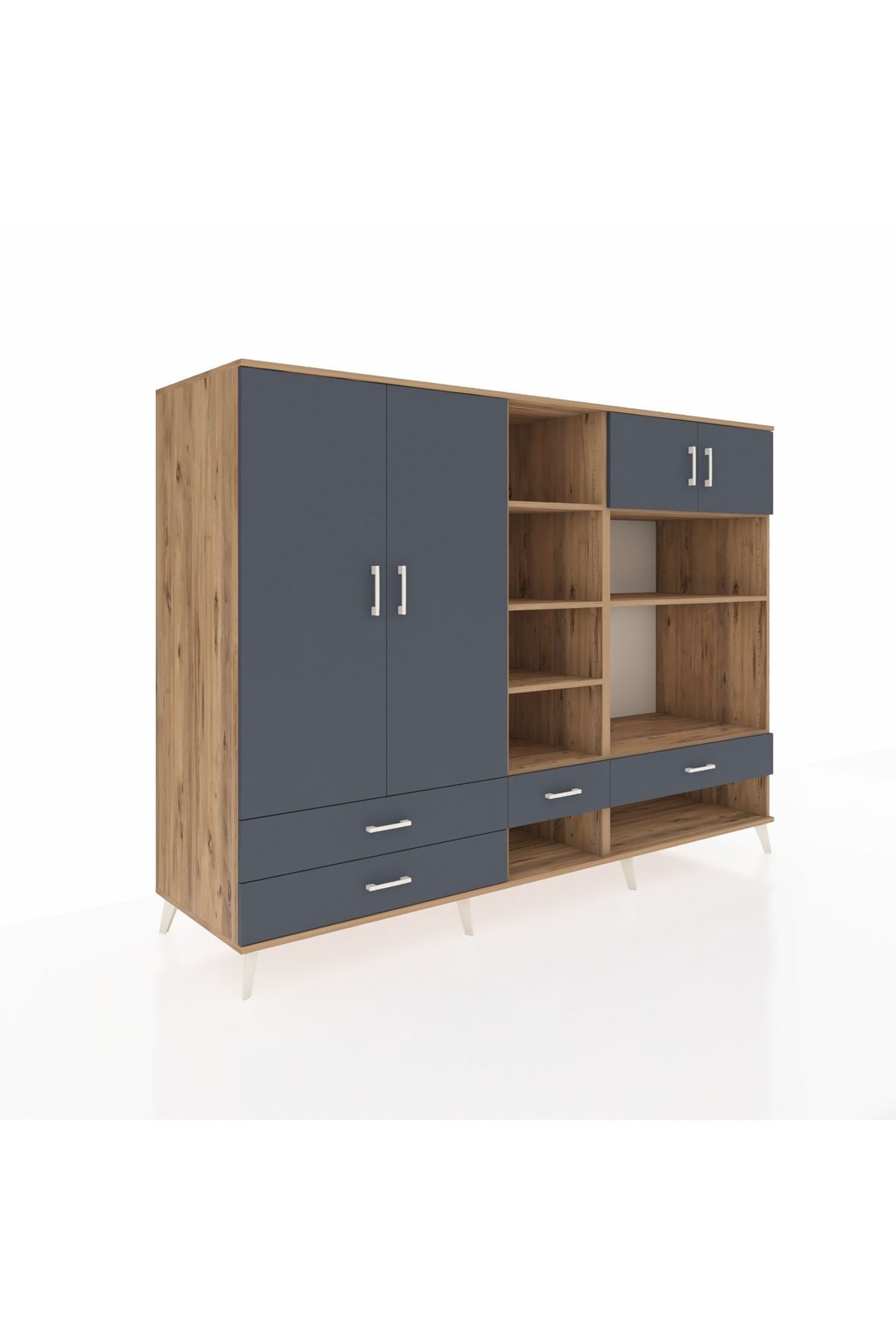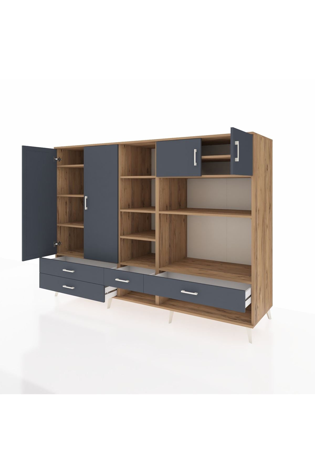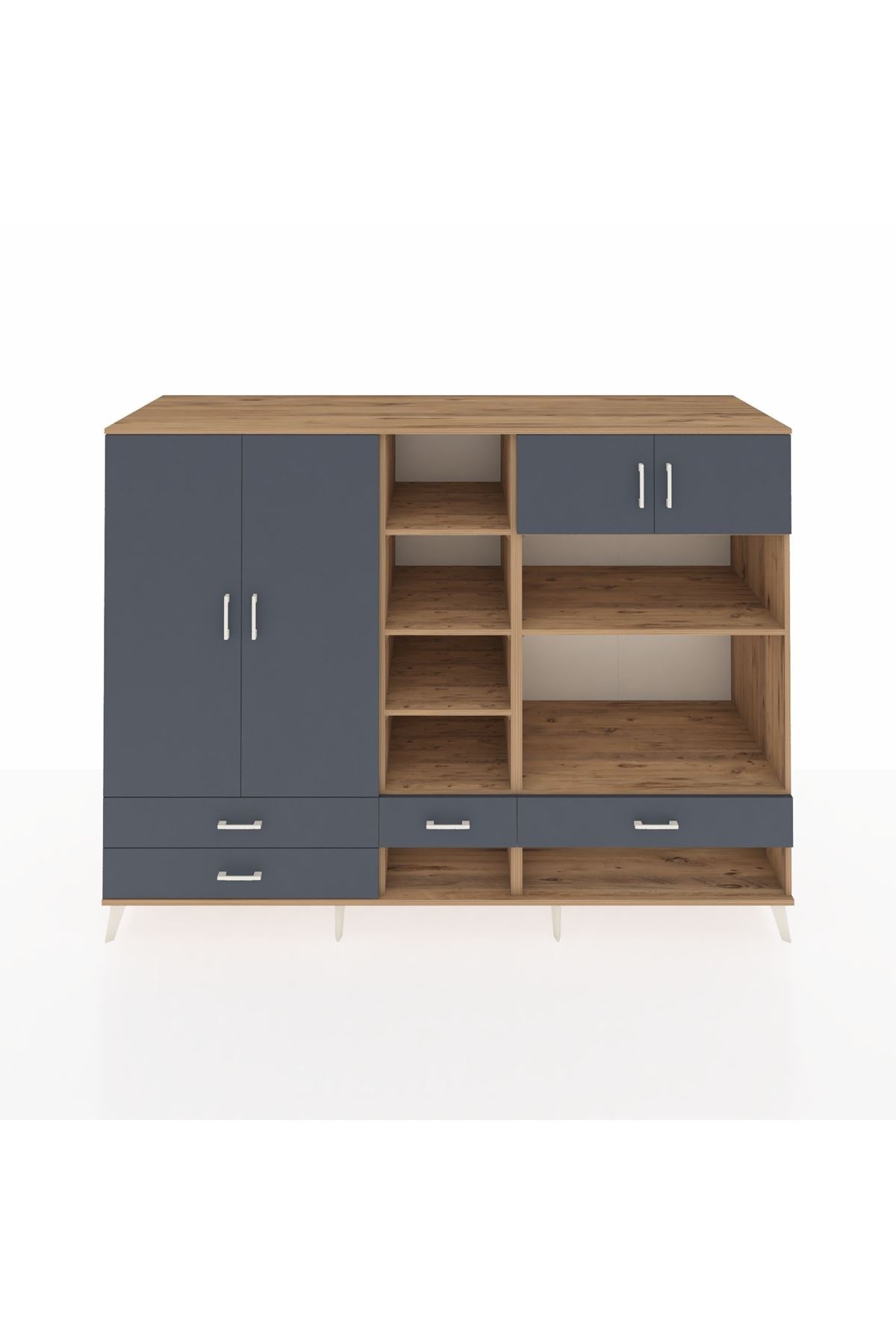 Kronos Dolap 12 Raflı 4 Çekmeceli 4 Kapaklı 220x59x163 Çam-Antrasit
