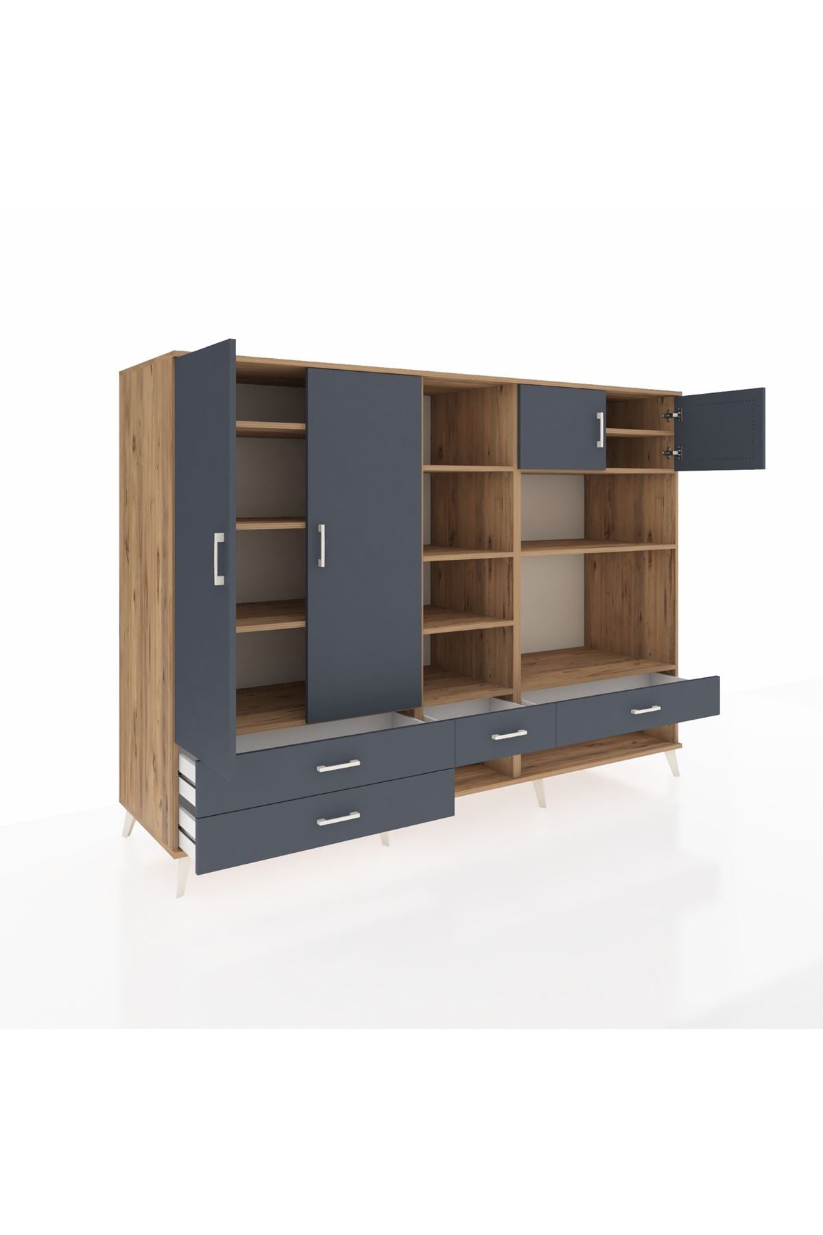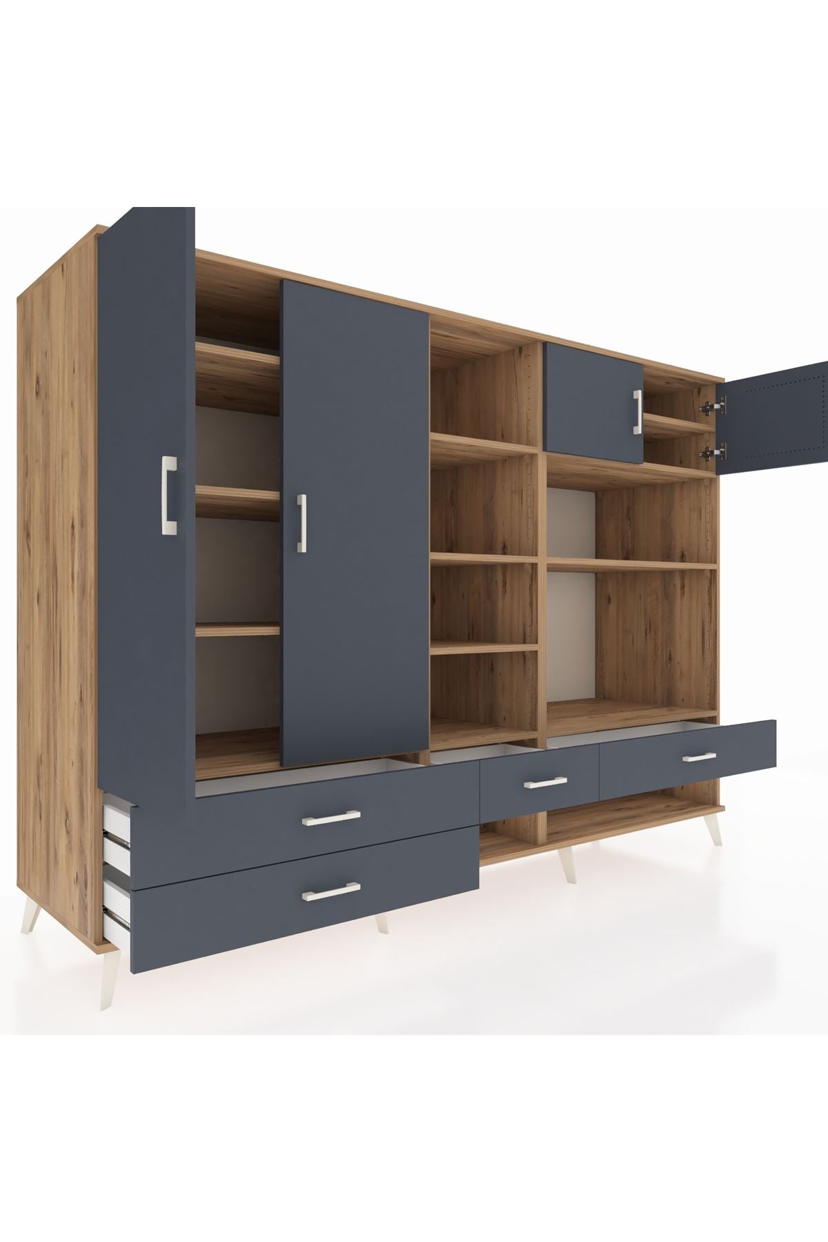 ✨ Evine düzen ve şıklık katmak isteyenler için tasarlanan Kronos Dolap ile tanışın! Çam ve antrasit renklerinin uyumu, modern yaşam alanlarına sıcak bir dokunuş getiriyor. 12 rafı, 4 çekmecesi ve 4 kapağı ile eşyalarınızı düzenli bir şekilde saklamanız için ideal bir çözüm sunuyor.