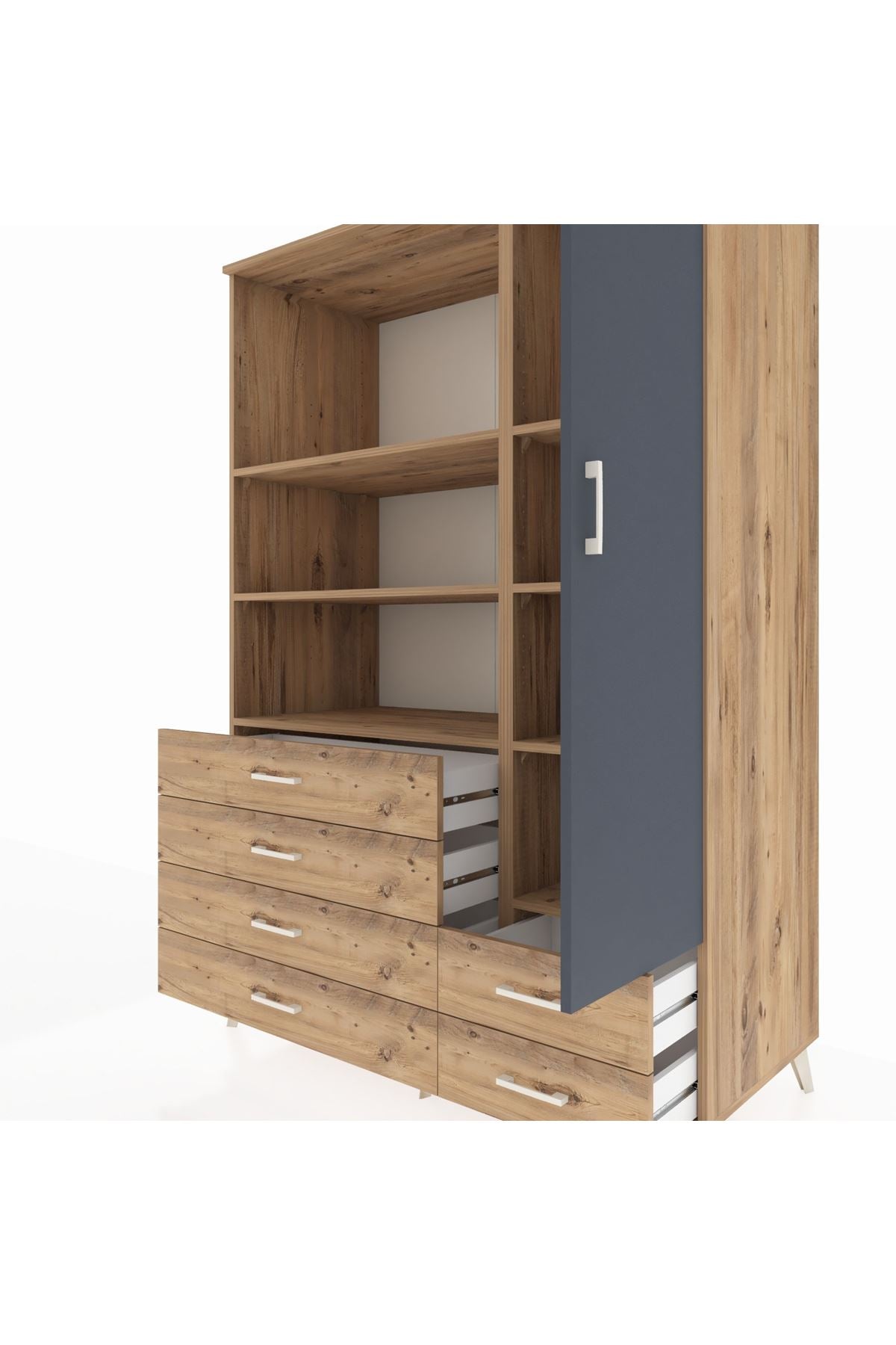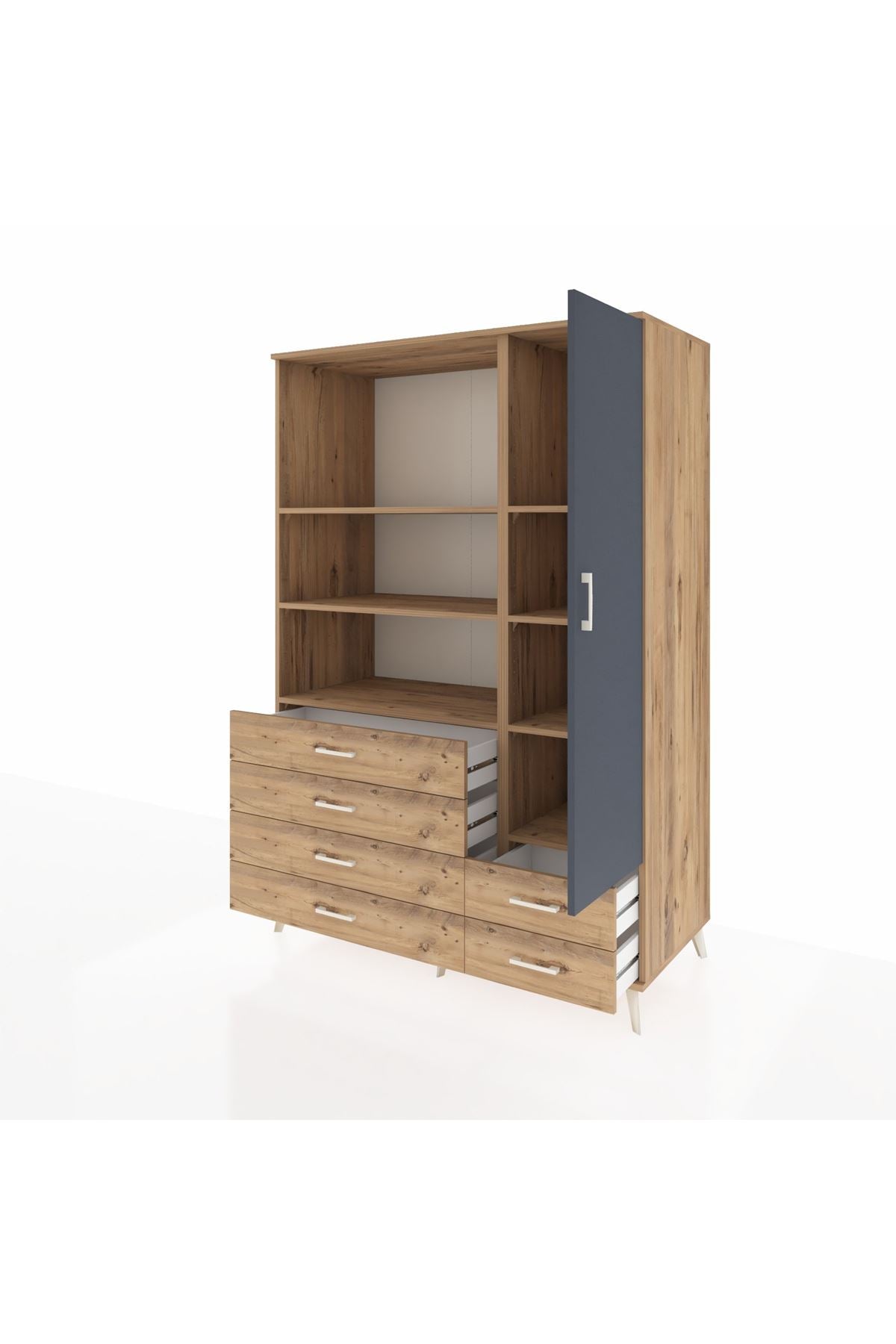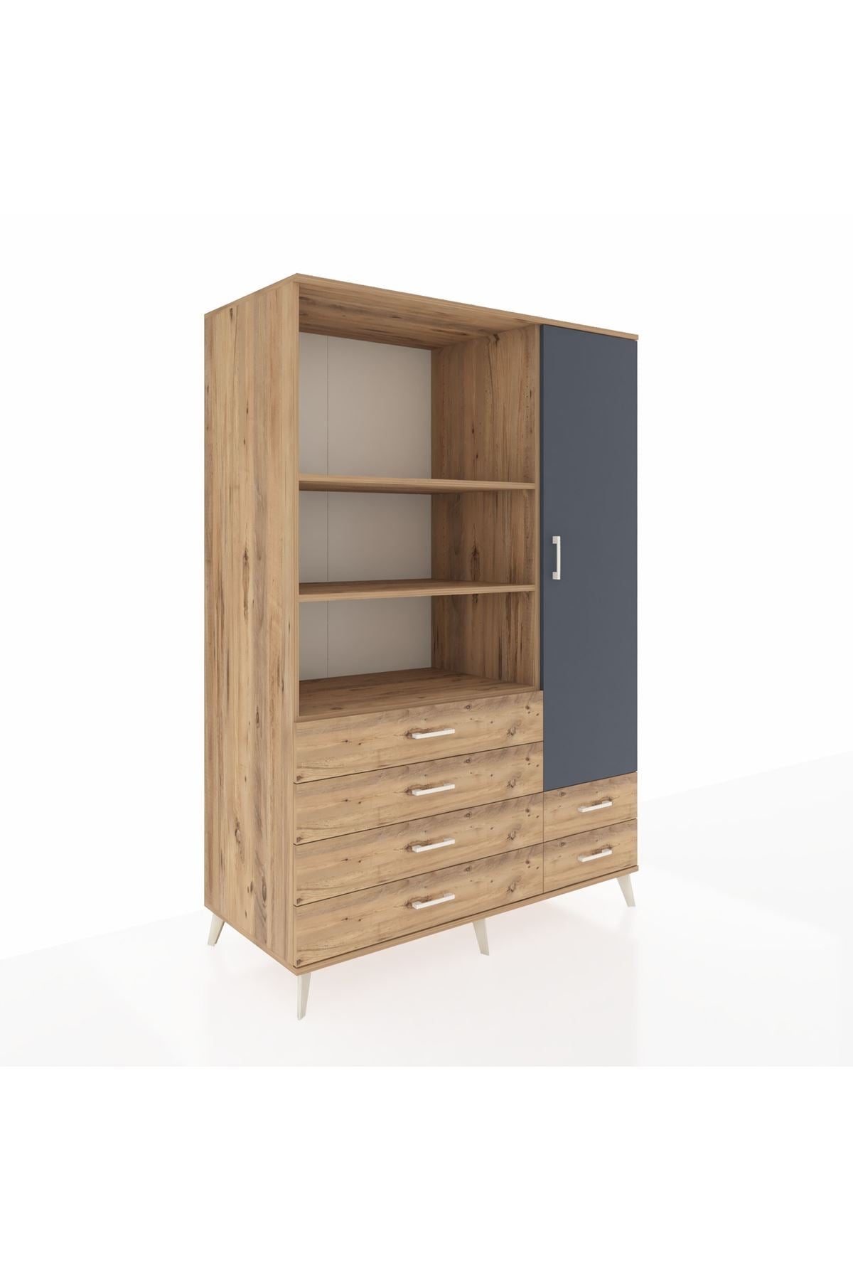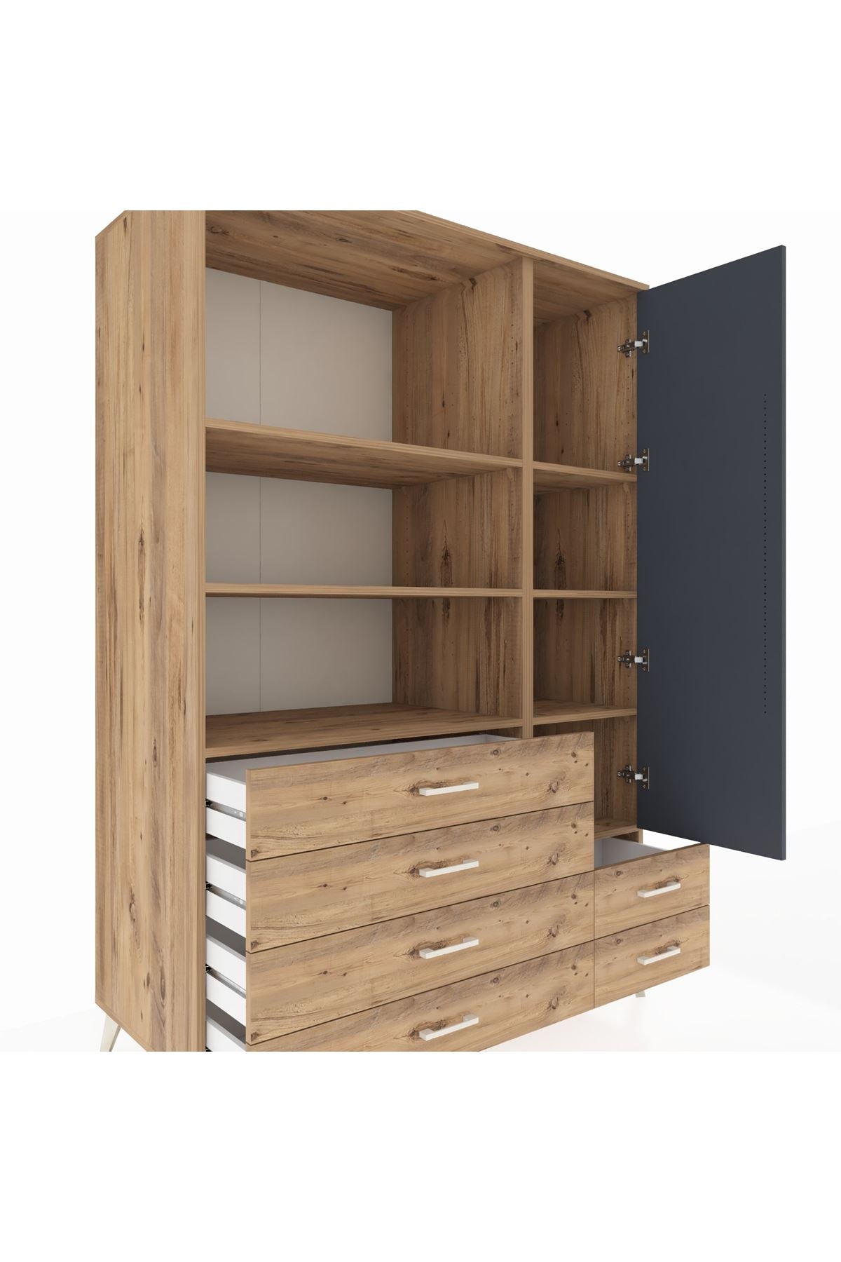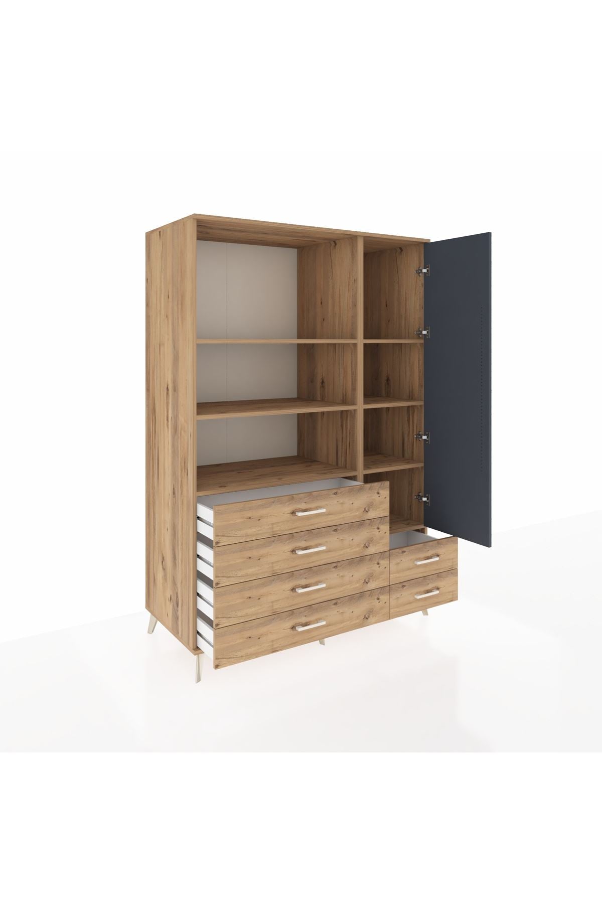 Kronos Dolap 7 Raflı 6 Çekmeceli Tek Kapaklı 132x59x195 Çam-Antrasit/Çam