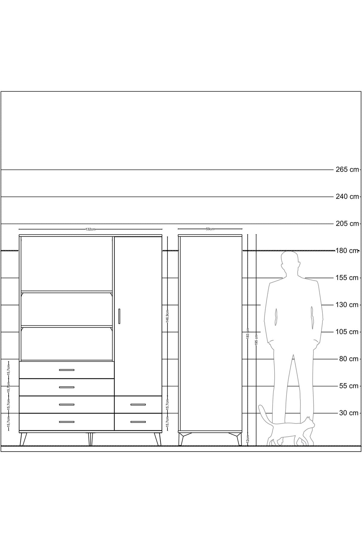 Genişlik: 132 CM – Derinlik: 59 CM – Yükseklik: 195 CM