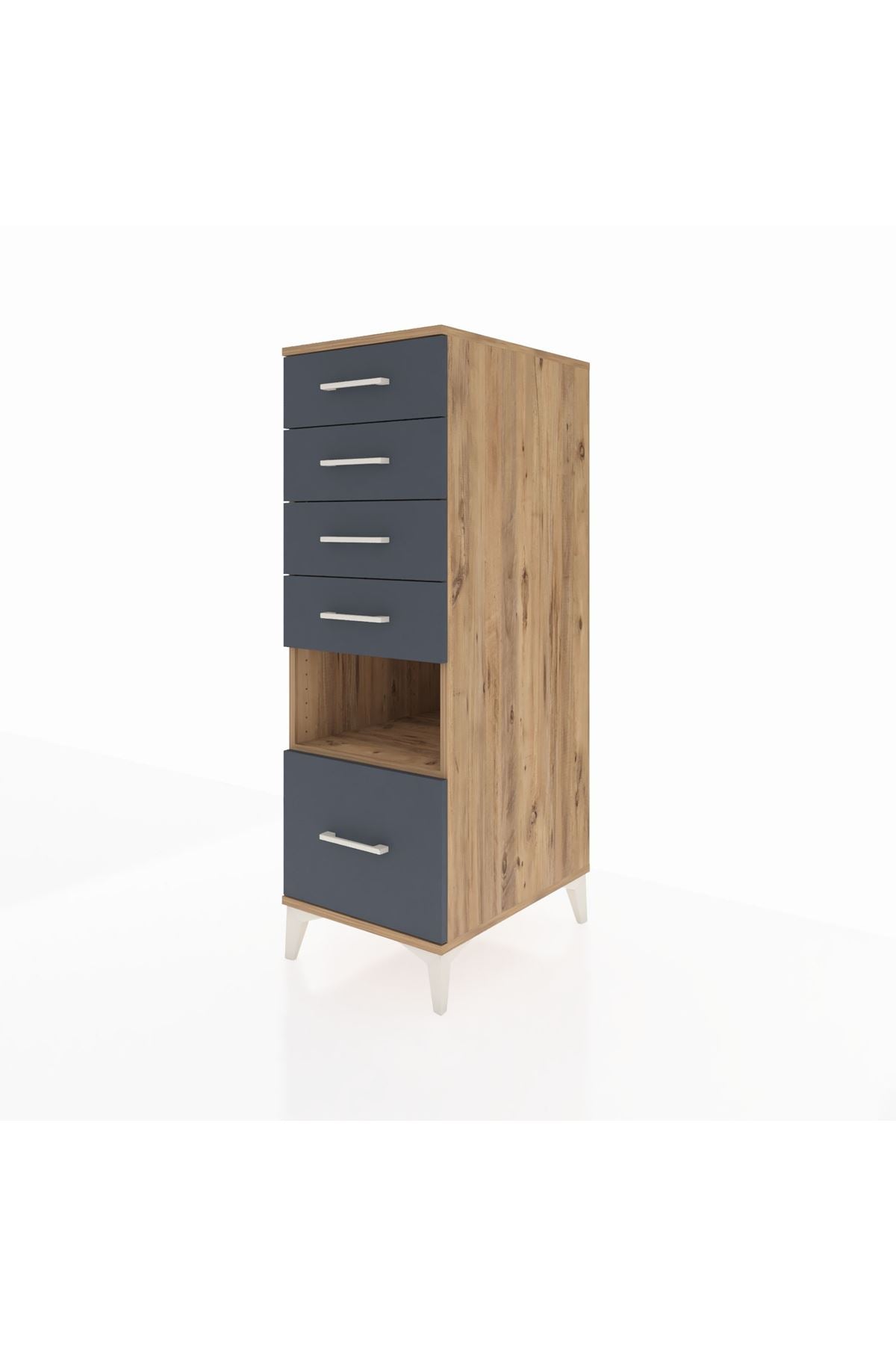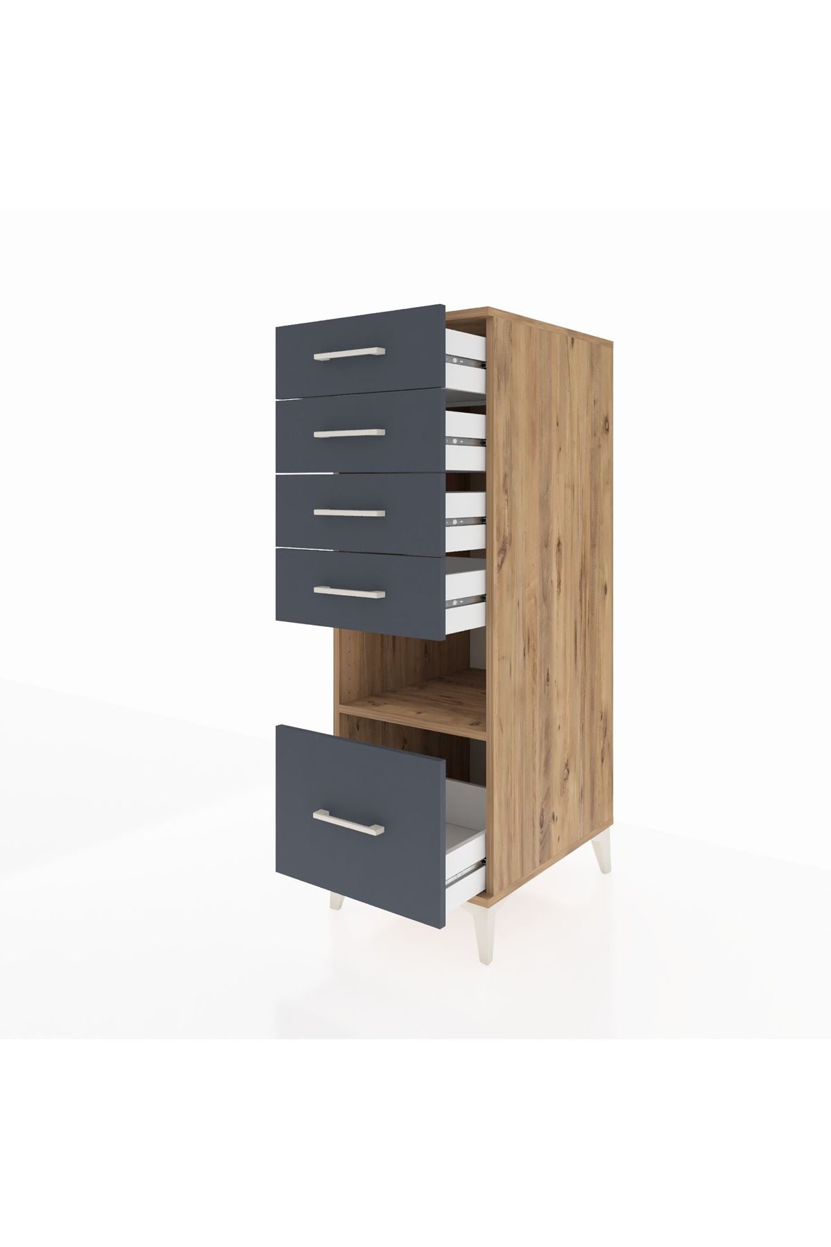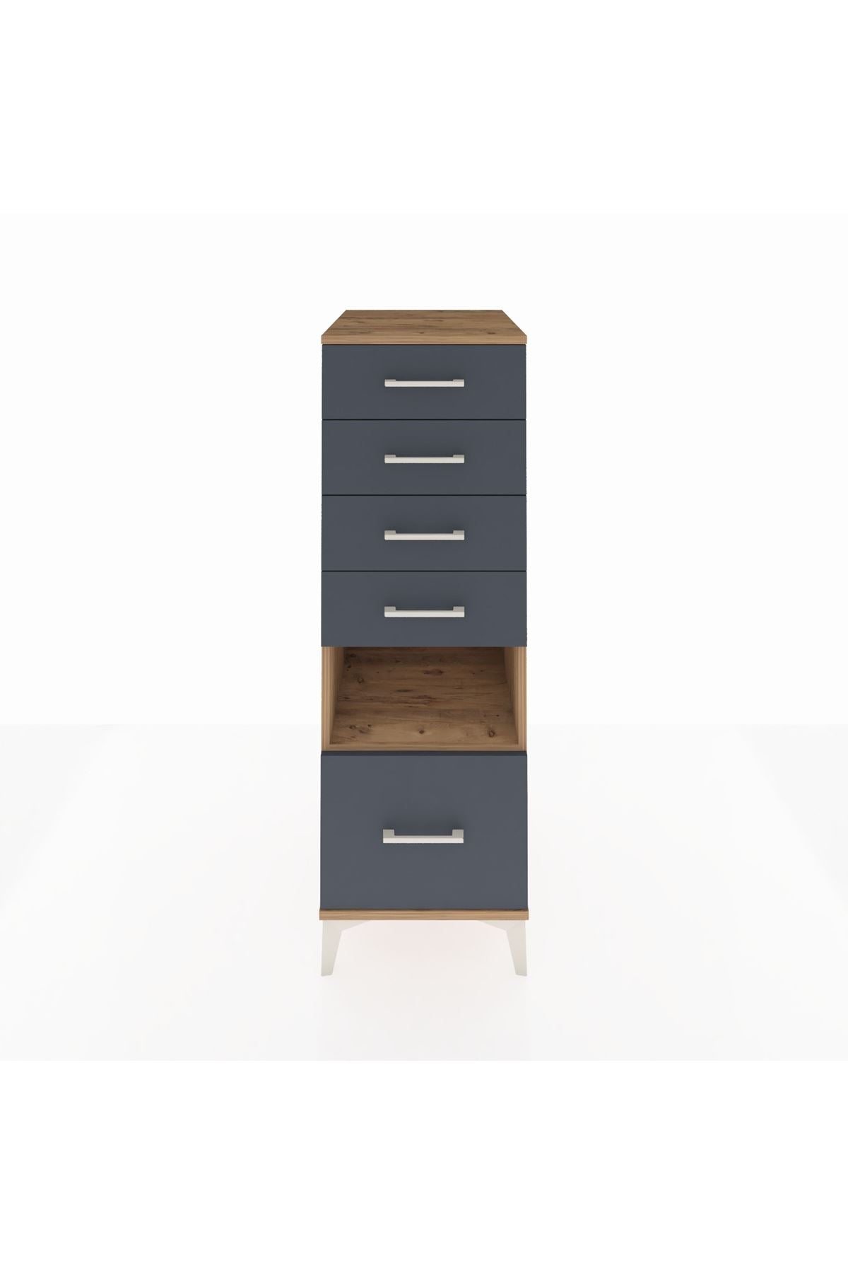 Kronos Dolap Tek Raflı 5 Çekmeceli 44x59x134 Çam-Antrasit