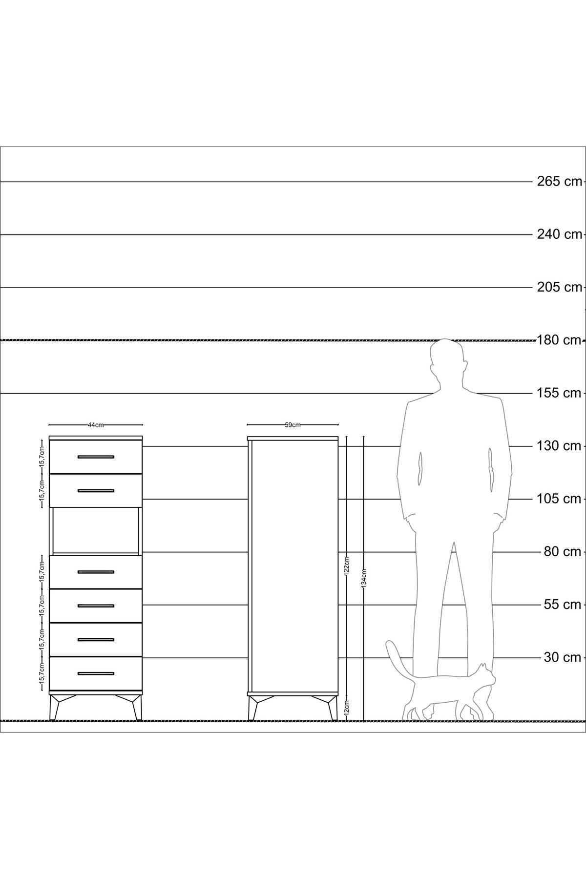 Genişlik: 44 CM – Derinlik: 59 CM – Yükseklik: 134 CM