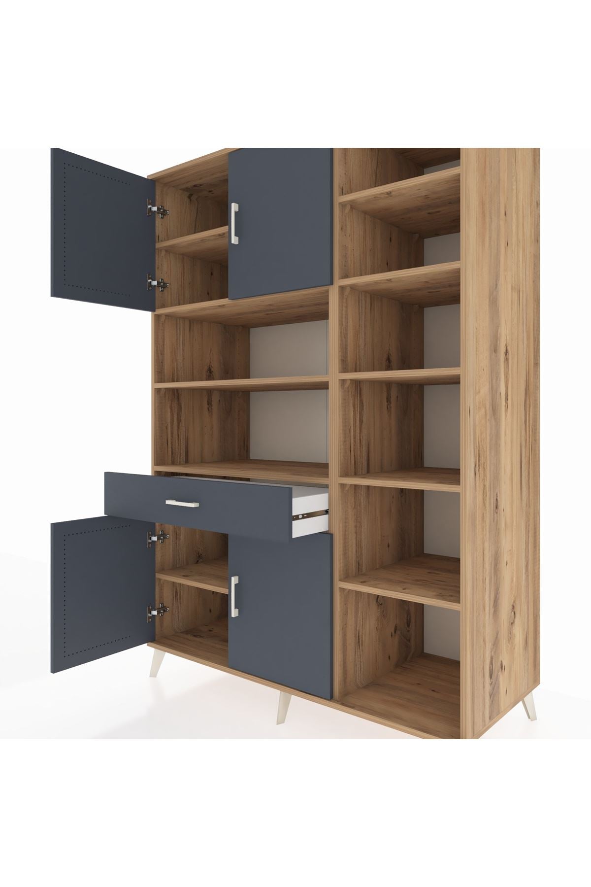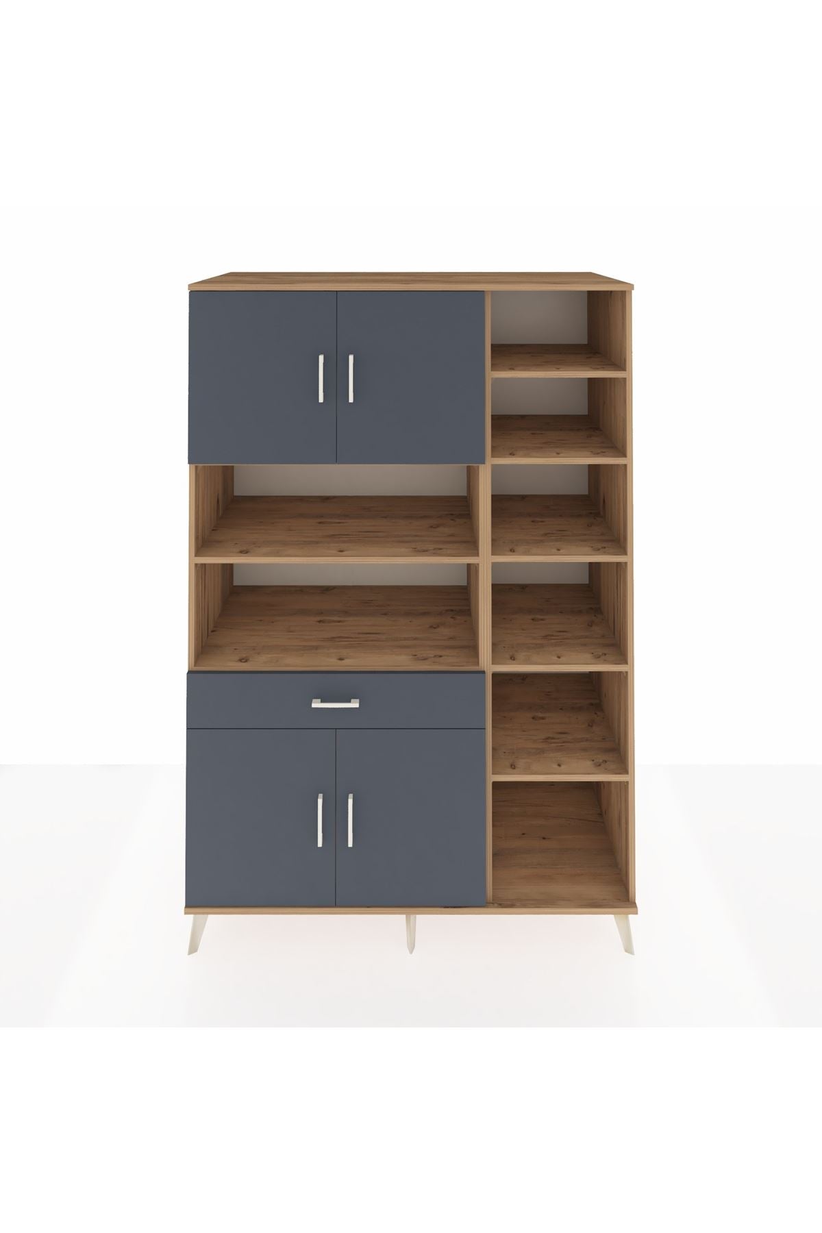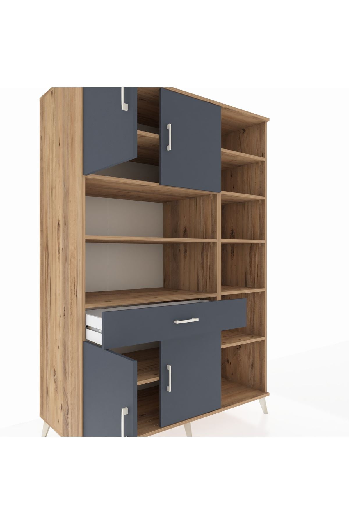 Kronos Gardrop 10 Raflı Tek Çekmeceli 4 Kapaklı 132x59x195 Çam-Antrasit
