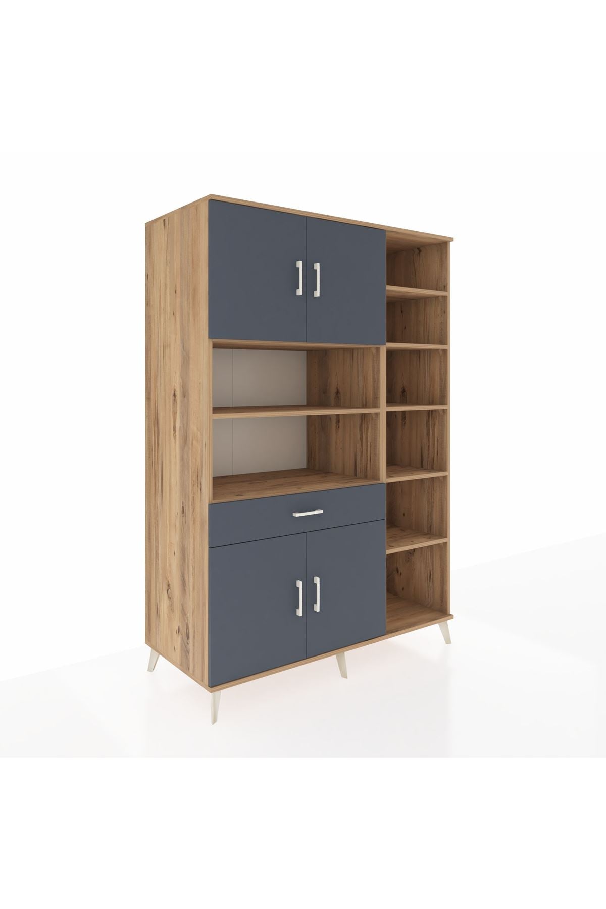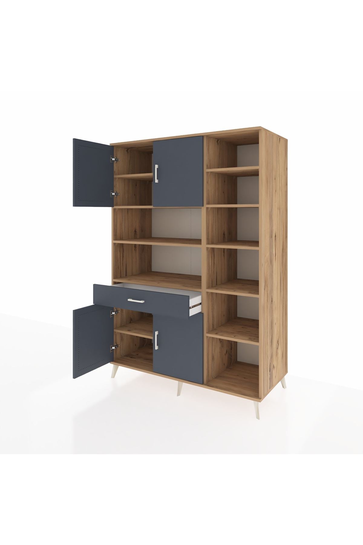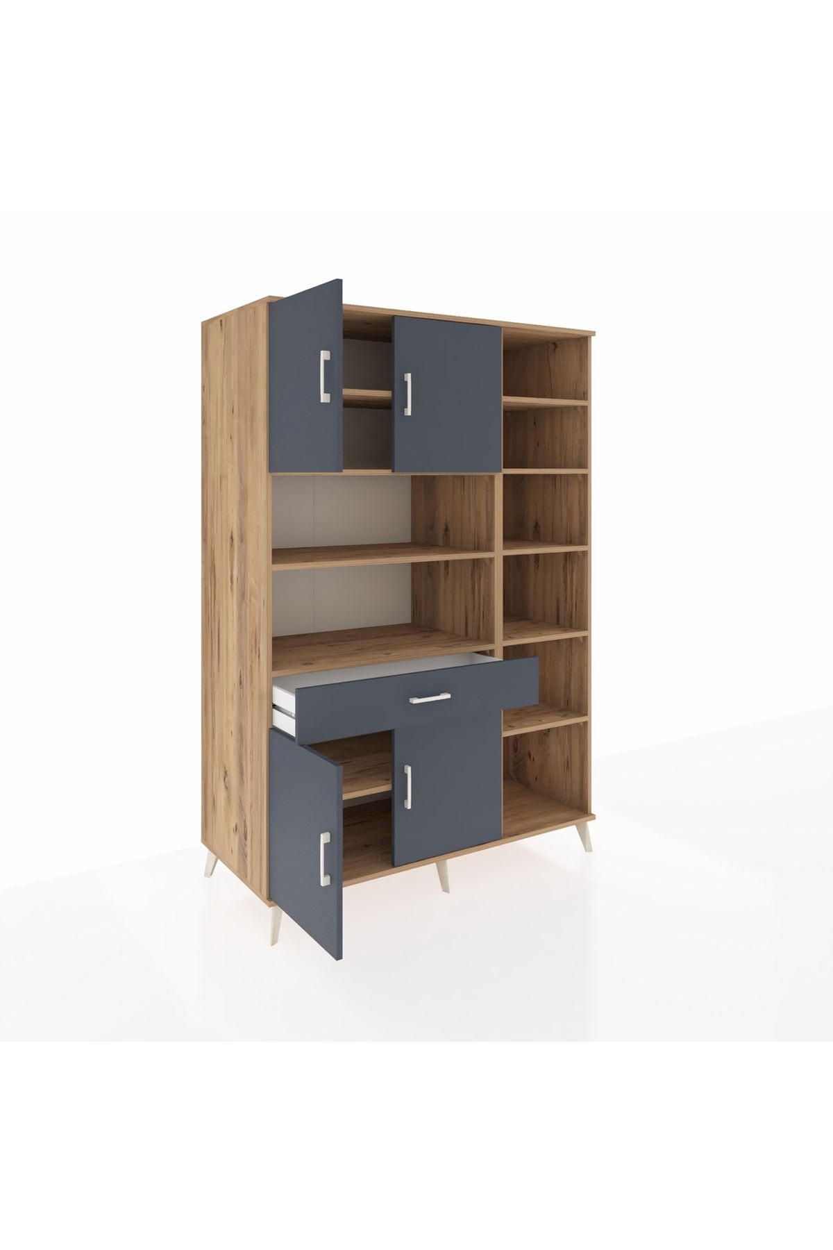 Kronos Gardrop 10 Raflı Tek Çekmeceli 4 Kapaklı 132x59x195 Çam-Antrasit