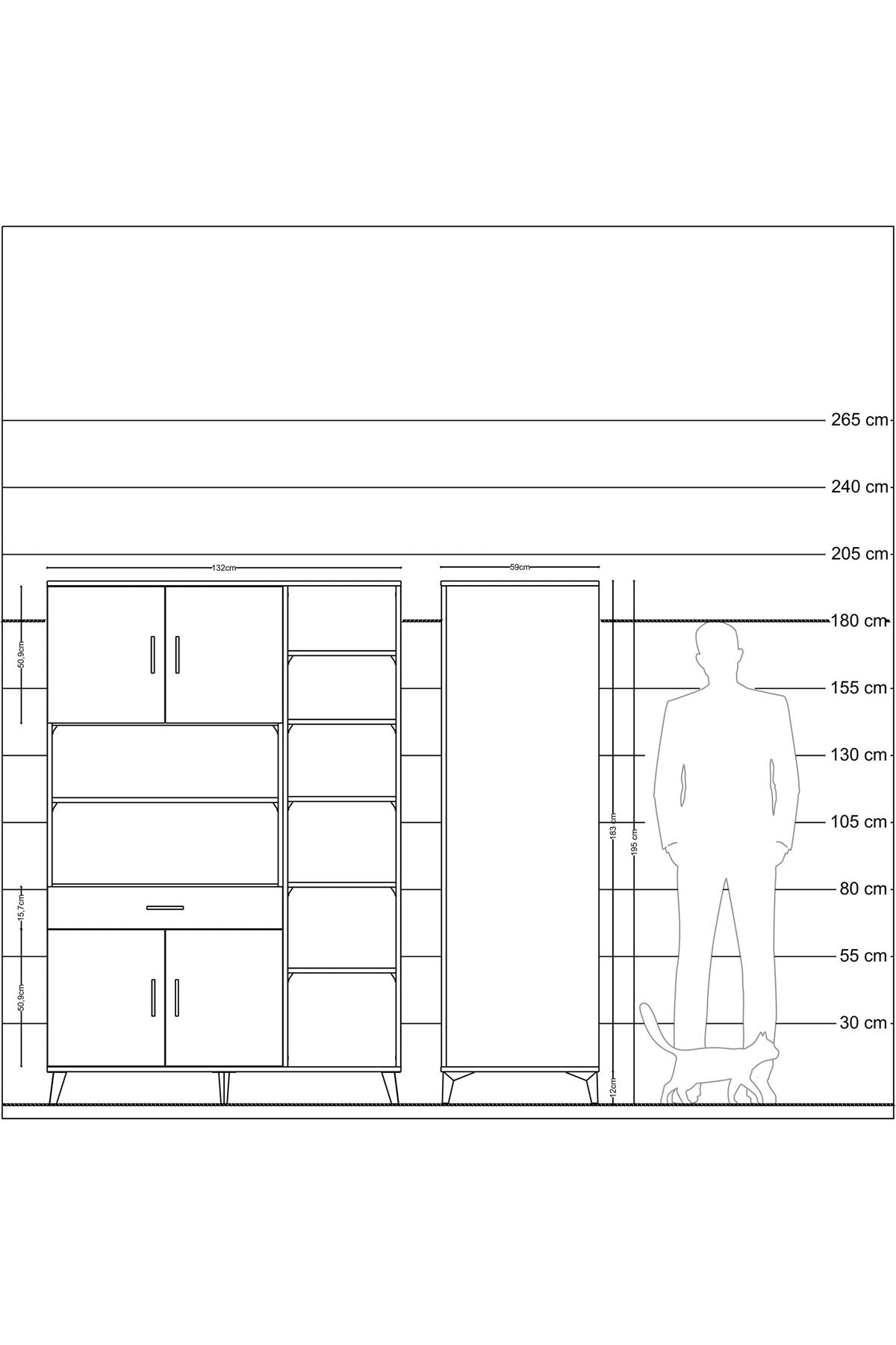 Genişlik: 132 CM – Derinlik: 59 CM – Yükseklik: 195 CM