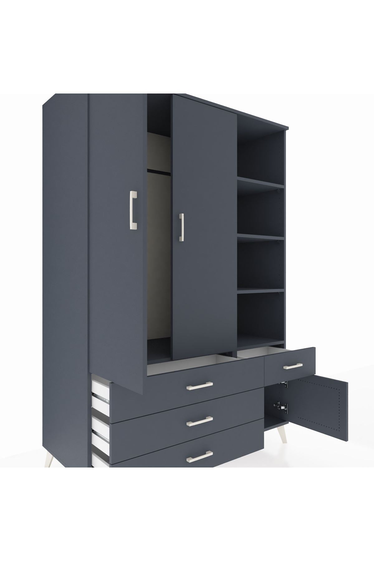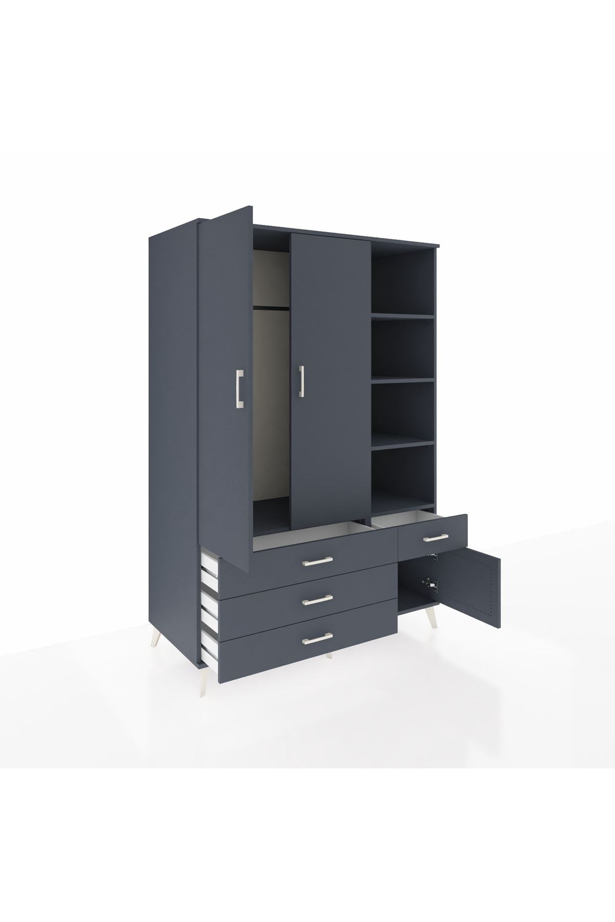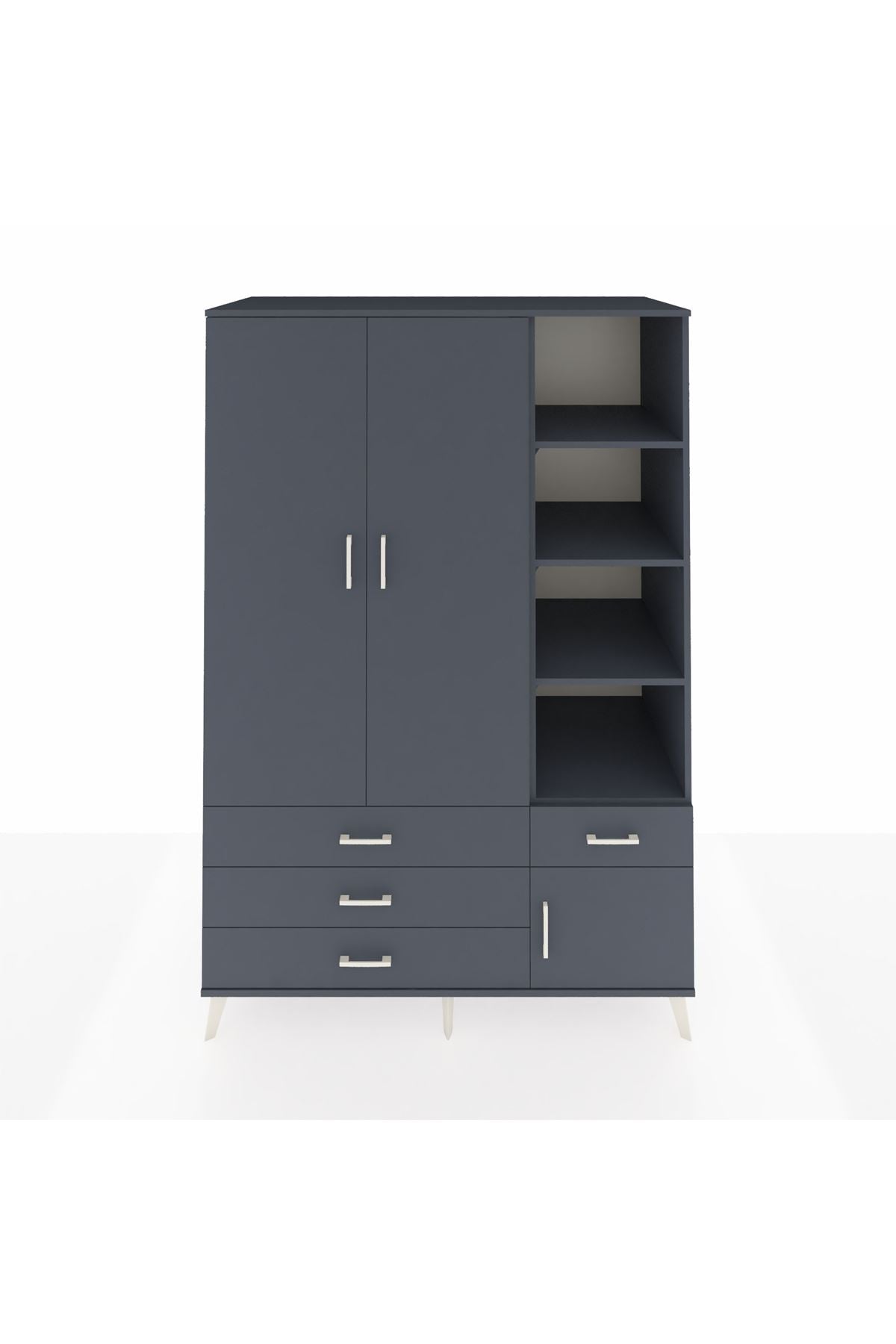 Kronos Gardrop 5 Raflı 4 Çekmeceli Tek Askılı 132x59x195 Antrasit-Antrasit
