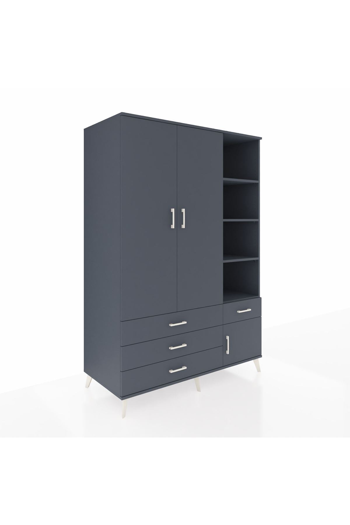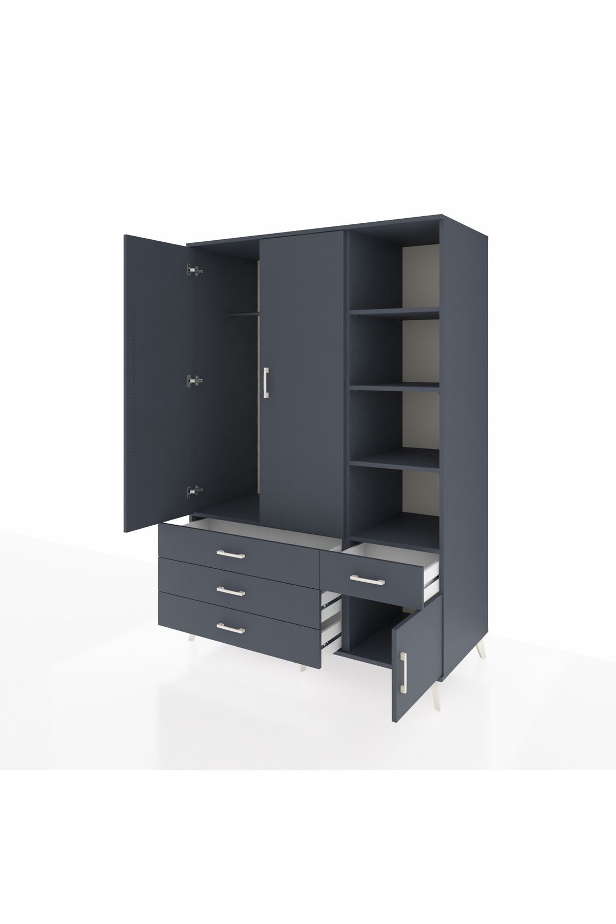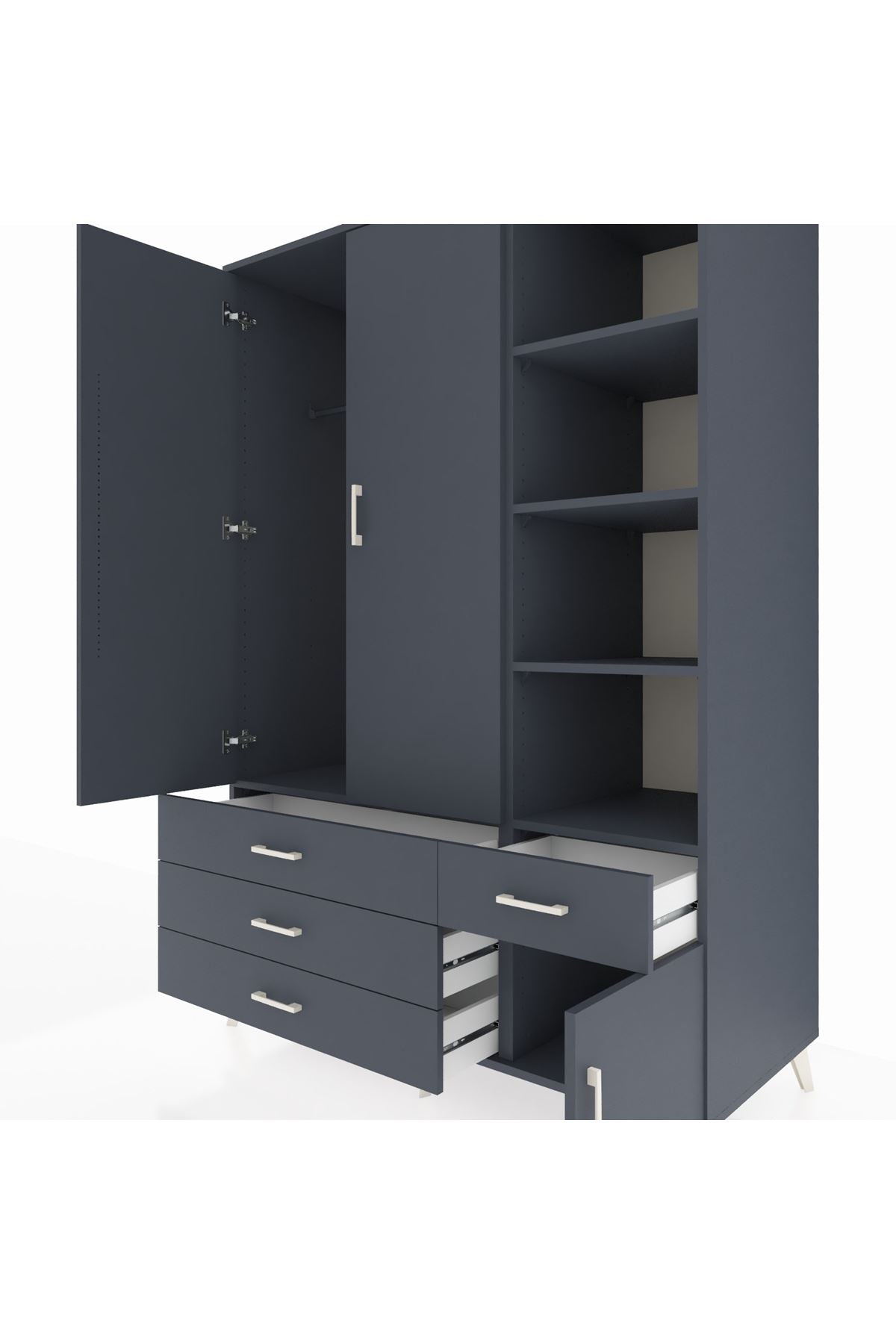 Kronos Gardrop 5 Raflı 4 Çekmeceli Tek Askılı 132x59x195 Antrasit-Antrasit