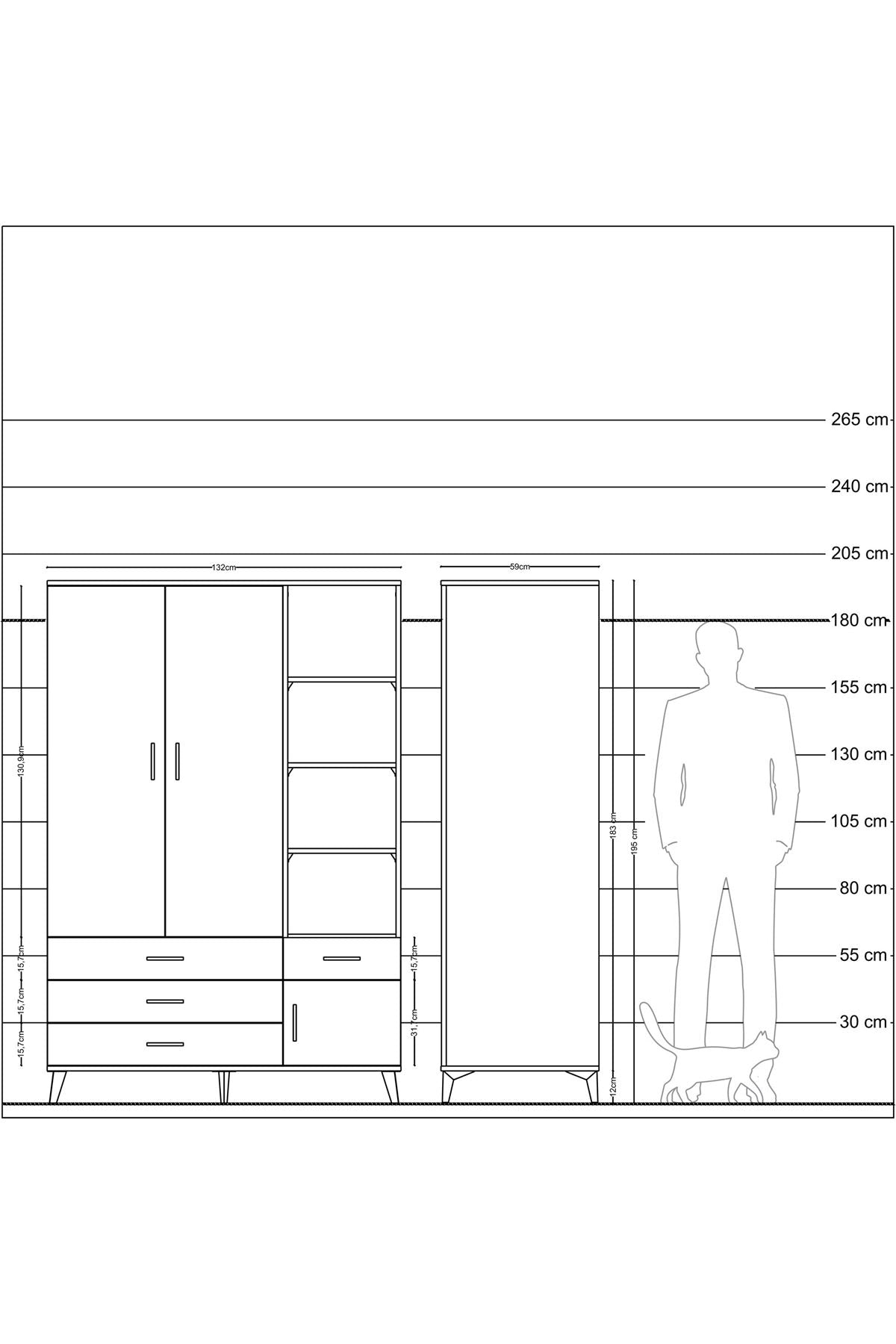 Genişlik: 132 CM – Derinlik: 59 CM – Yükseklik: 195 CM