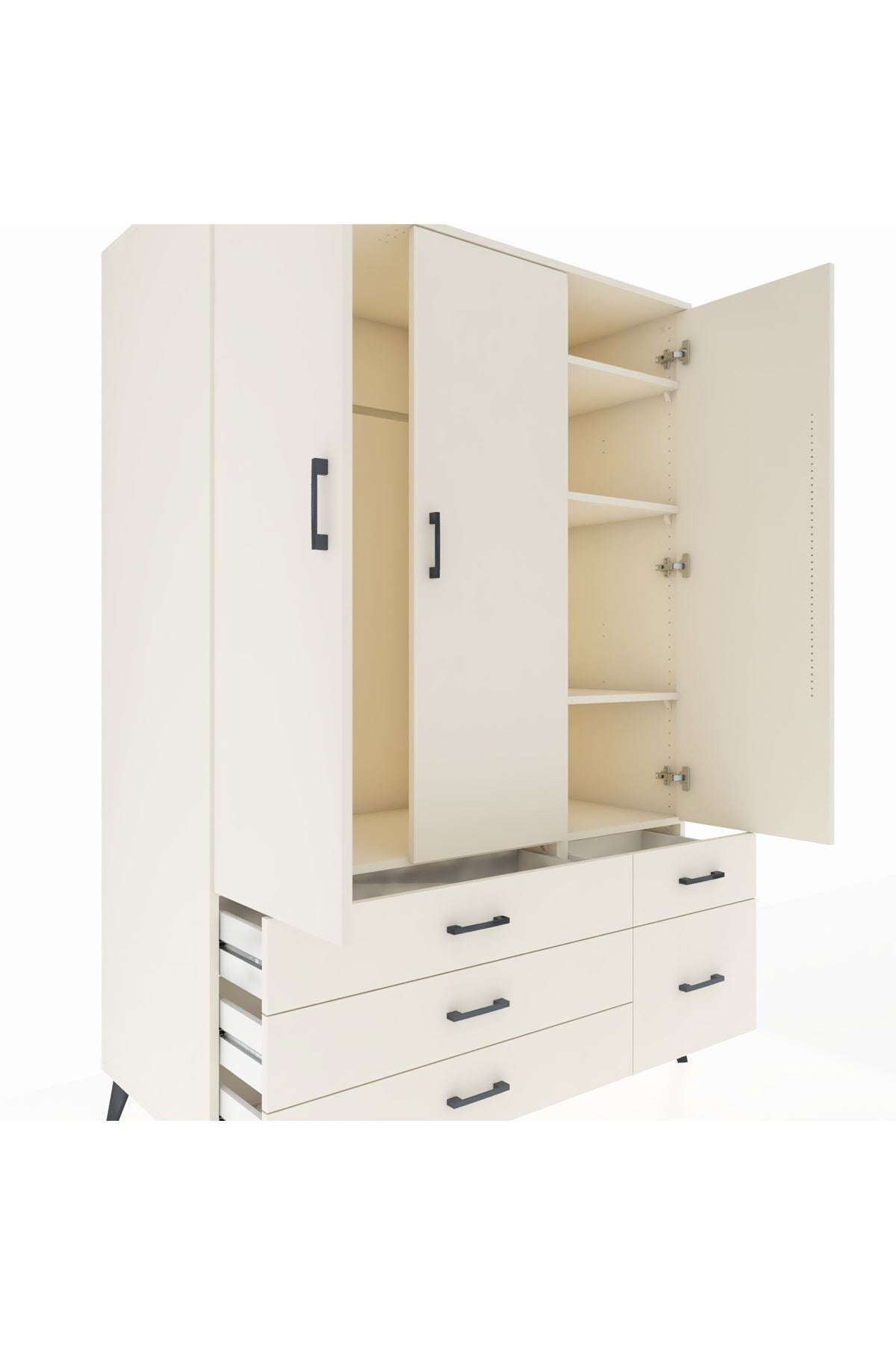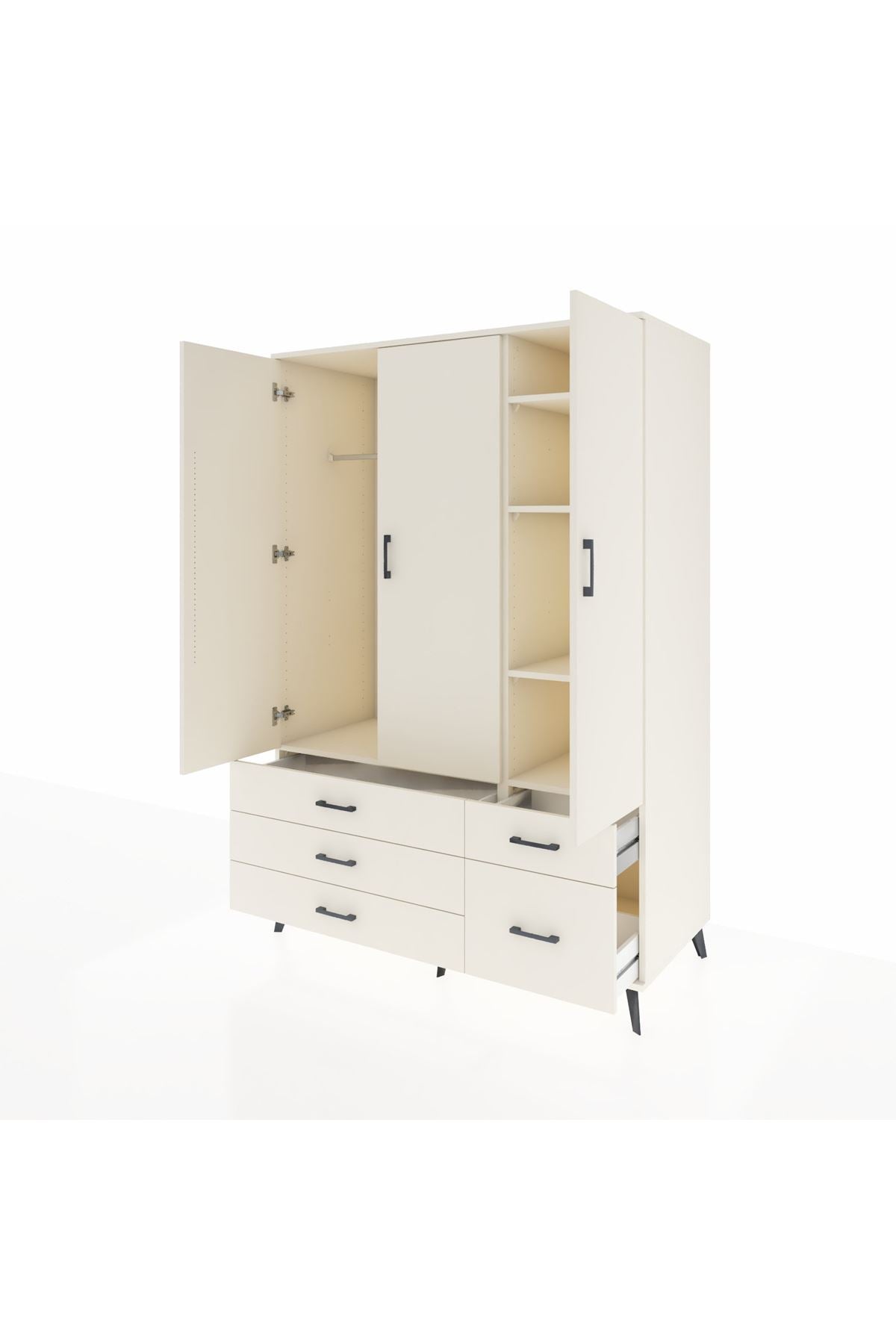 🦾 Sağlamlığı ön planda tutan tasarımımızda, metal ayaklar ve metal kulplar kullanılmıştır. Yüksek dayanıklılık sayesinde gardrobunuz yıllarca ilk günkü gibi kalacak. Ayrıca robot süpürge kullanımına uygun ayak yüksekliğine sahiptir.