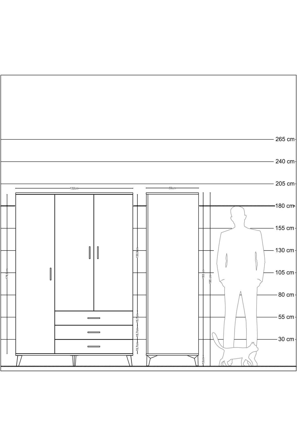 Genişlik: 132 CM – Derinlik: 59 CM – Yükseklik: 195 CM