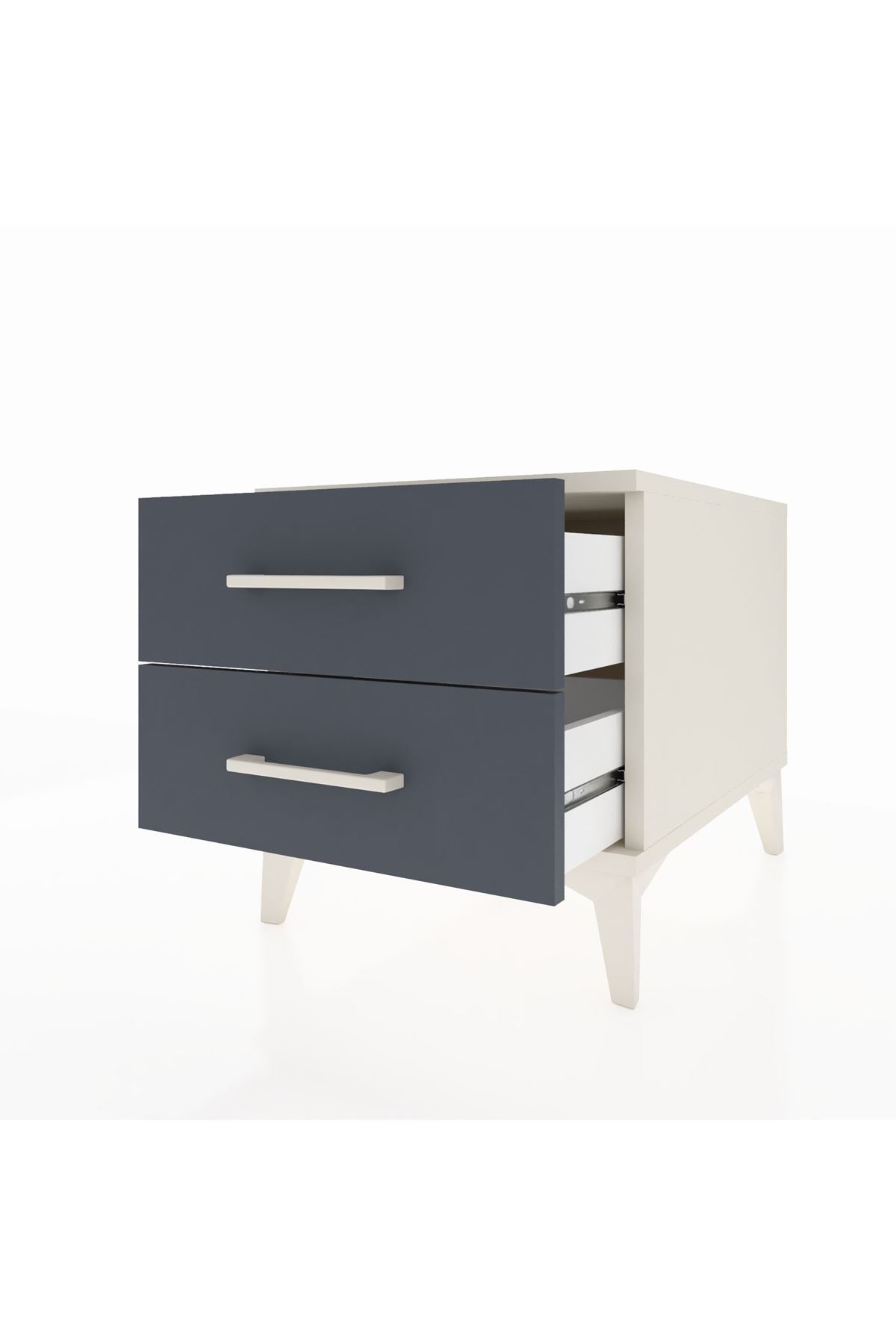 ✨ Yatak odanıza şıklık ve fonksiyonellik katacak Kronos Komodin, aytaşı ve antrasit renklerinin modern uyumuyla evinize yeni bir soluk getiriyor! İki çekmecesiyle eşyalarınızı düzenli tutarken, zarif tasarımıyla da göz kamaştıracak.