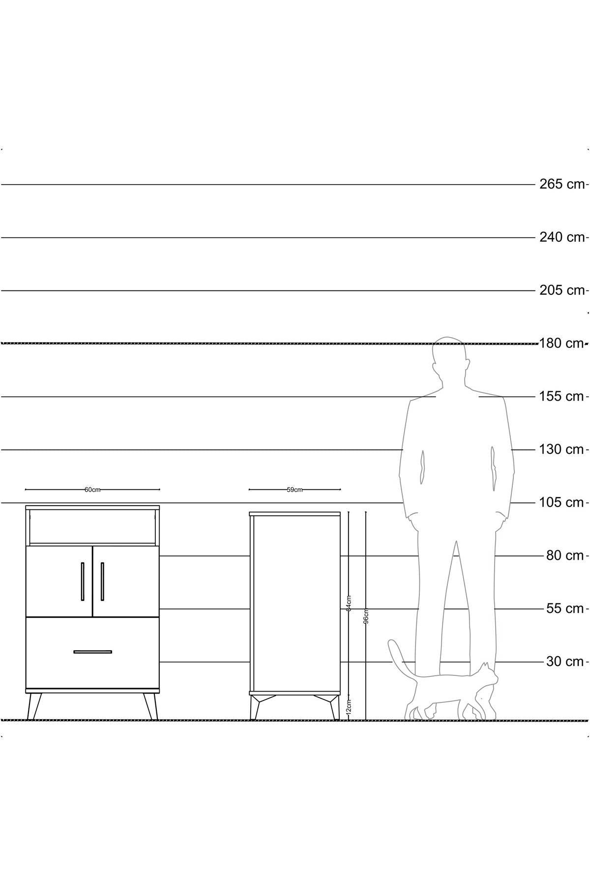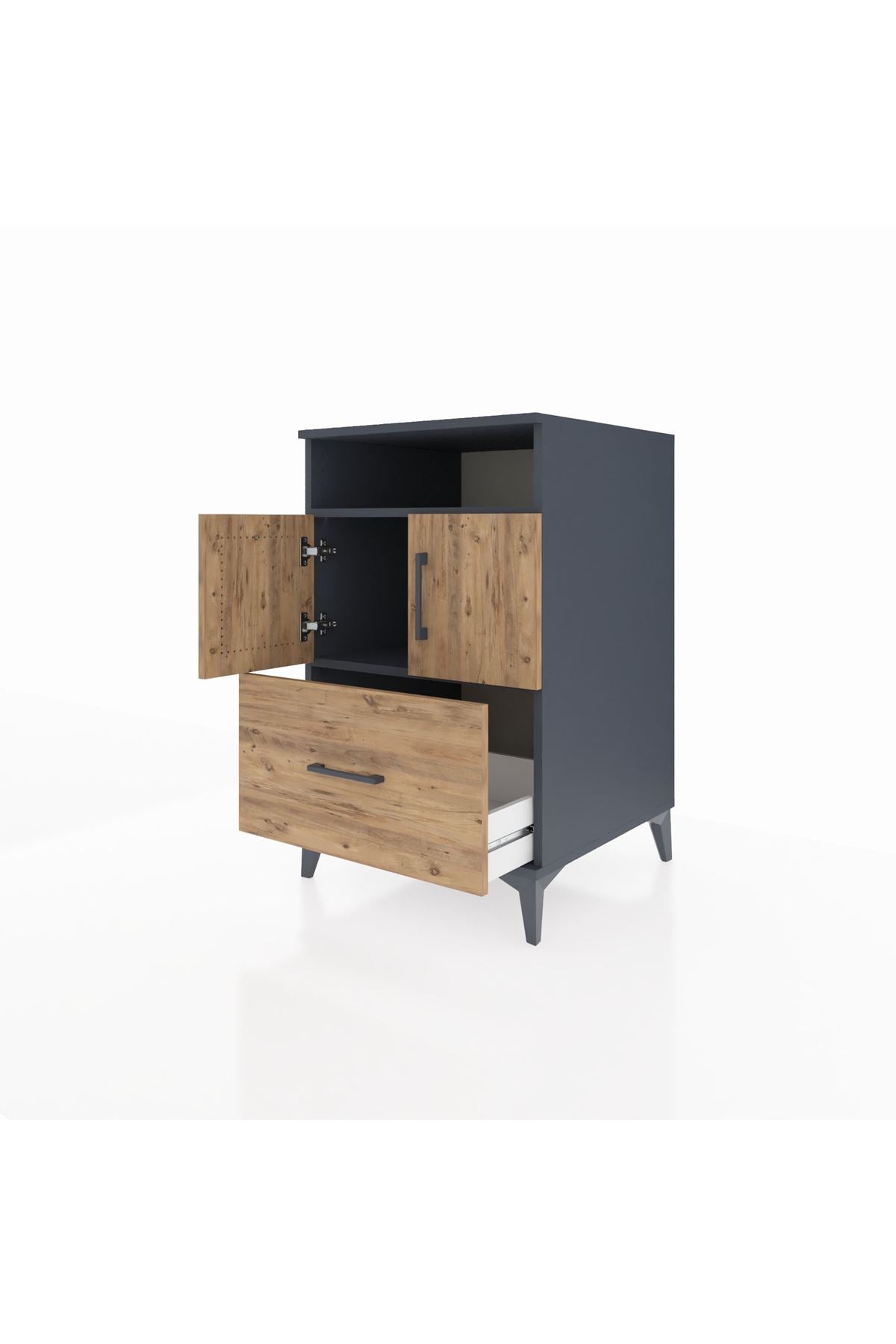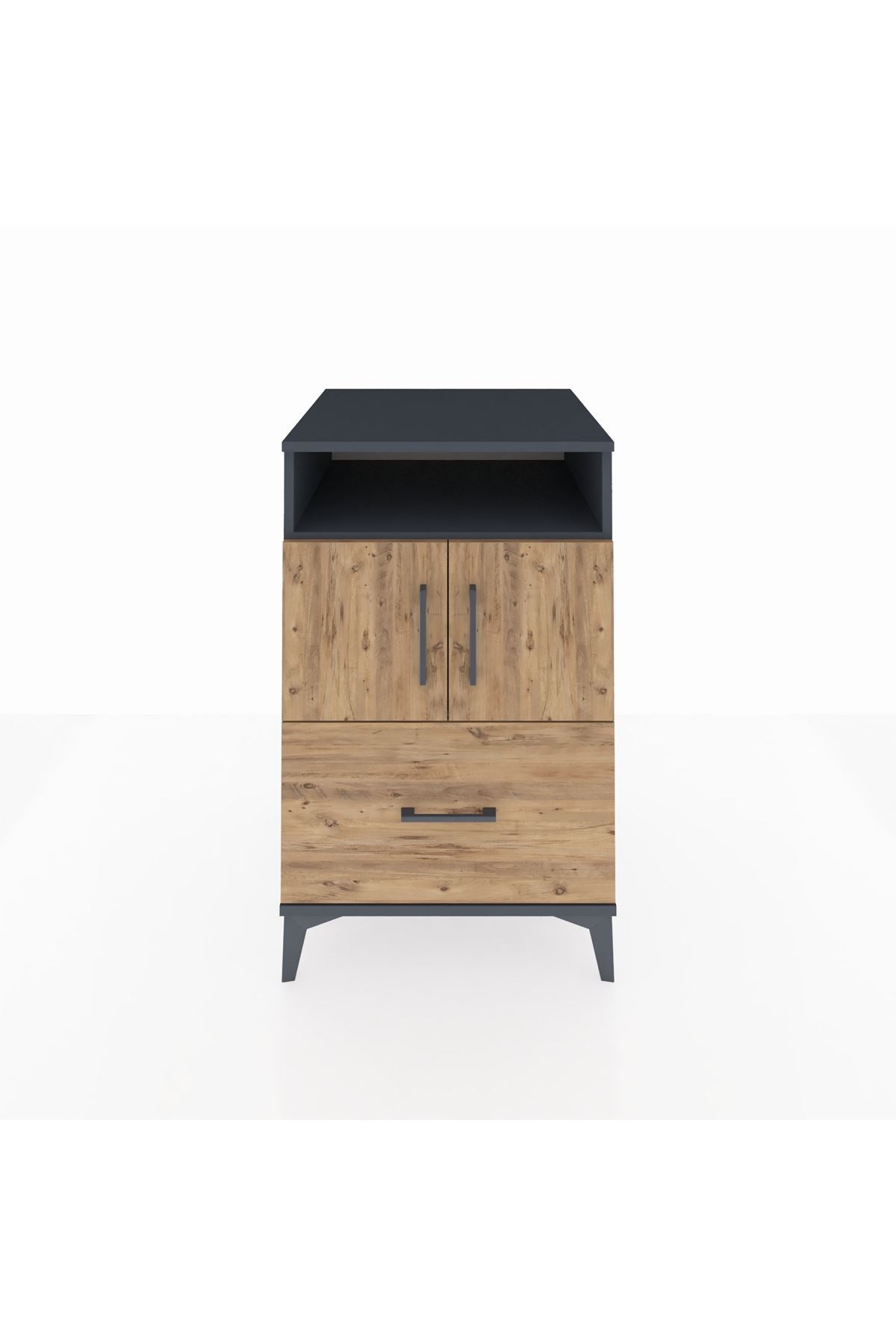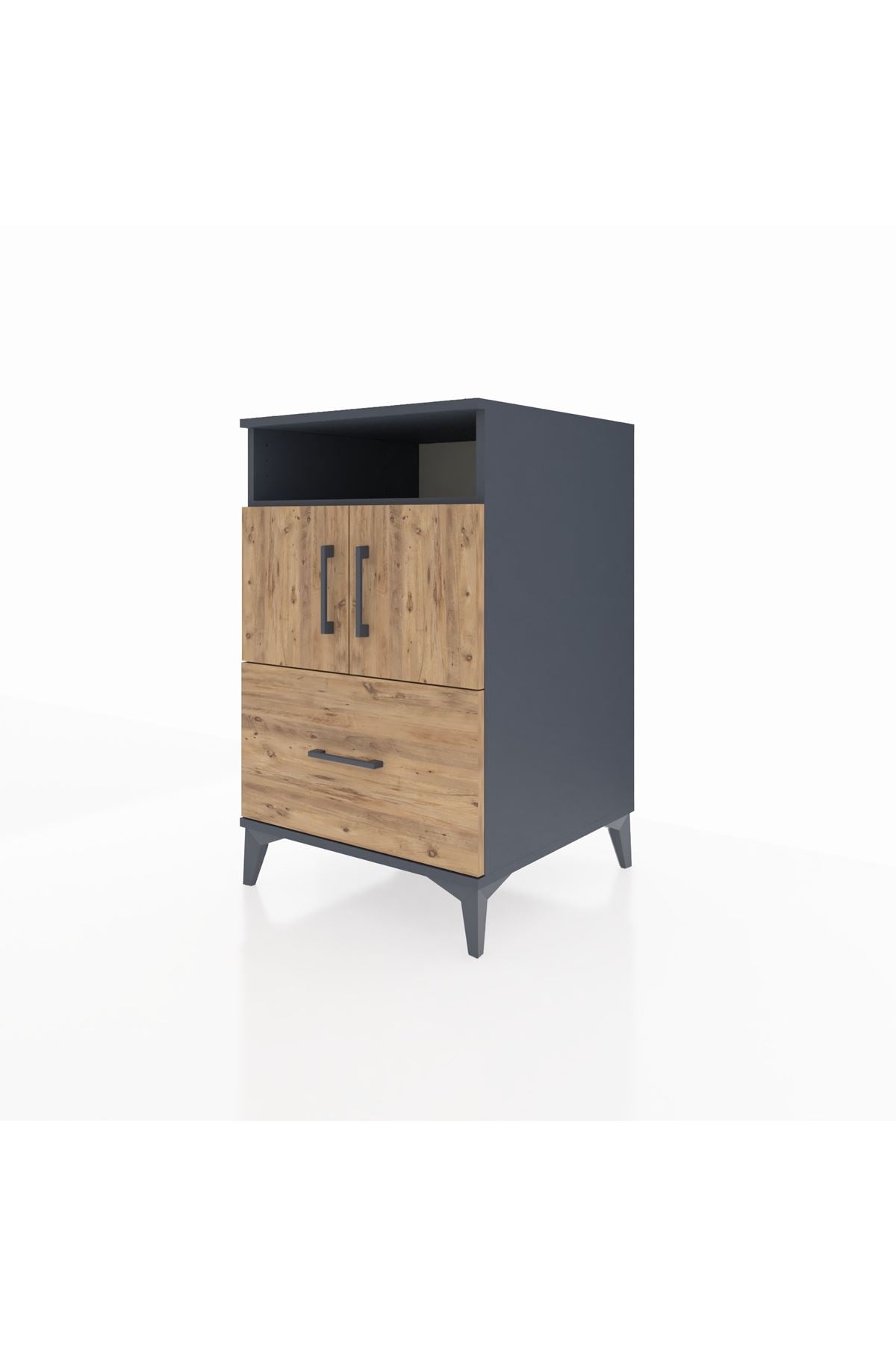 Kronos Komodin 2 Raflı Tek Çekmeceli 2 Kapaklı 60x59x96 Antrasit-Çam