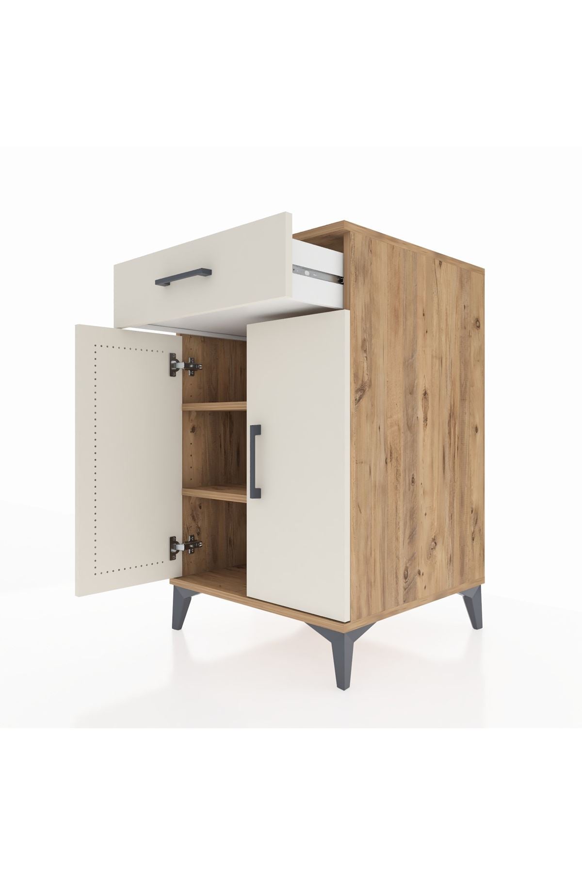 Kronos Komodin 2 Raflı Tek Çekmeceli 2 Kapaklı 60x59x96 Çam-Aytaşı