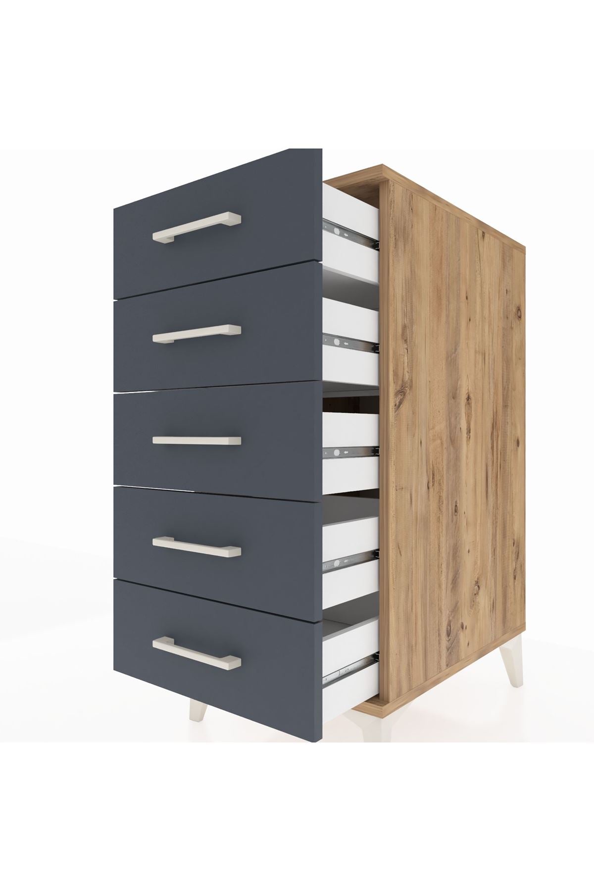 Kronos Komodin 5 Çekmeceli 44x59x96 Çam-Antrasit