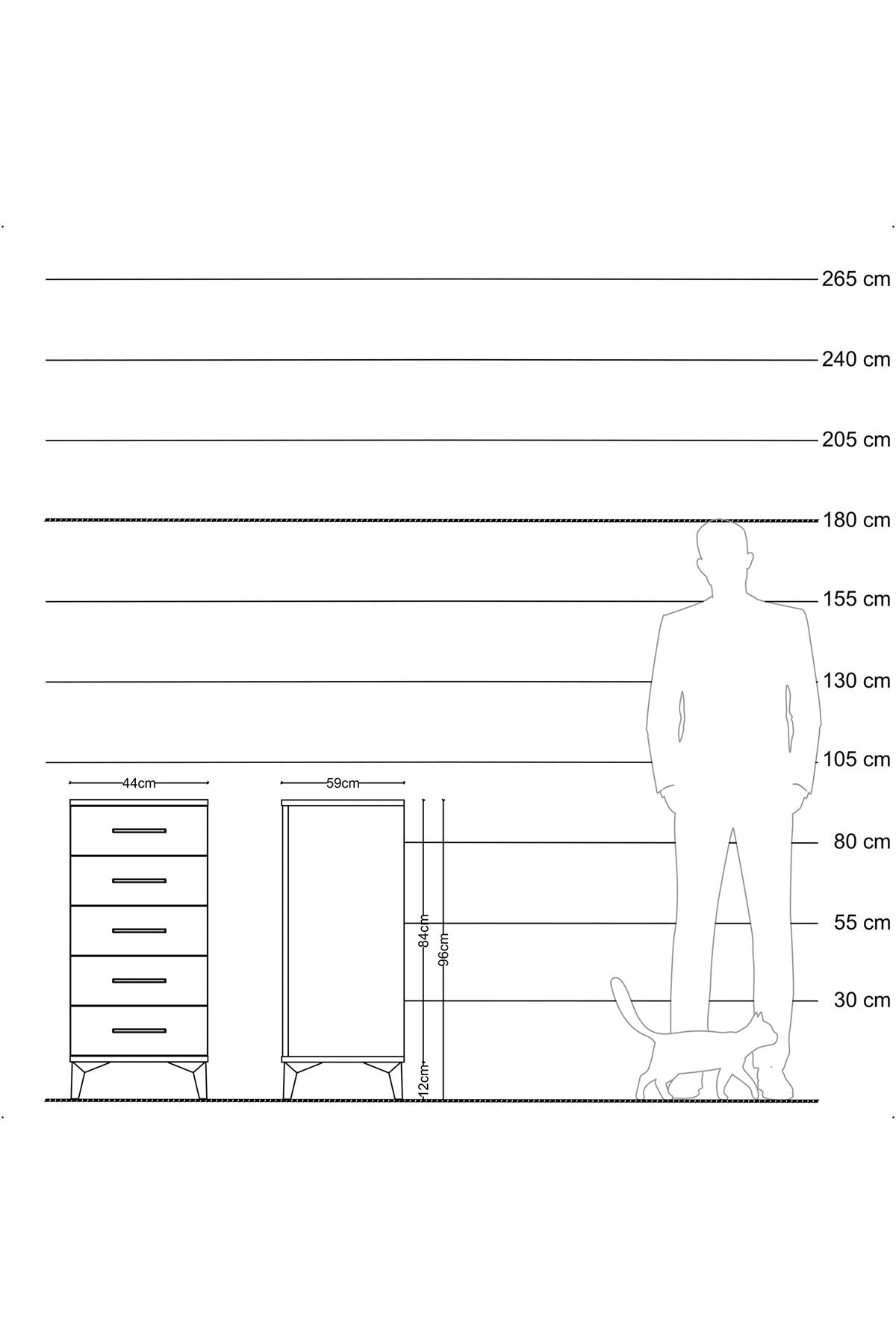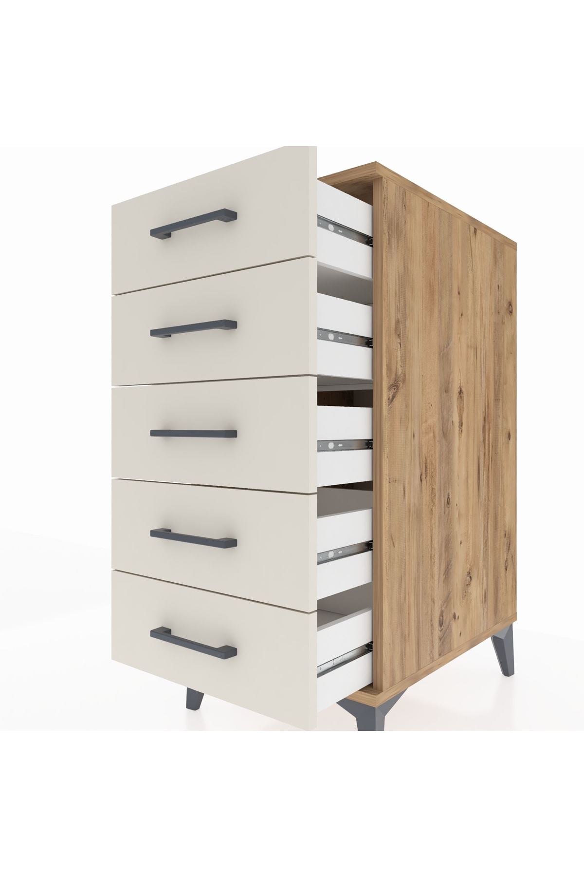 🗄️ Beş adet geniş çekmecesi sayesinde eşyalarınızı düzenli bir şekilde saklayabilirsiniz. Çekmece açılma mesafesi 16,5 cm'dir.