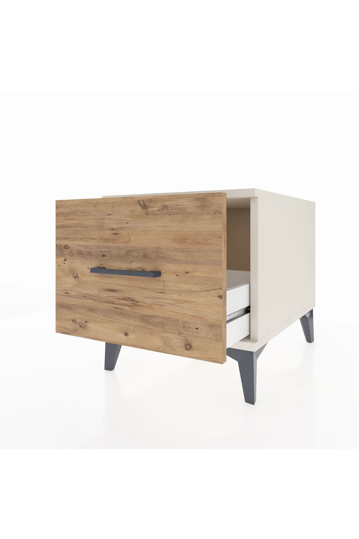 🦾 Metal ayakları sayesinde yerden yüksekte duran bu komodin, robot süpürge kullanımına da uygundur! Ayrıca metal kulpları, komodine modern bir hava katarken, sağlam yapısıyla uzun yıllar boyunca size eşlik edecek.