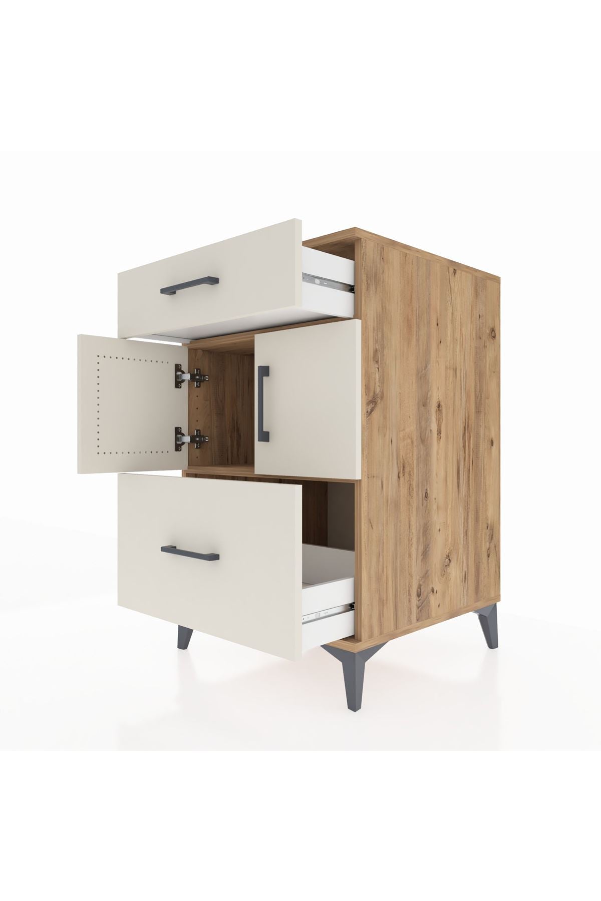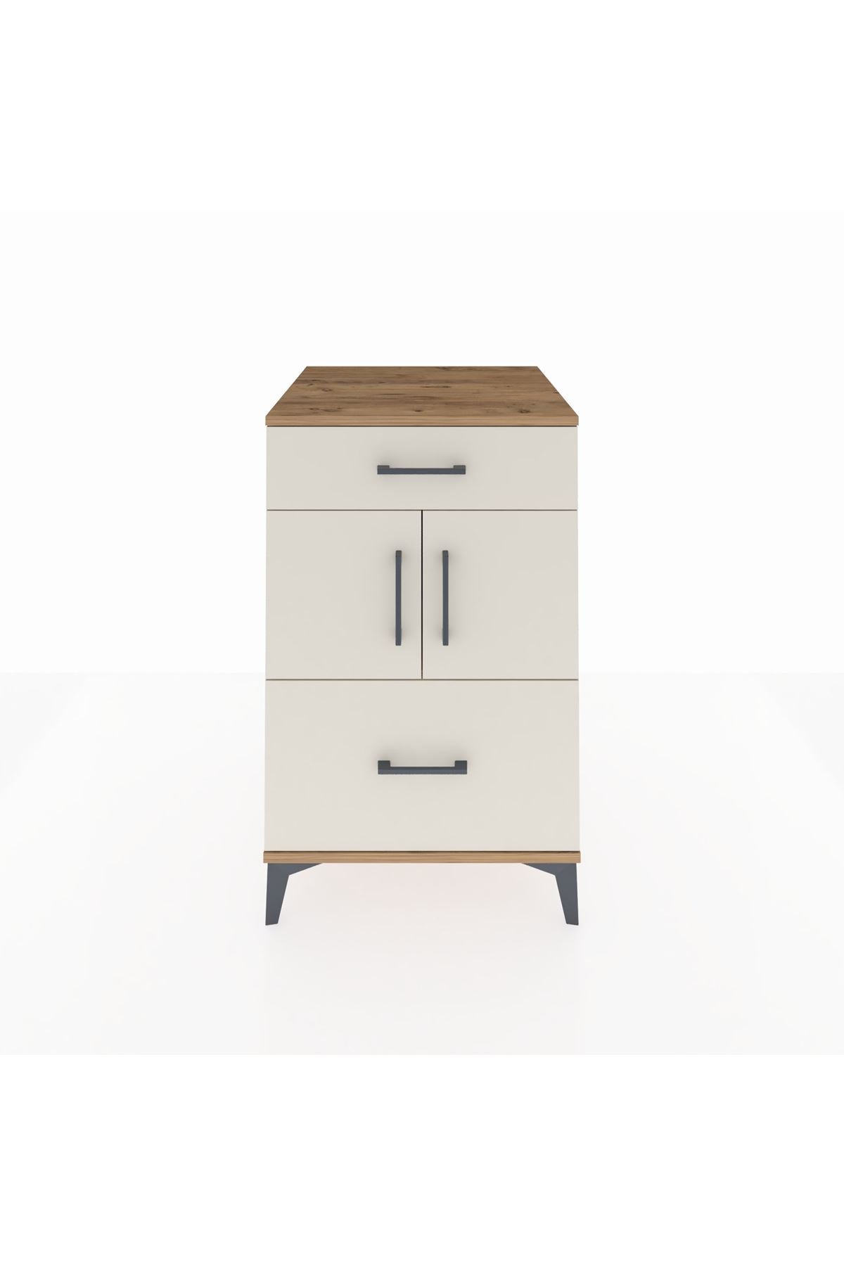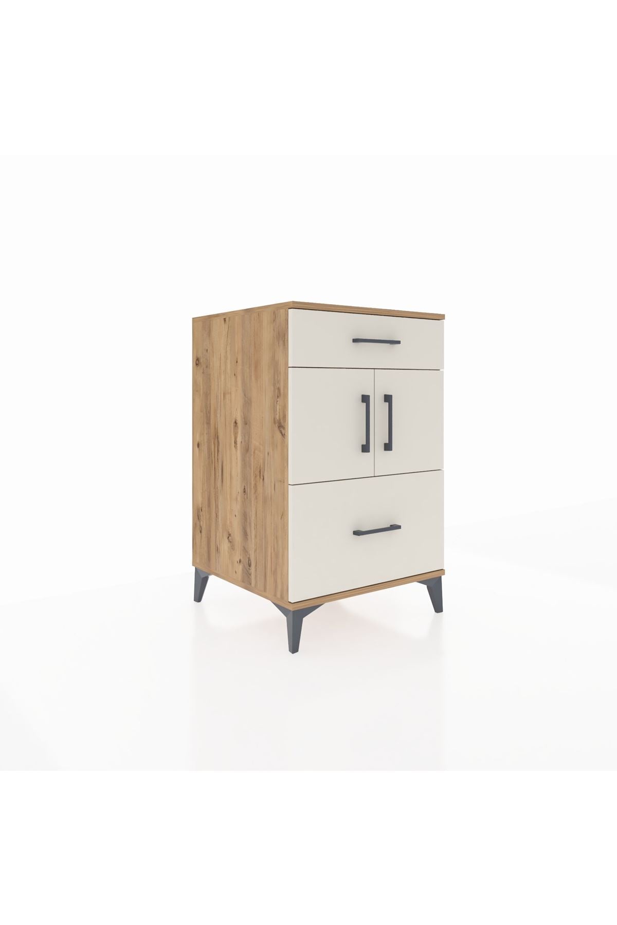 Kronos Komodin Tek Raflı 2 Çekmeceli 2 Kapaklı 60x59x96 Çam-Aytaşı