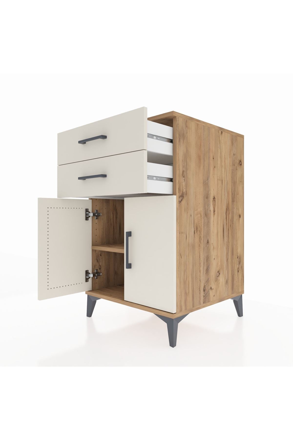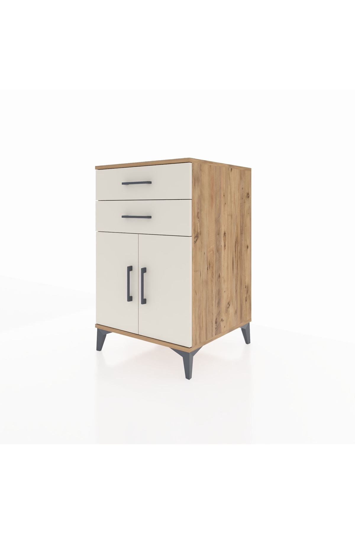 Kronos Komodin Tek Raflı 2 Çekmeceli 2 Kapaklı 60x59x96 Çam-Aytaşı
