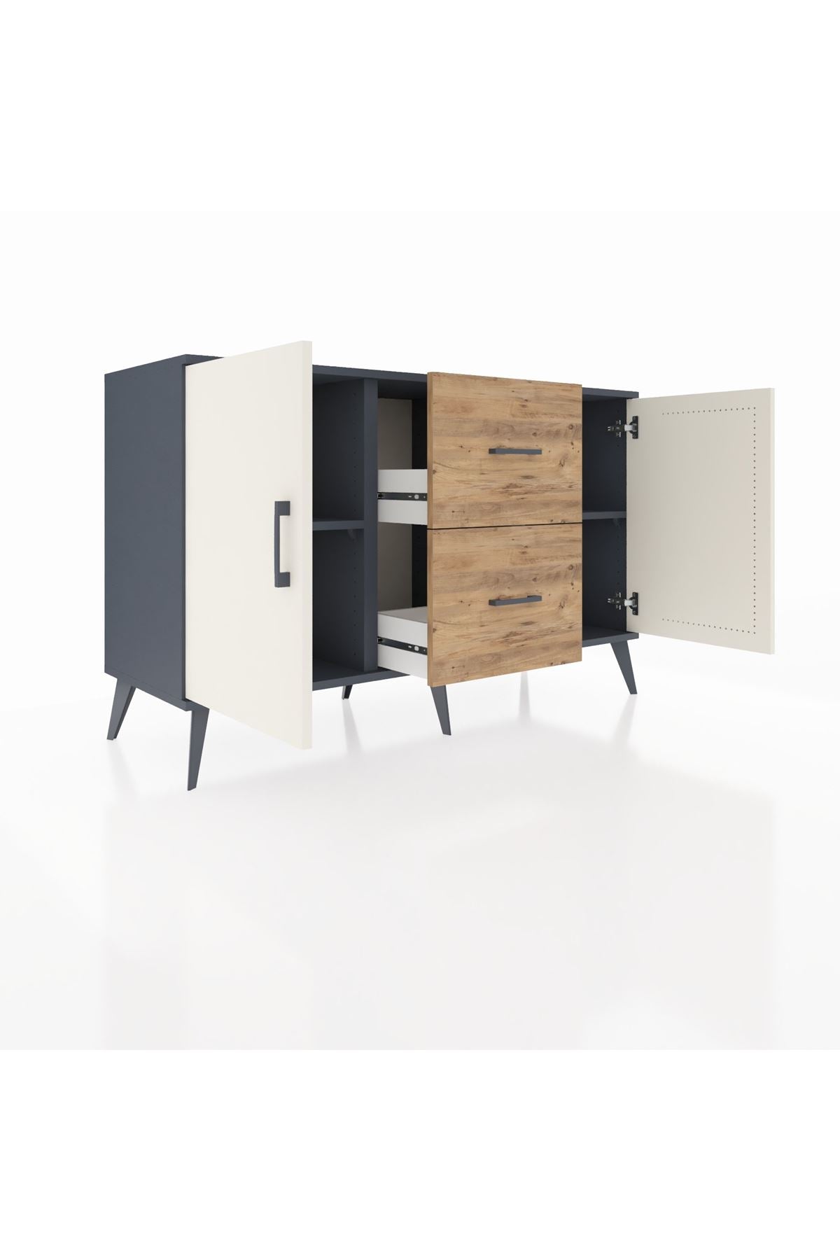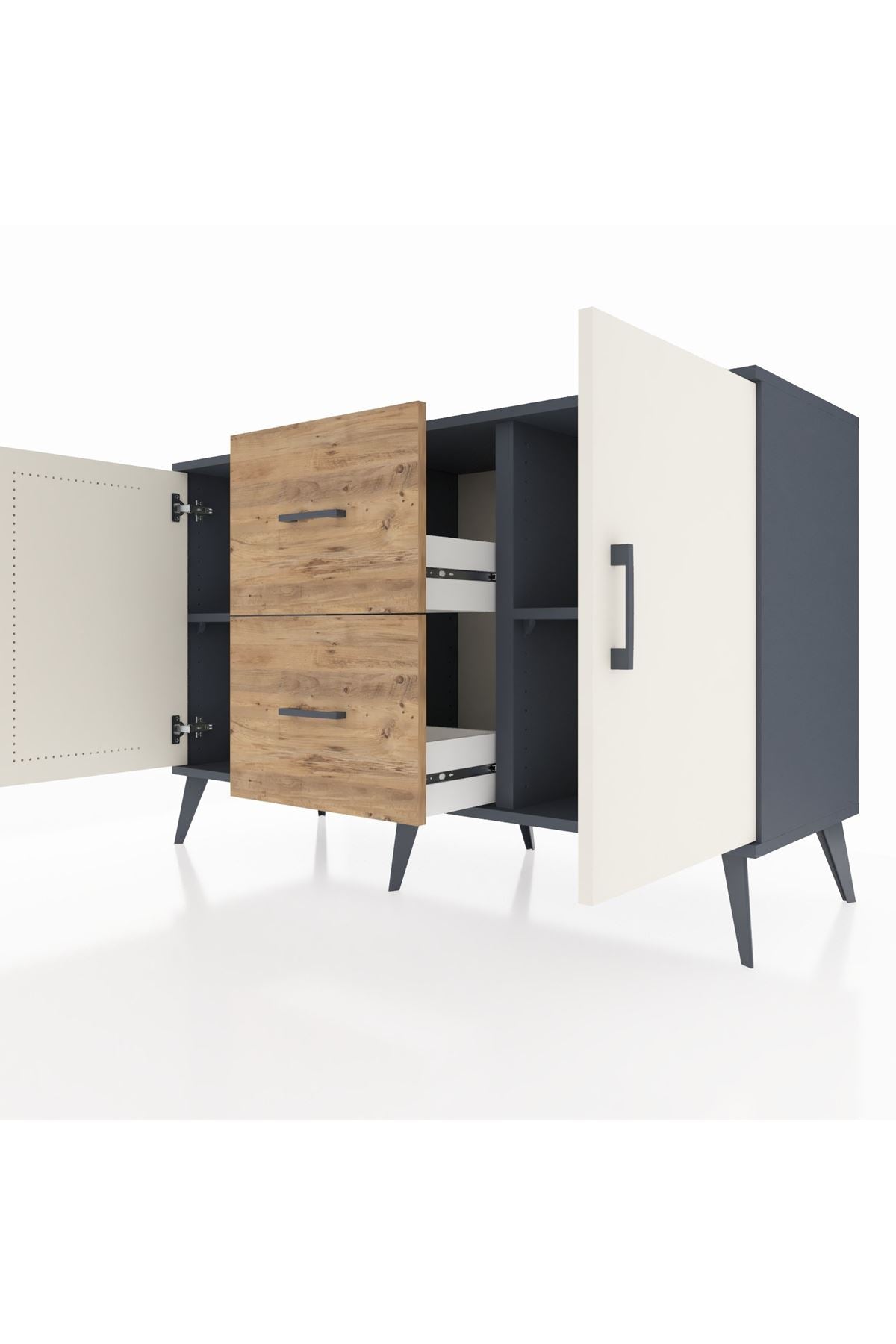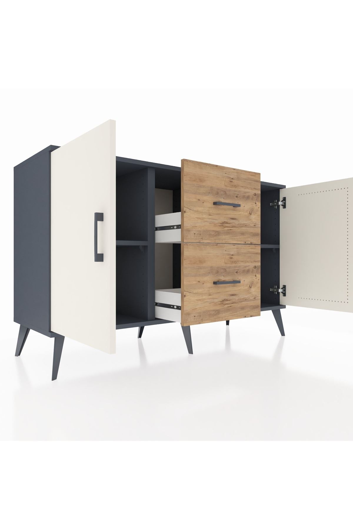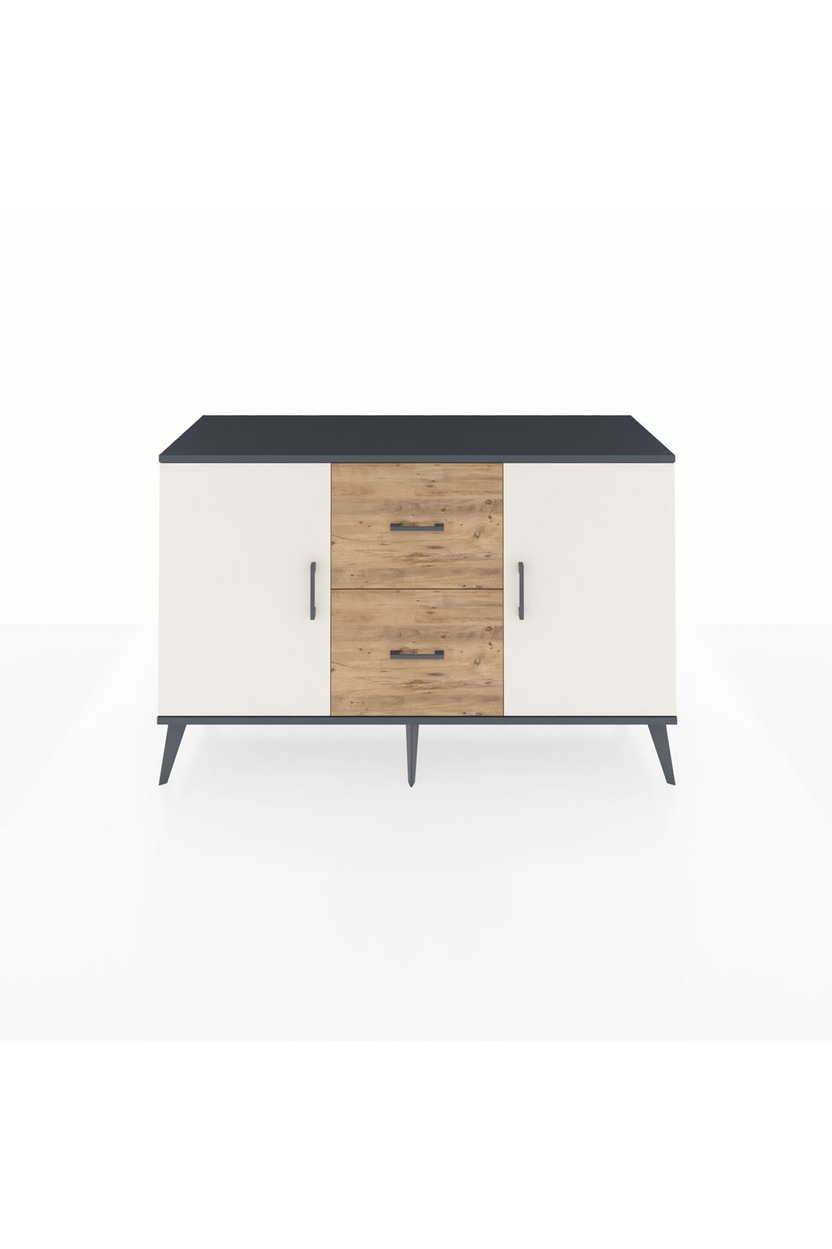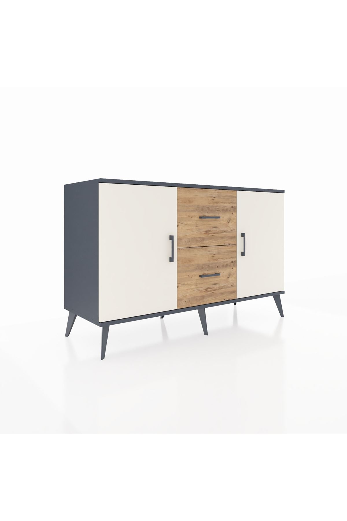 Kronos Konsol 2 Raflı 2 Çekmeceli 2 Kapaklı 132x59x83 Antrasit-Aytaşı/Çam