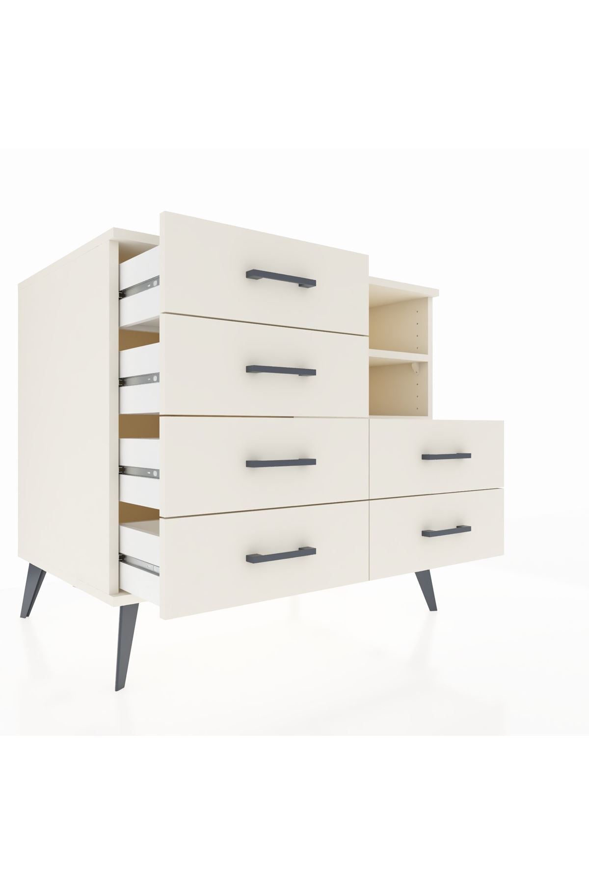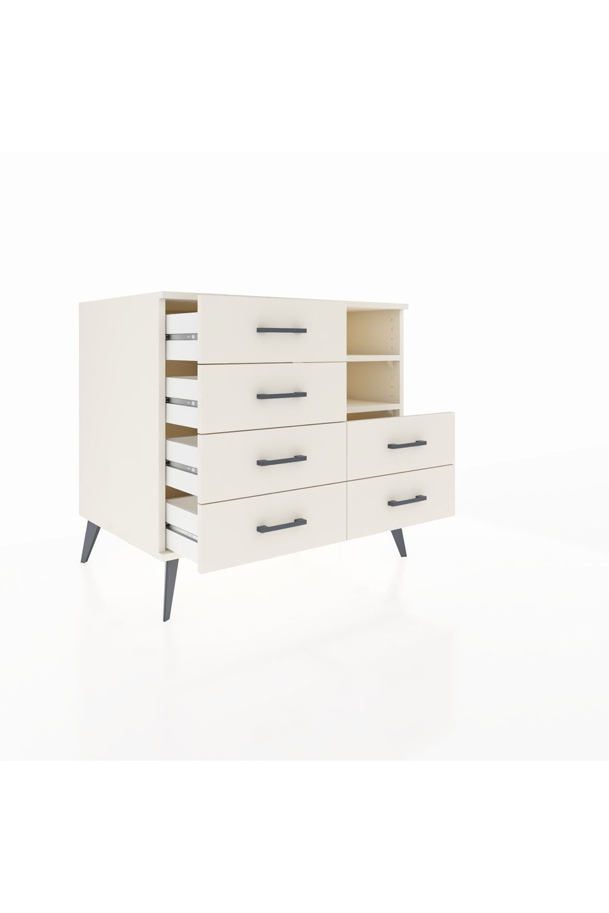 🗄️ 6 adet geniş çekmecesi sayesinde eşyalarınızı düzenli bir şekilde saklayabilirsiniz. Çekmece açılma mesafesi 23 cm olup, eşyalarınıza kolayca ulaşmanızı sağlar. 🗝️