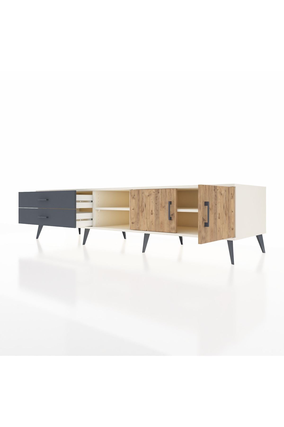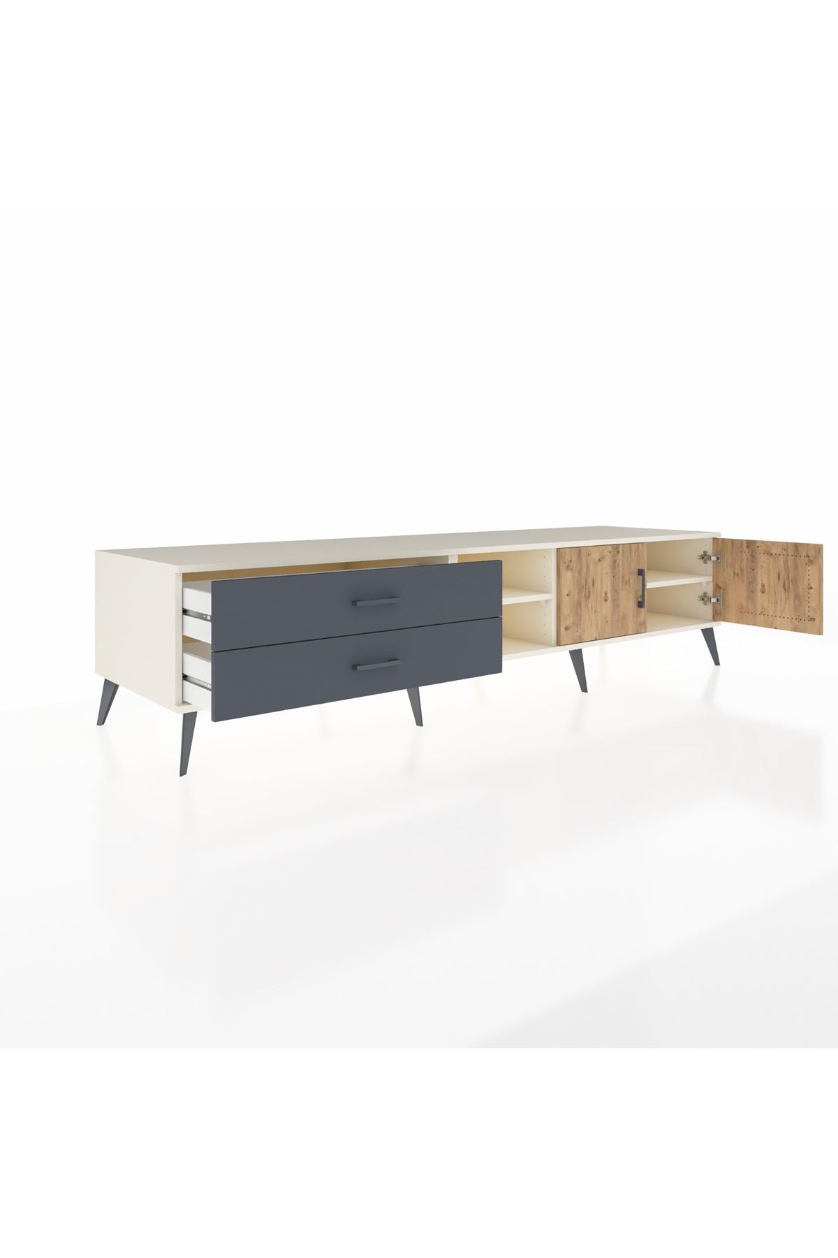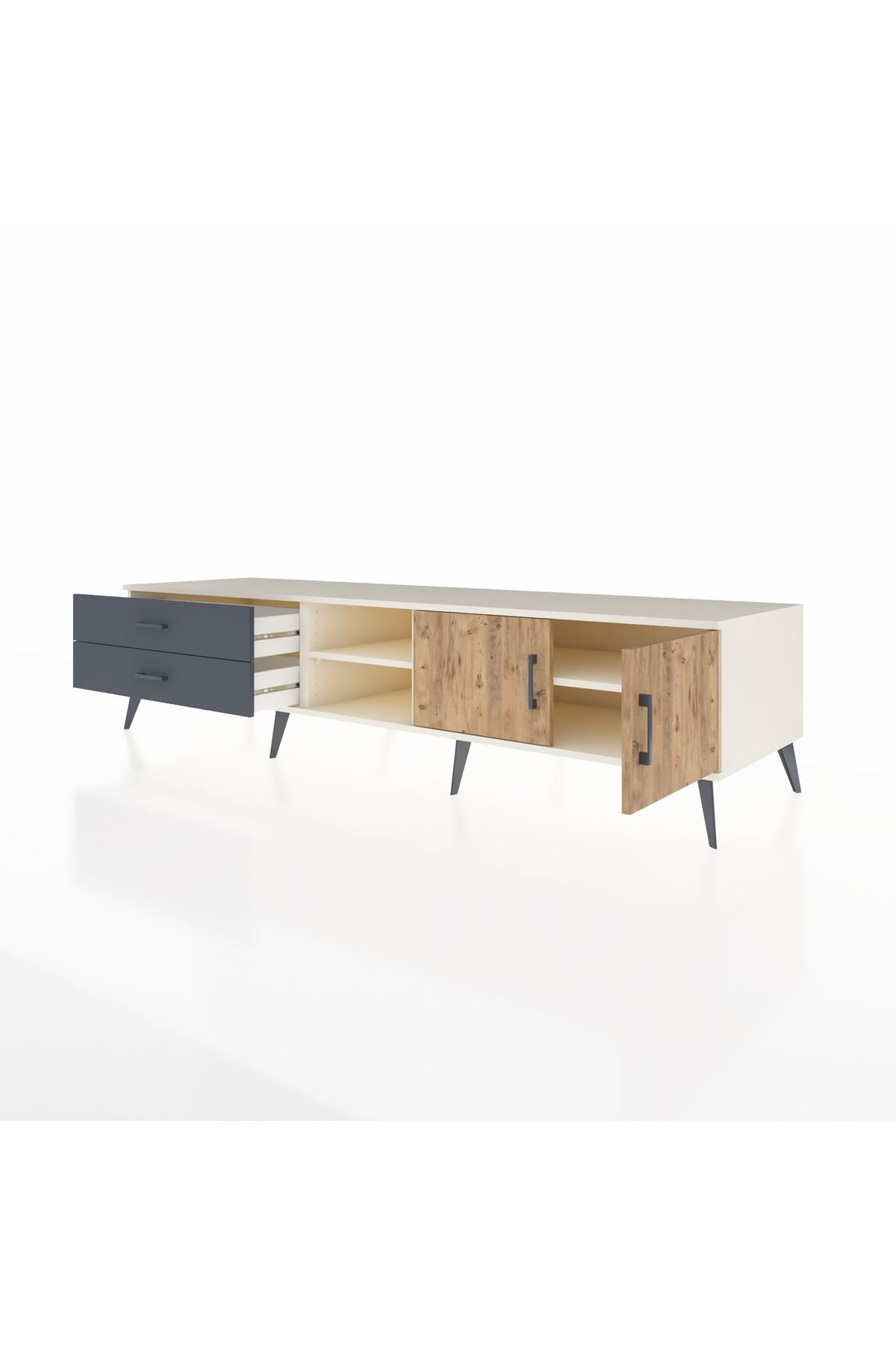 ✨ Evine şıklık ve düzen katacak, modern tasarımıyla göz kamaştıran Kronos TV Ünitesi ile tanış! Aytaşı gövdesi, Atlas Çam ve Antrasit kapaklarıyla evinize sıcak ve sofistike bir hava katacak. 🌟