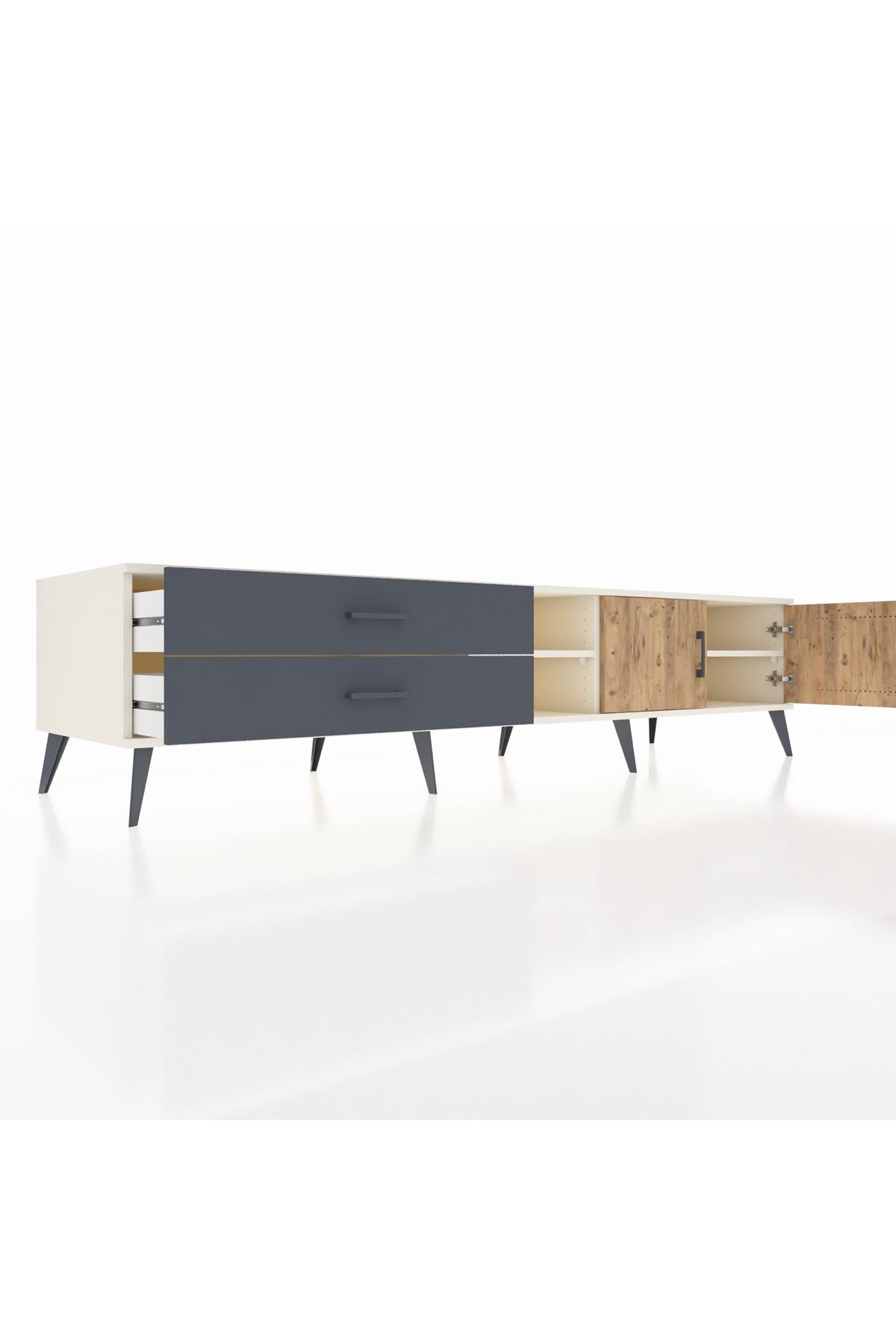 Kronos TV Ünitesi 2 Raflı 2 Çekmeceli 2 Kapaklı 220x59x51 Aytaşı-Çam/Antrasit