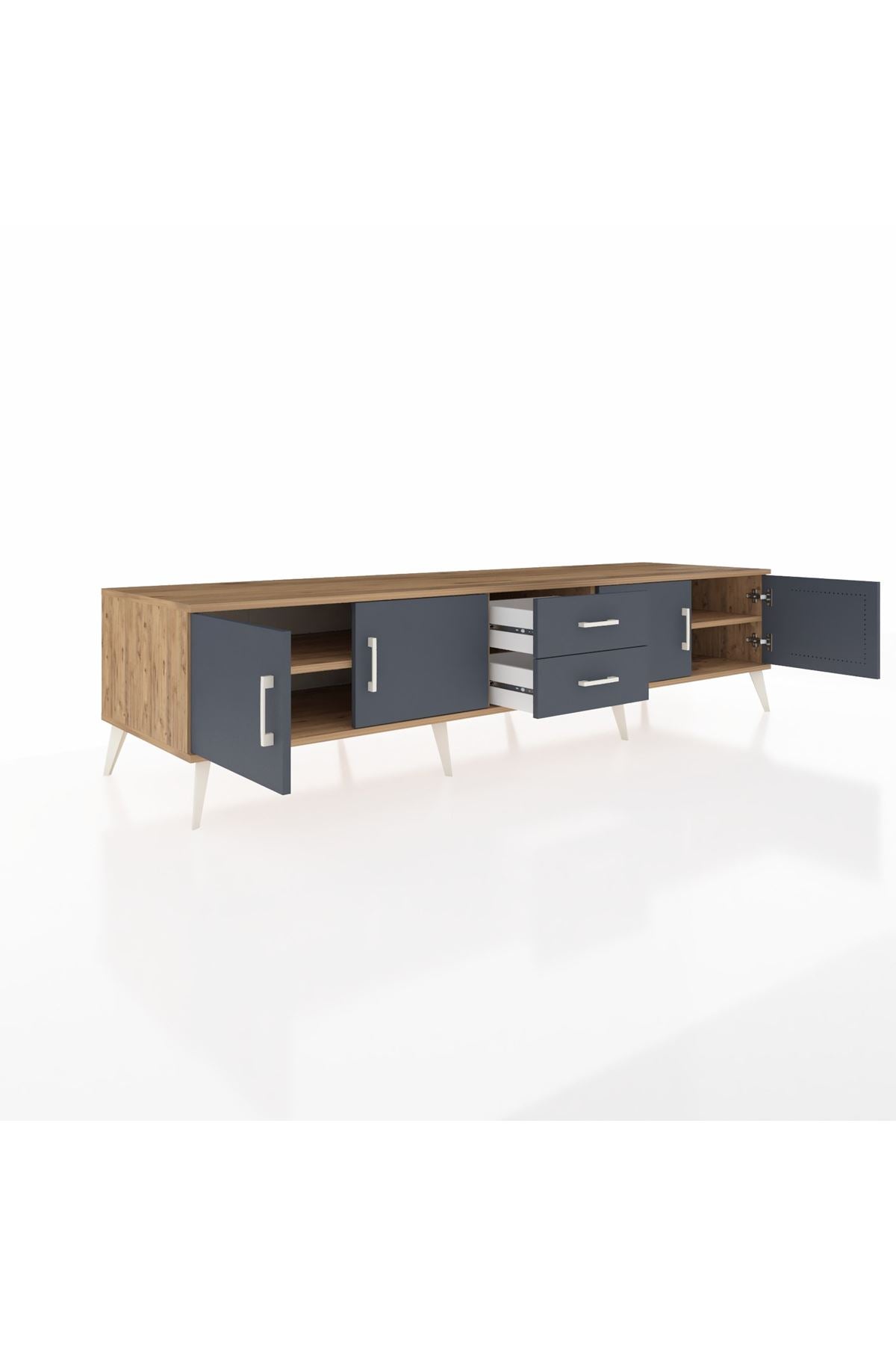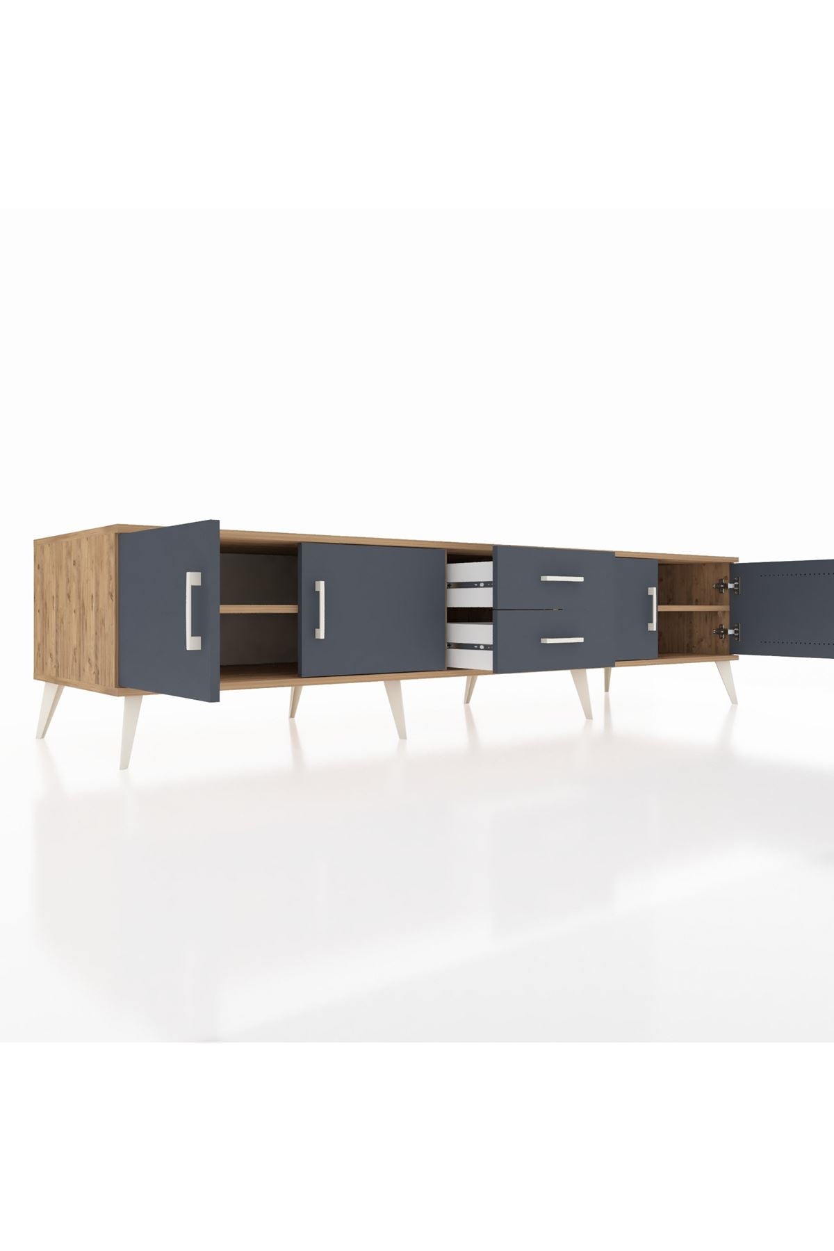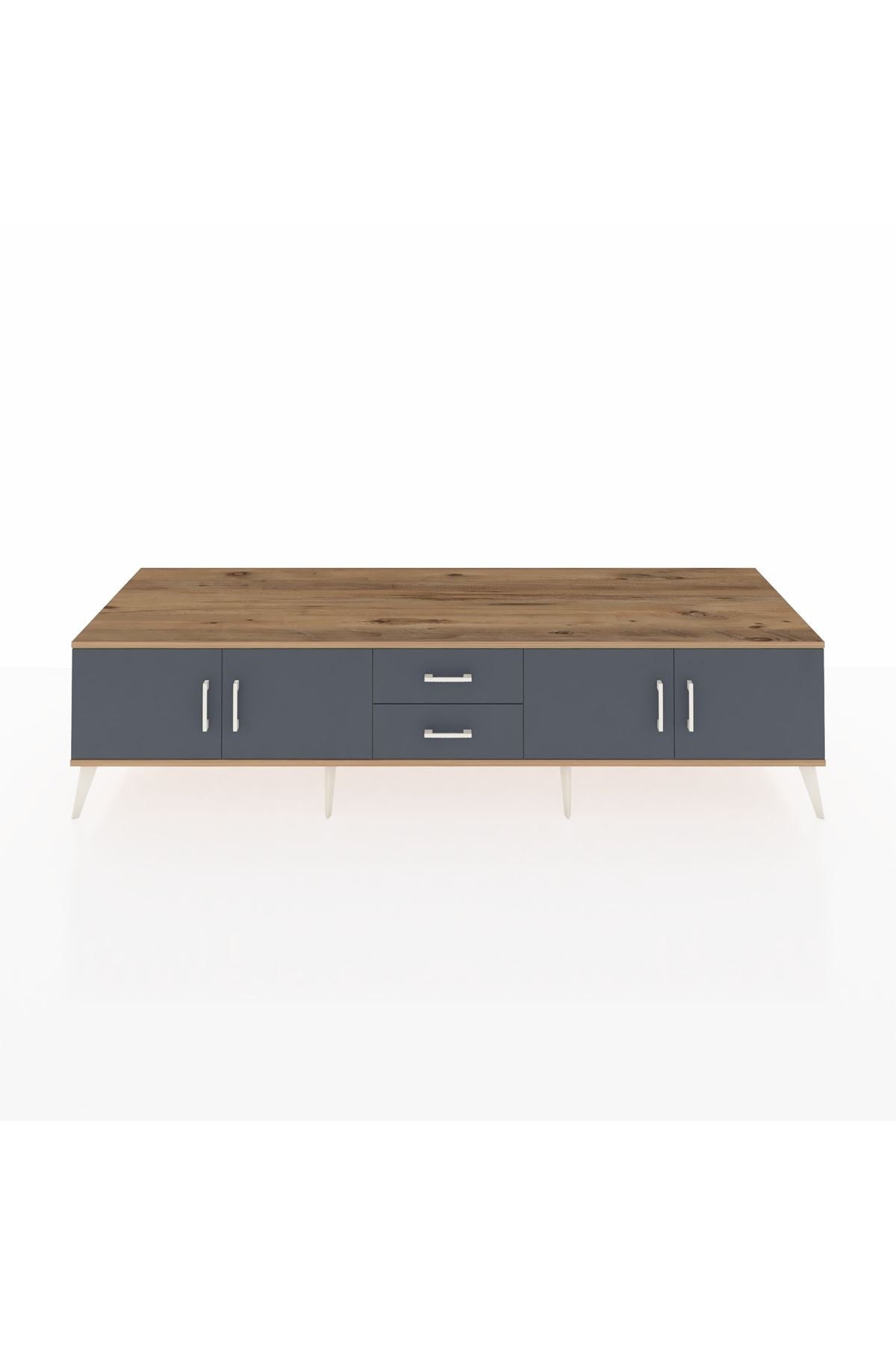 Kronos TV Ünitesi 2 Raflı 2 Çekmeceli 4 Kapaklı 220x59x51 Çam-Antrasit