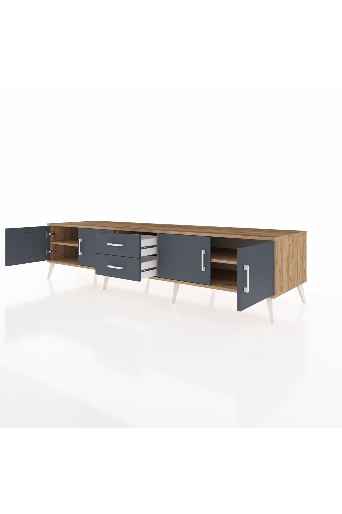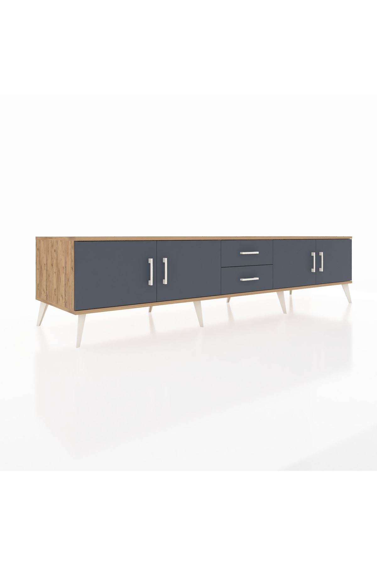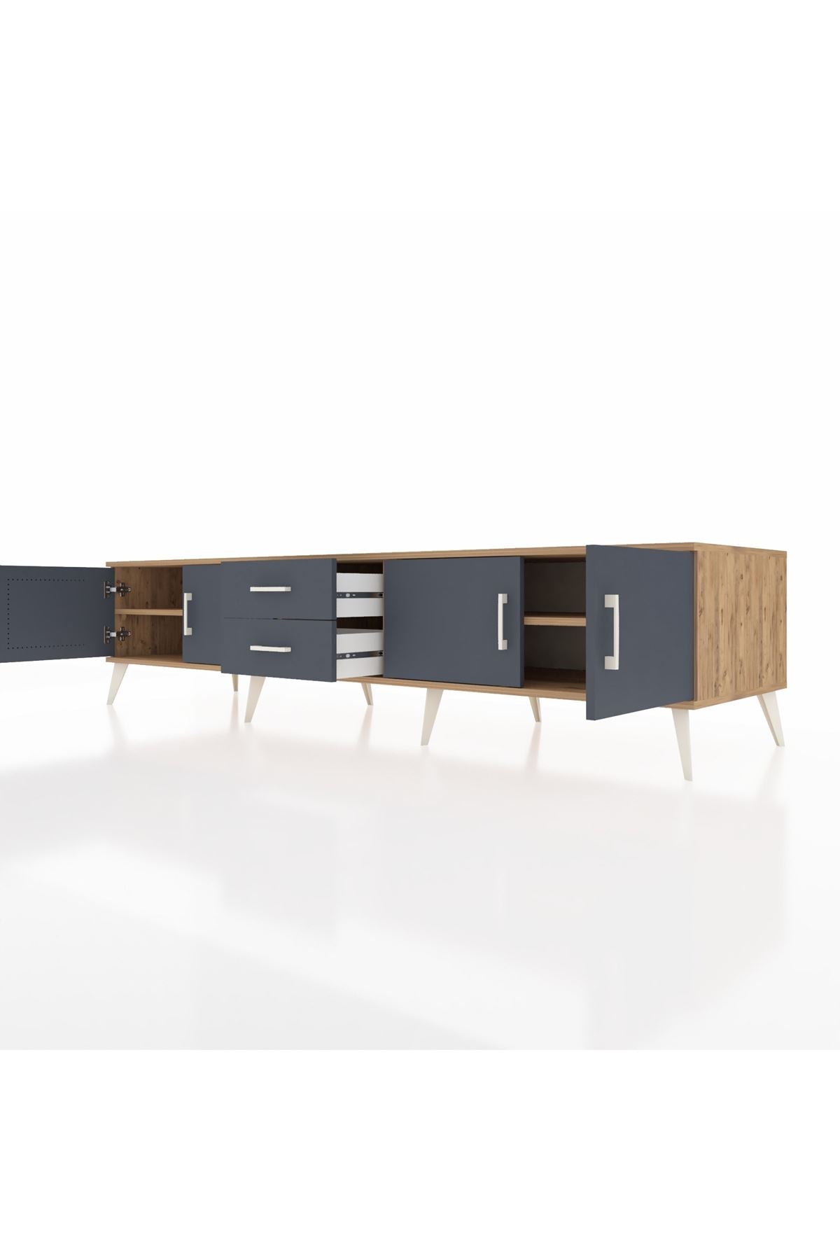 Kronos TV Ünitesi 2 Raflı 2 Çekmeceli 4 Kapaklı 220x59x51 Çam-Antrasit