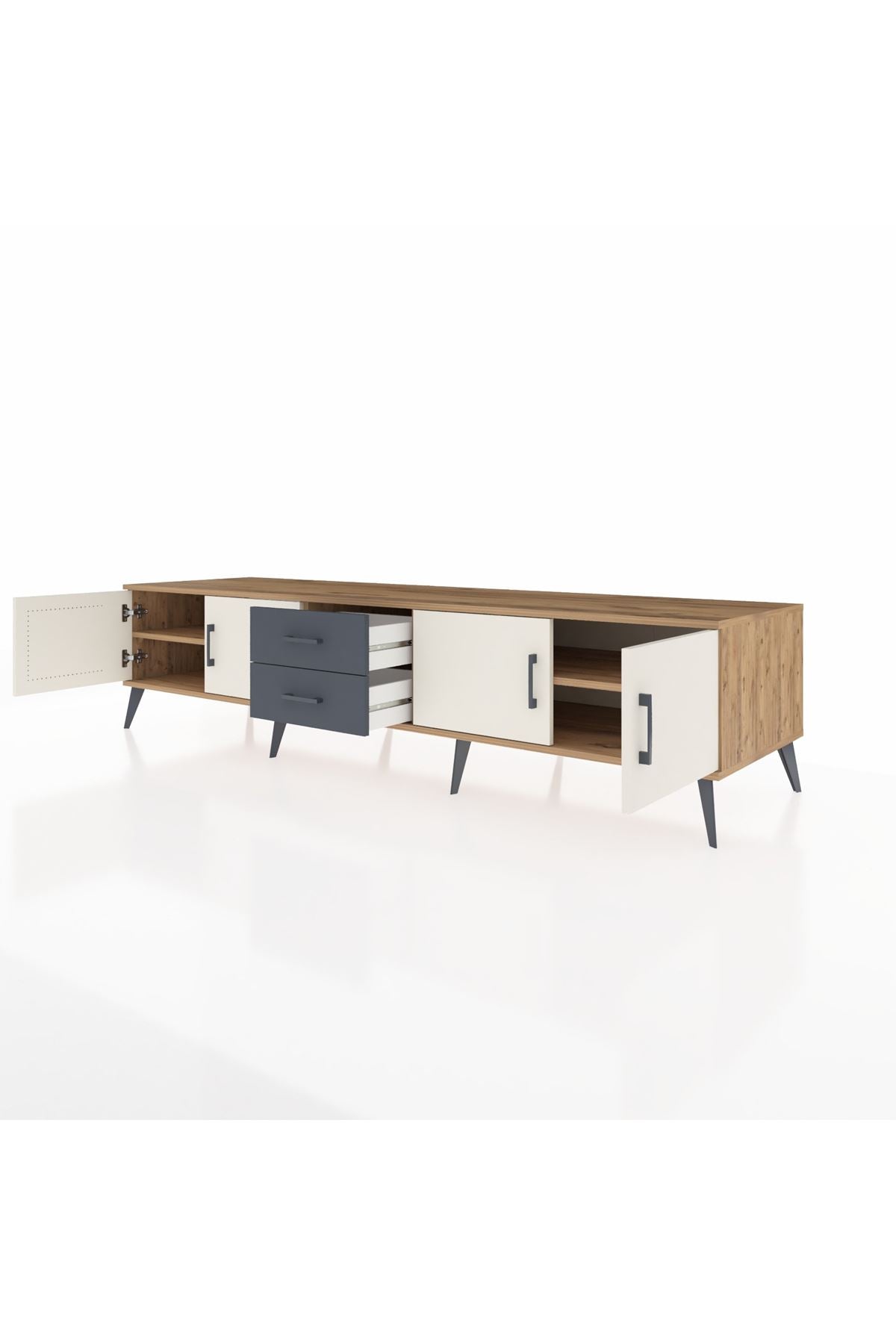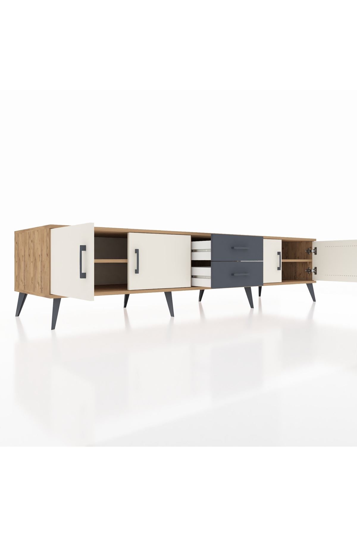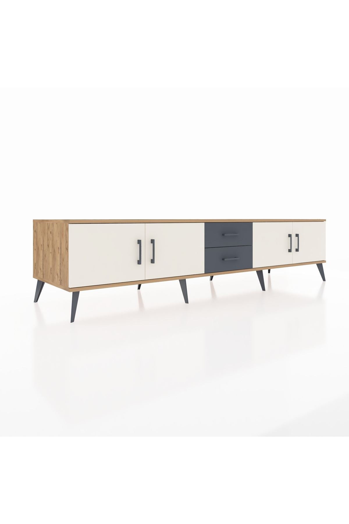 Kronos TV Ünitesi 2 Raflı 2 Çekmeceli 4 Kapaklı 220x59x51 Çam-Aytaşı/Antrasit