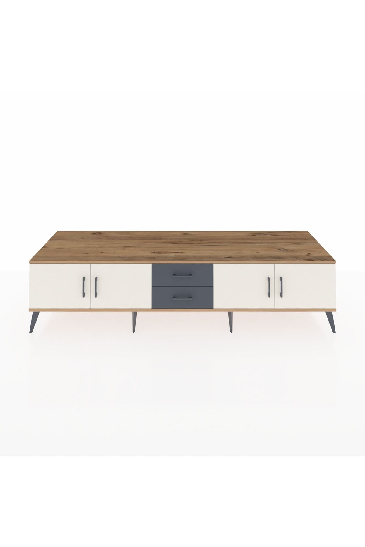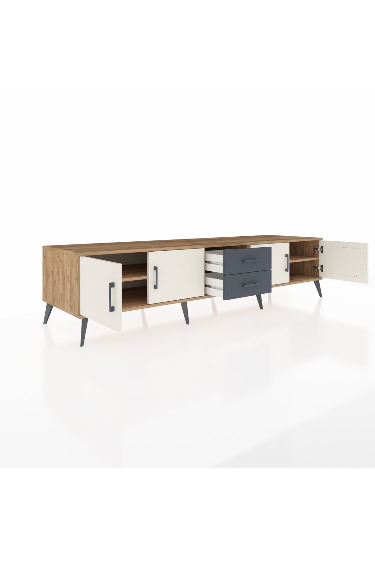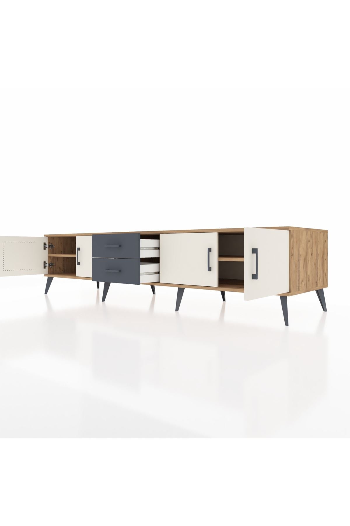Kronos TV Ünitesi 2 Raflı 2 Çekmeceli 4 Kapaklı 220x59x51 Çam-Aytaşı/Antrasit