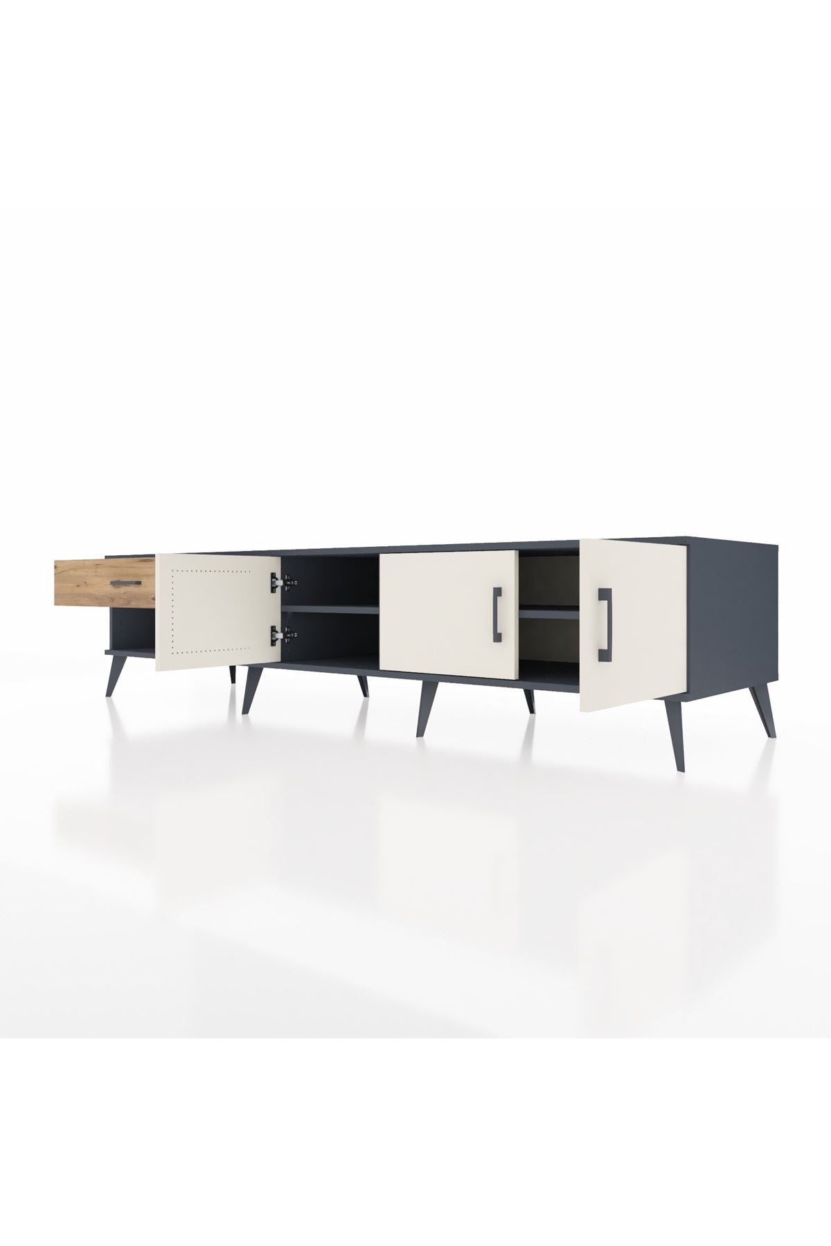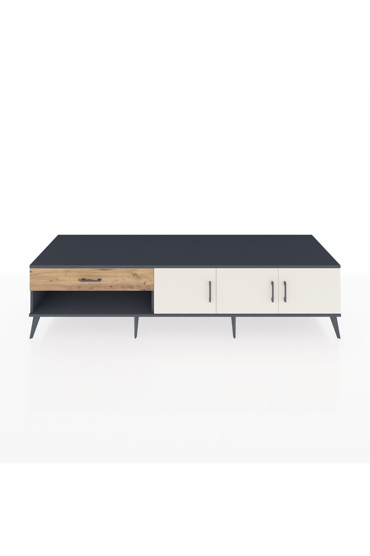Kronos TV Ünitesi 2 Raflı Tek Çekmeceli 3 Kapaklı 220x59x51 Antrasit-Aytaşı/Çam