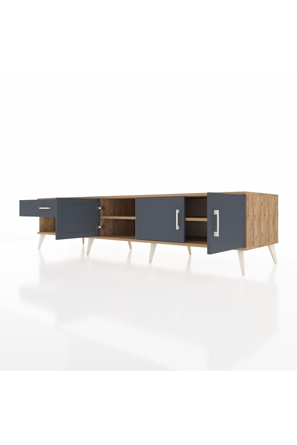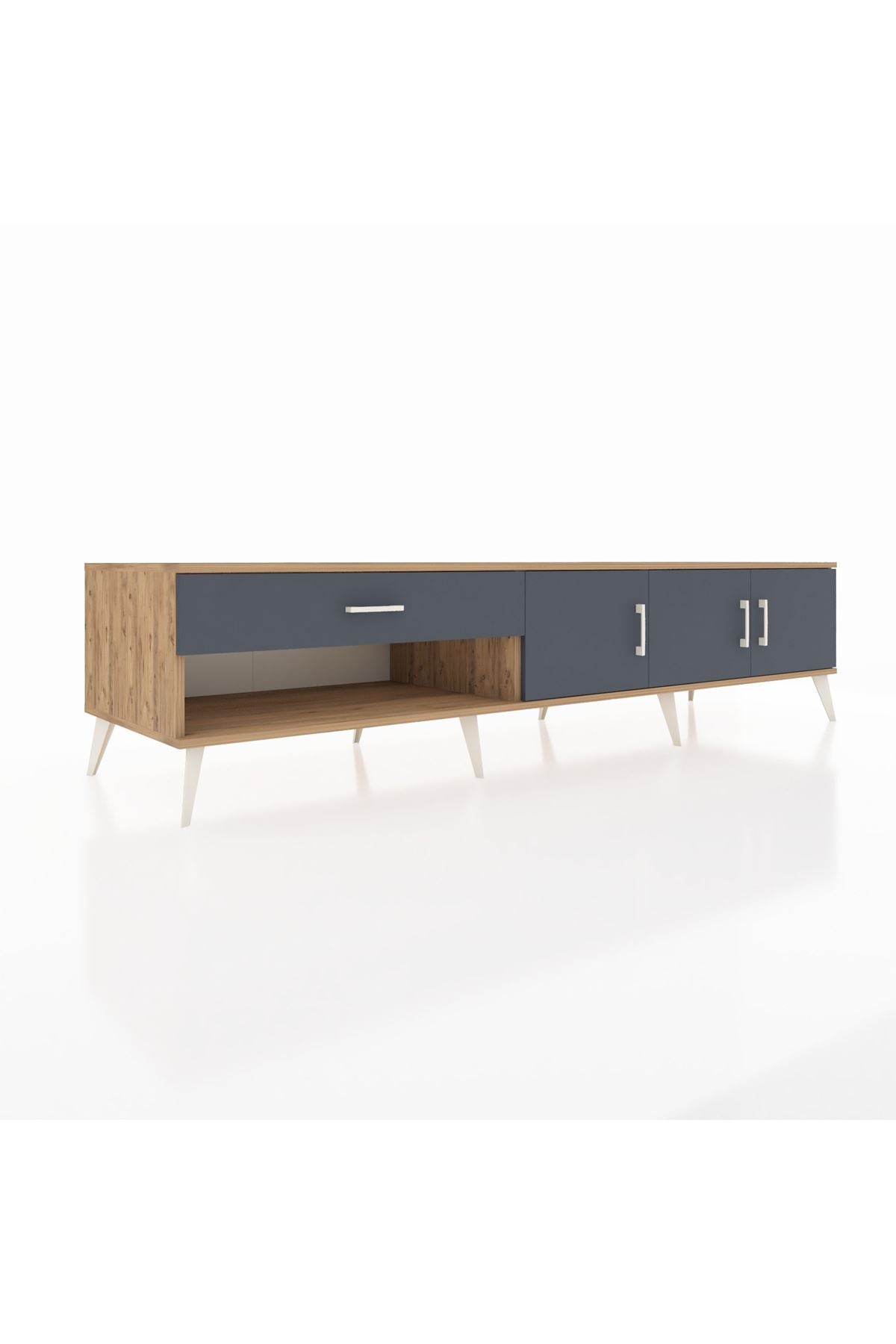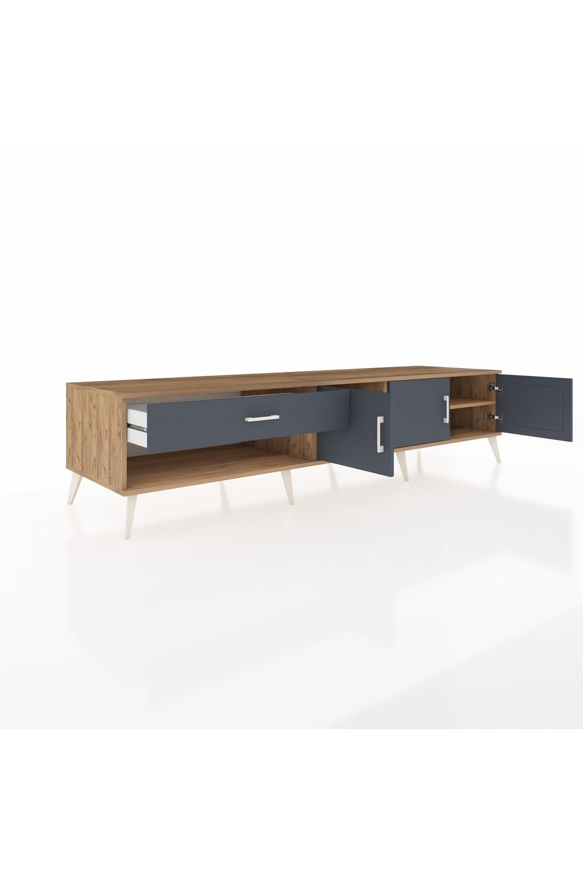 ✨ Salonunuza modern bir dokunuş katacak, şık çam ve antrasit renk kombinasyonuyla göz kamaştıran Kronos TV Ünitesi ile tanışın! Bu TV ünitesi, hem estetik görünümü hem de fonksiyonel depolama çözümleriyle yaşam alanınızı zenginleştirecek.