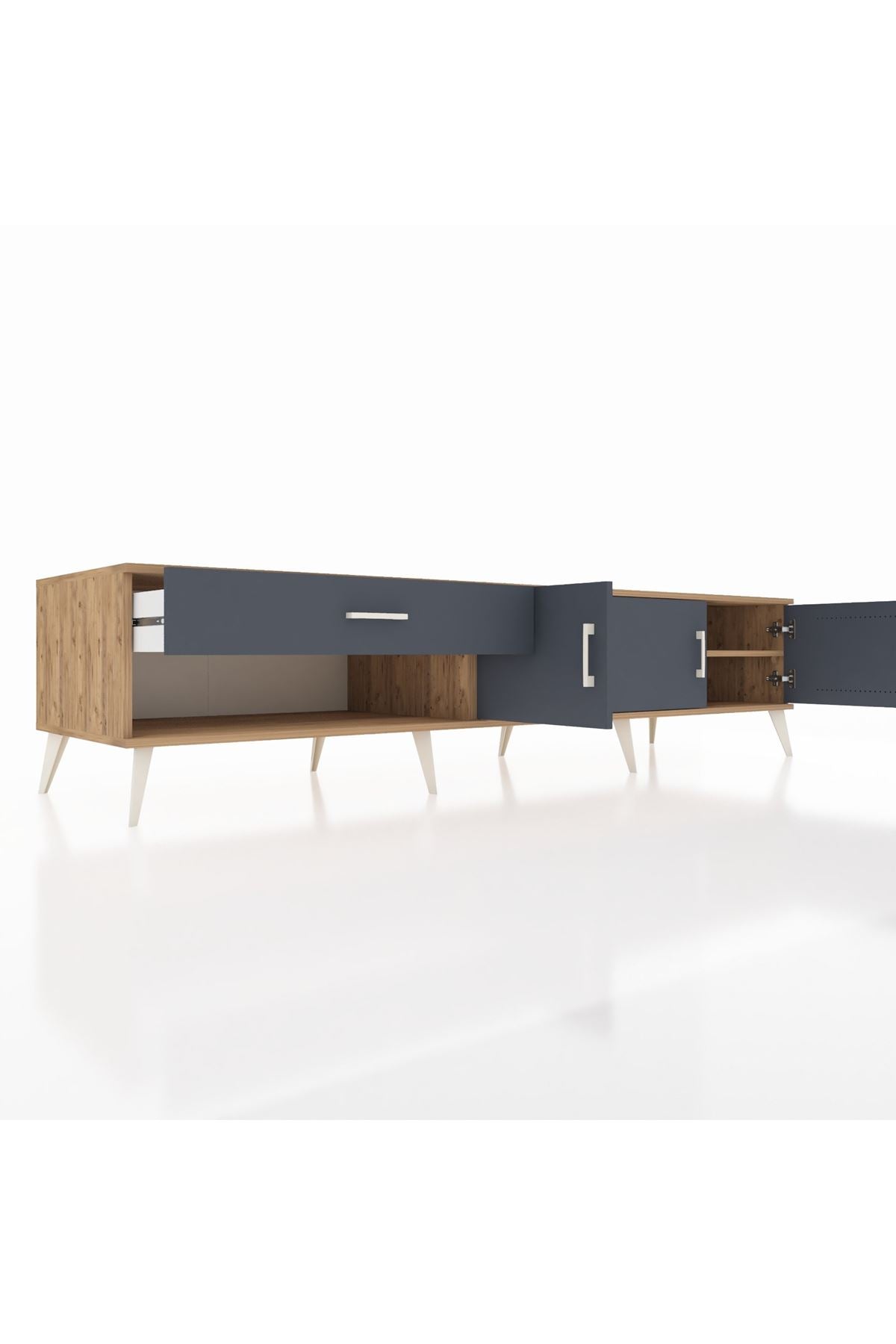 Kronos TV Ünitesi 2 Raflı Tek Çekmeceli 3 Kapaklı 220x59x51 Çam-Antrasit