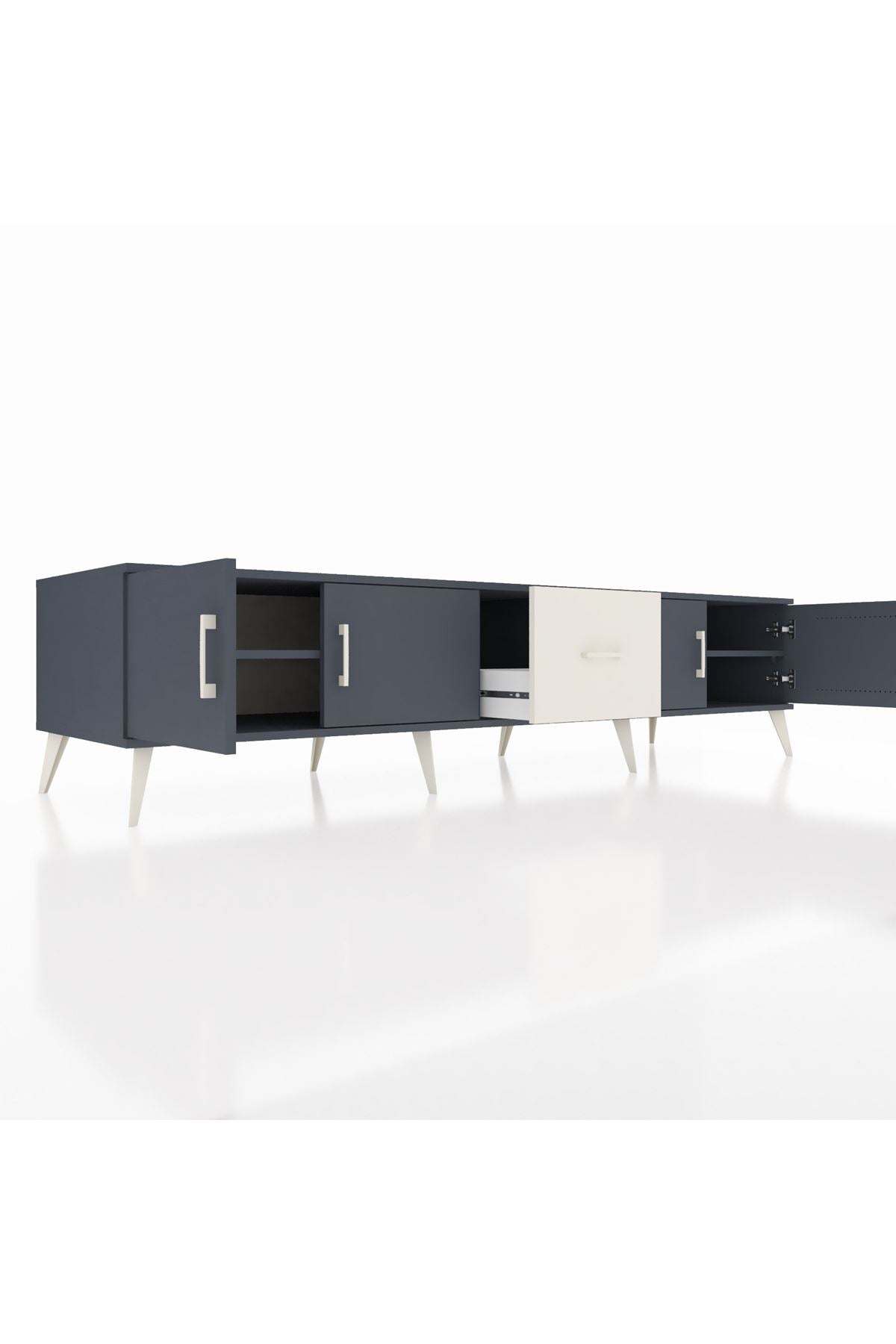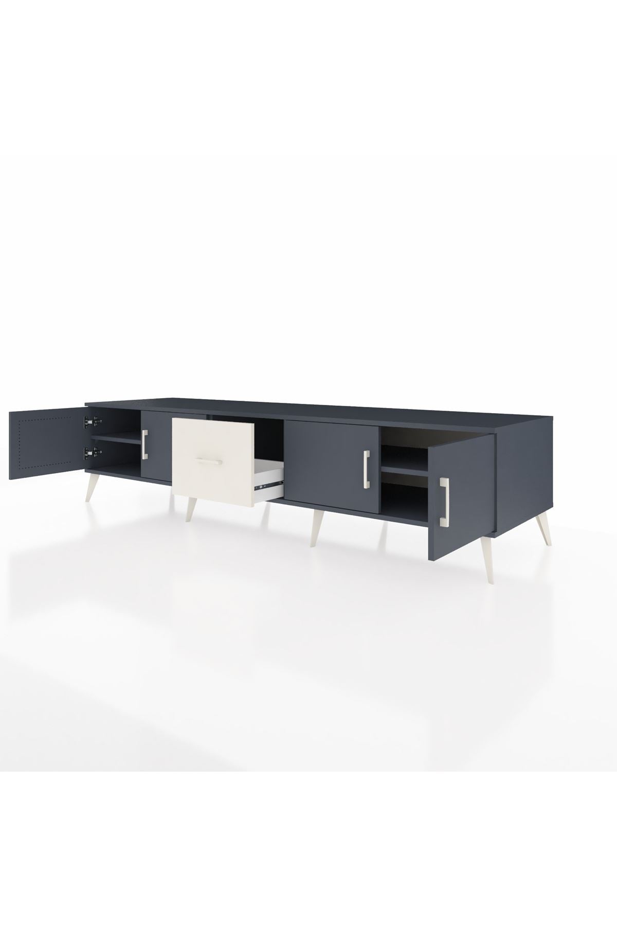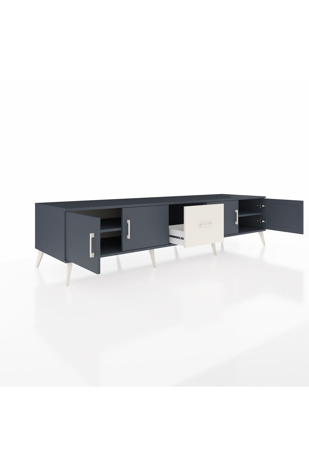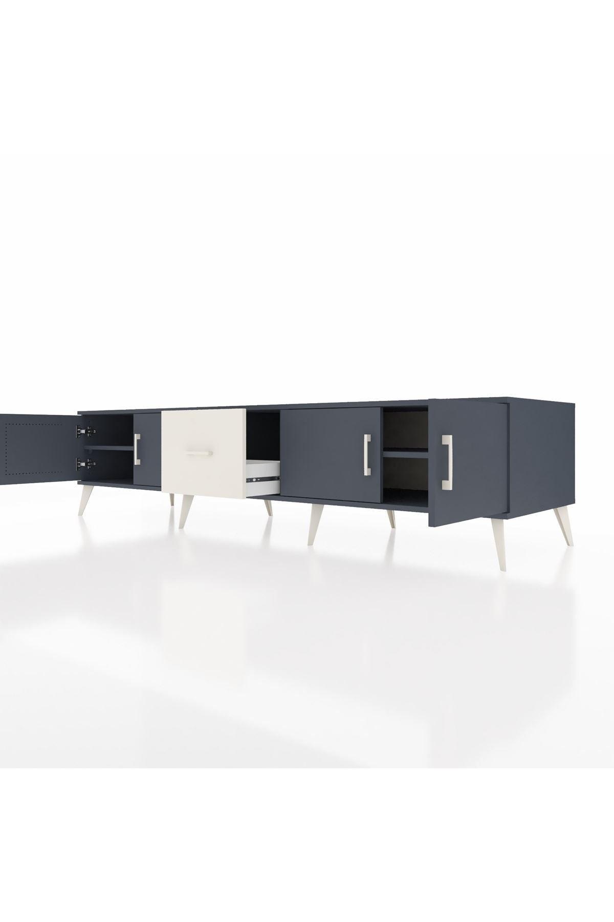 Kronos TV Ünitesi 2 Raflı Tek Çekmeceli 4 Kapaklı 220x59x51 Antrasit-Antrasit/Aytaşı