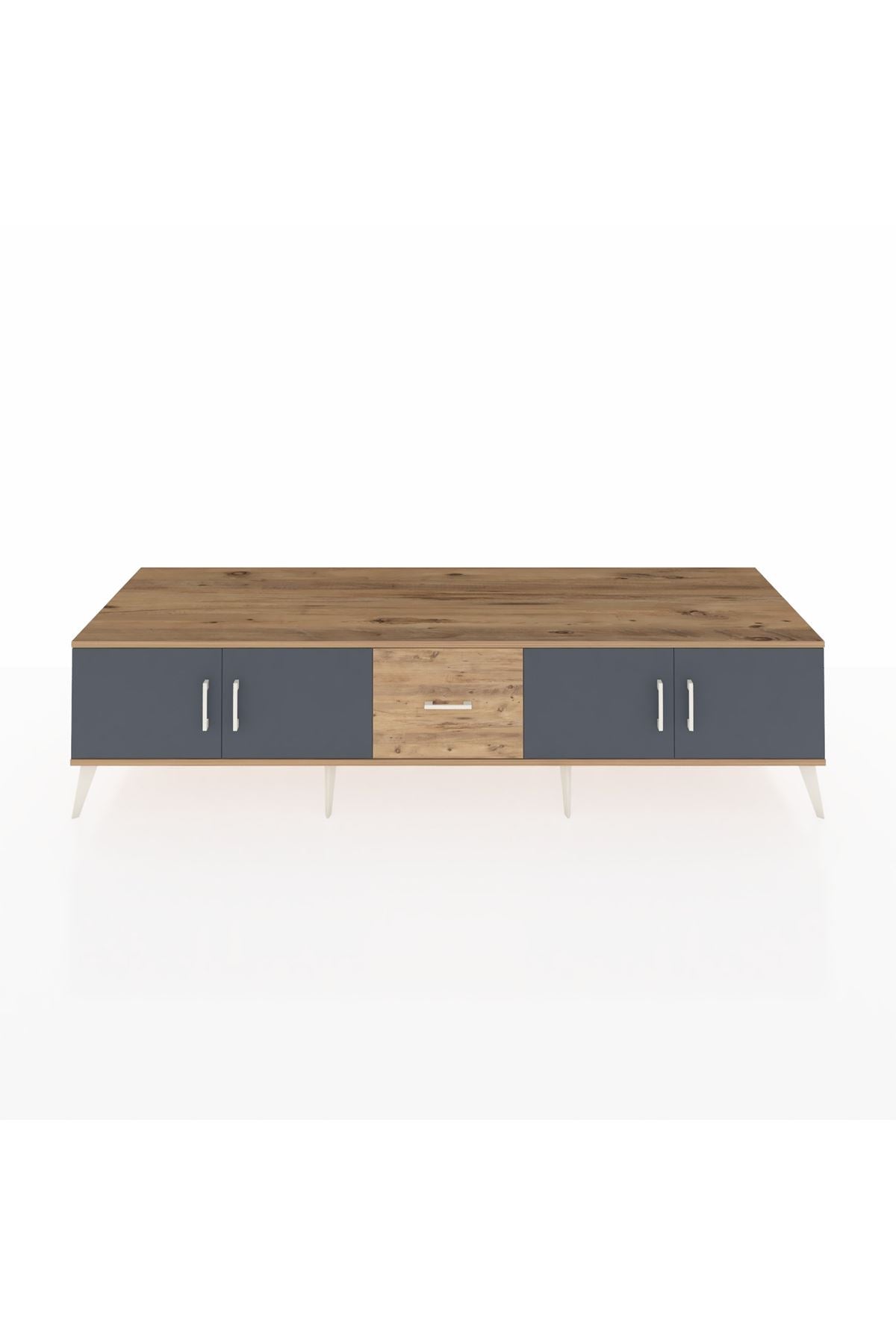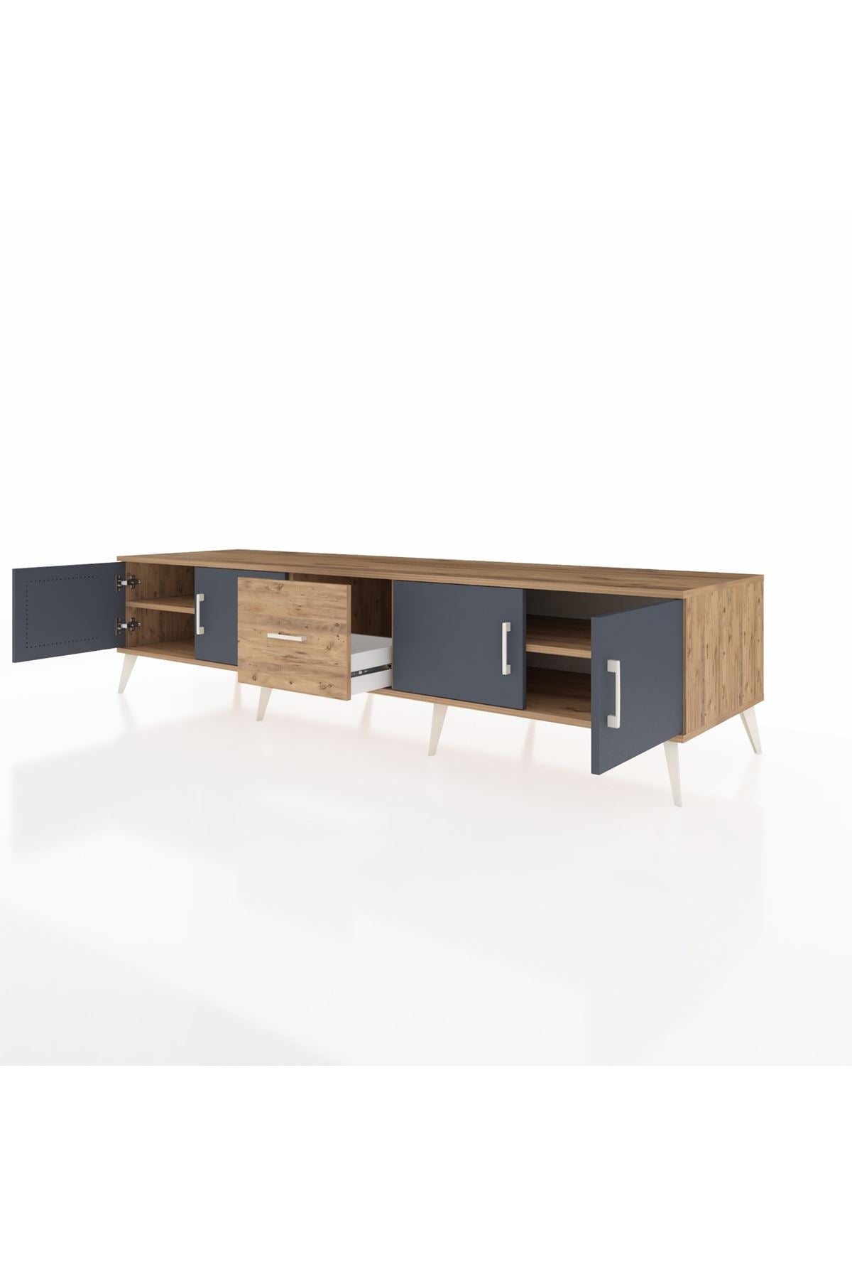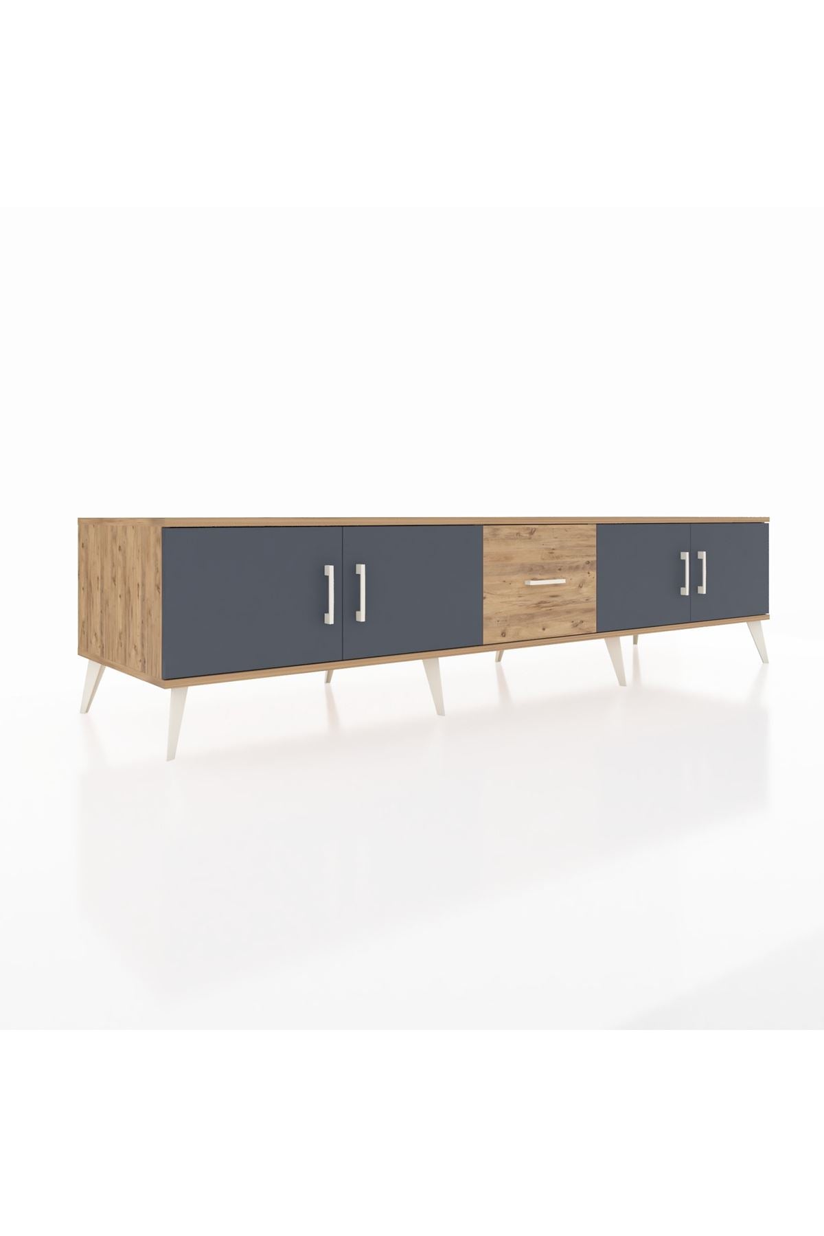Kronos TV Ünitesi 2 Raflı Tek Çekmeceli 4 Kapaklı 220x59x51 Çam-Antrasit/Çam