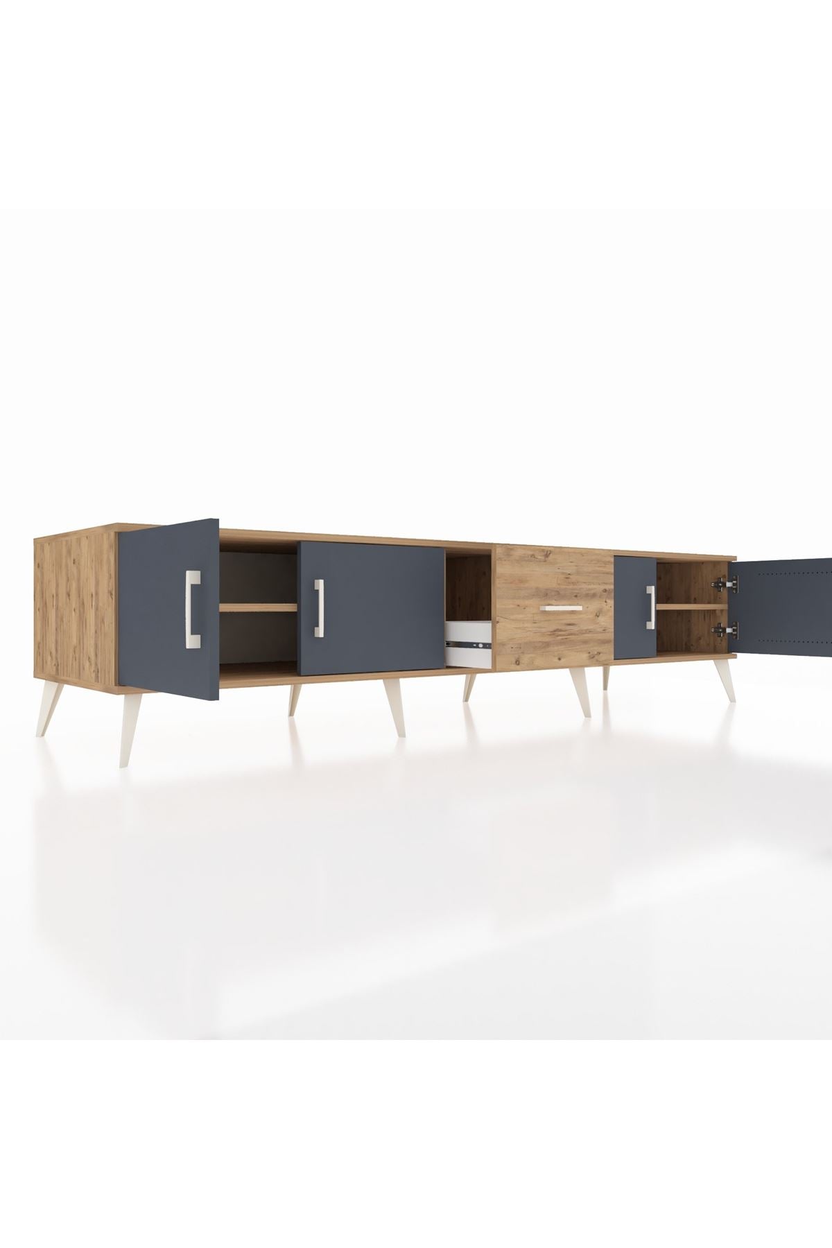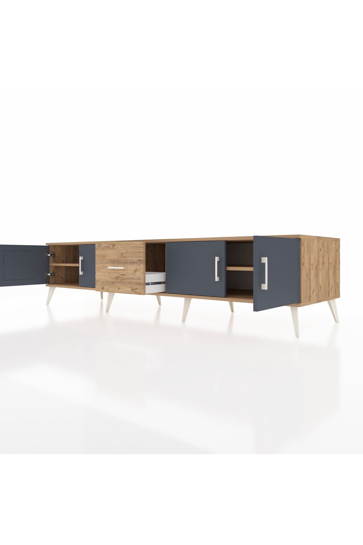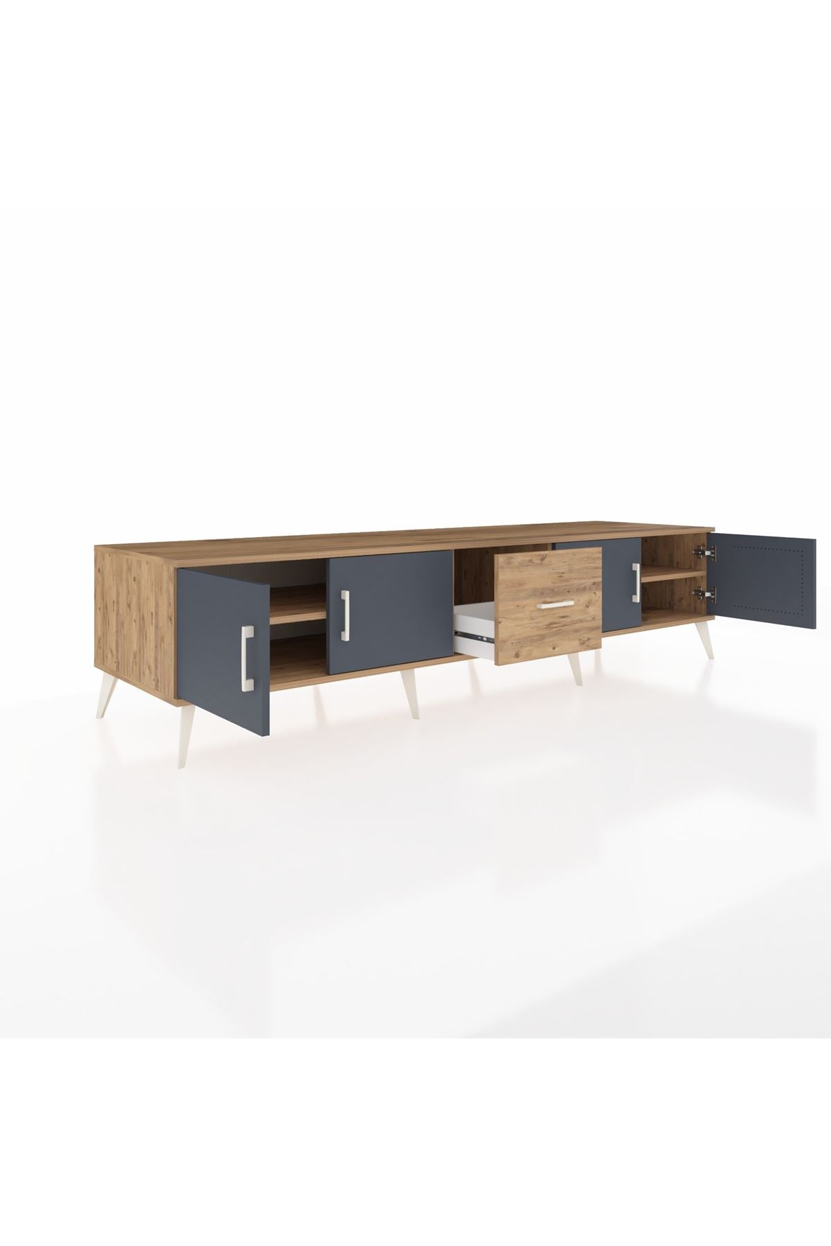 Kronos TV Ünitesi 2 Raflı Tek Çekmeceli 4 Kapaklı 220x59x51 Çam-Antrasit/Çam