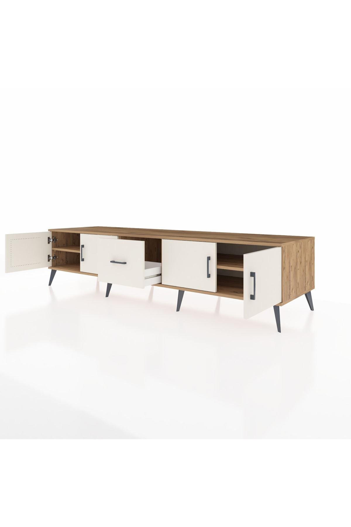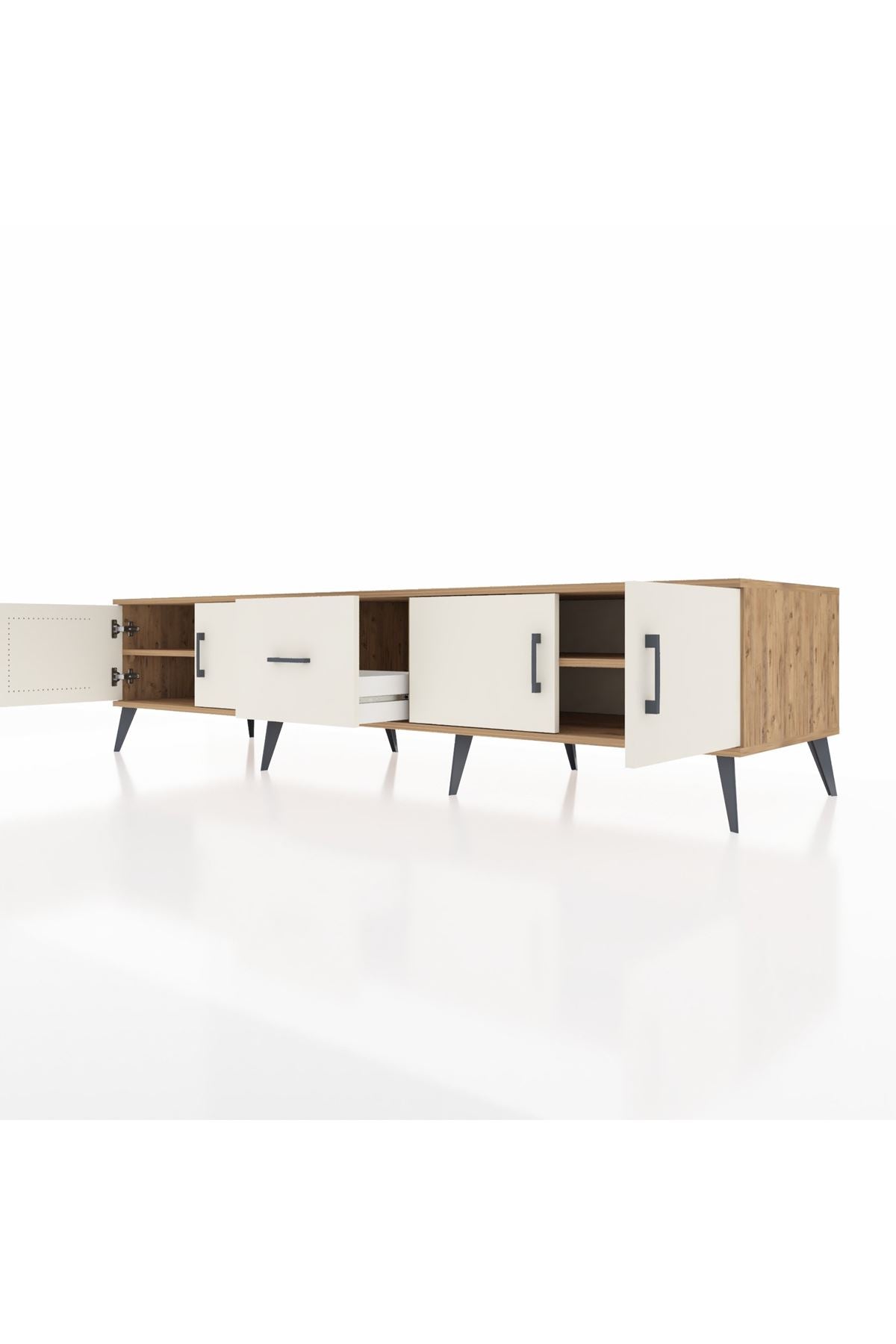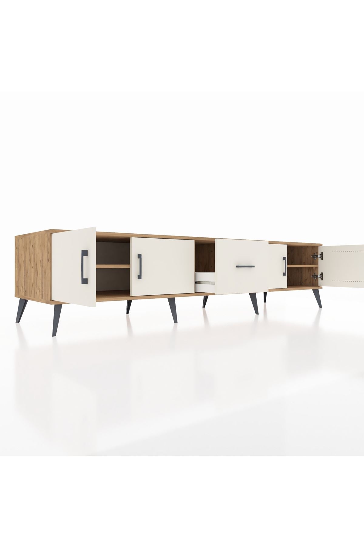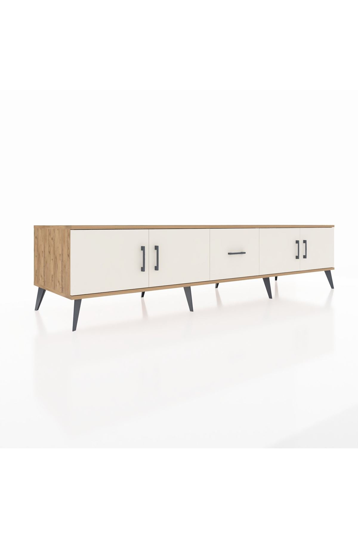 Kronos TV Ünitesi 2 Raflı Tek Çekmeceli 4 Kapaklı 220x59x51 Çam-Aytaşı