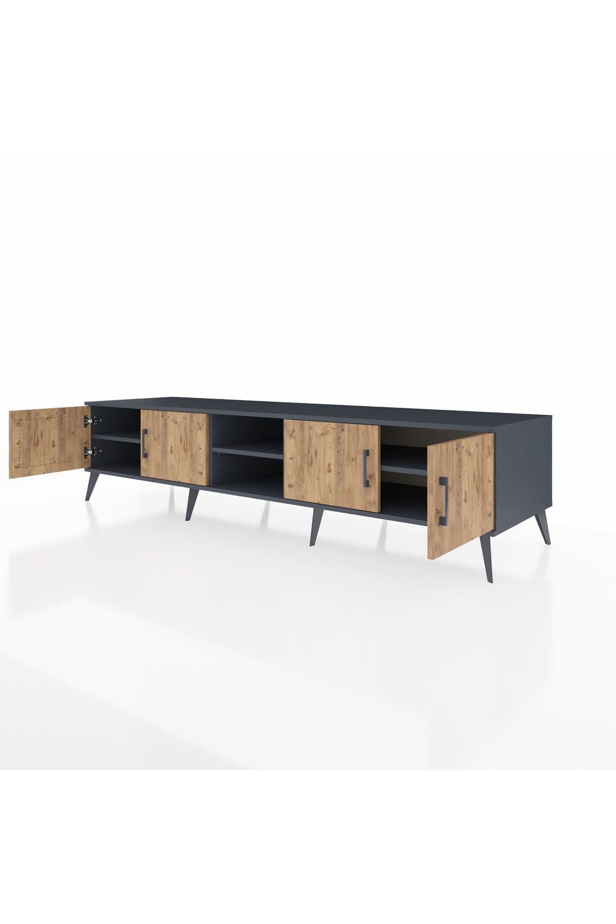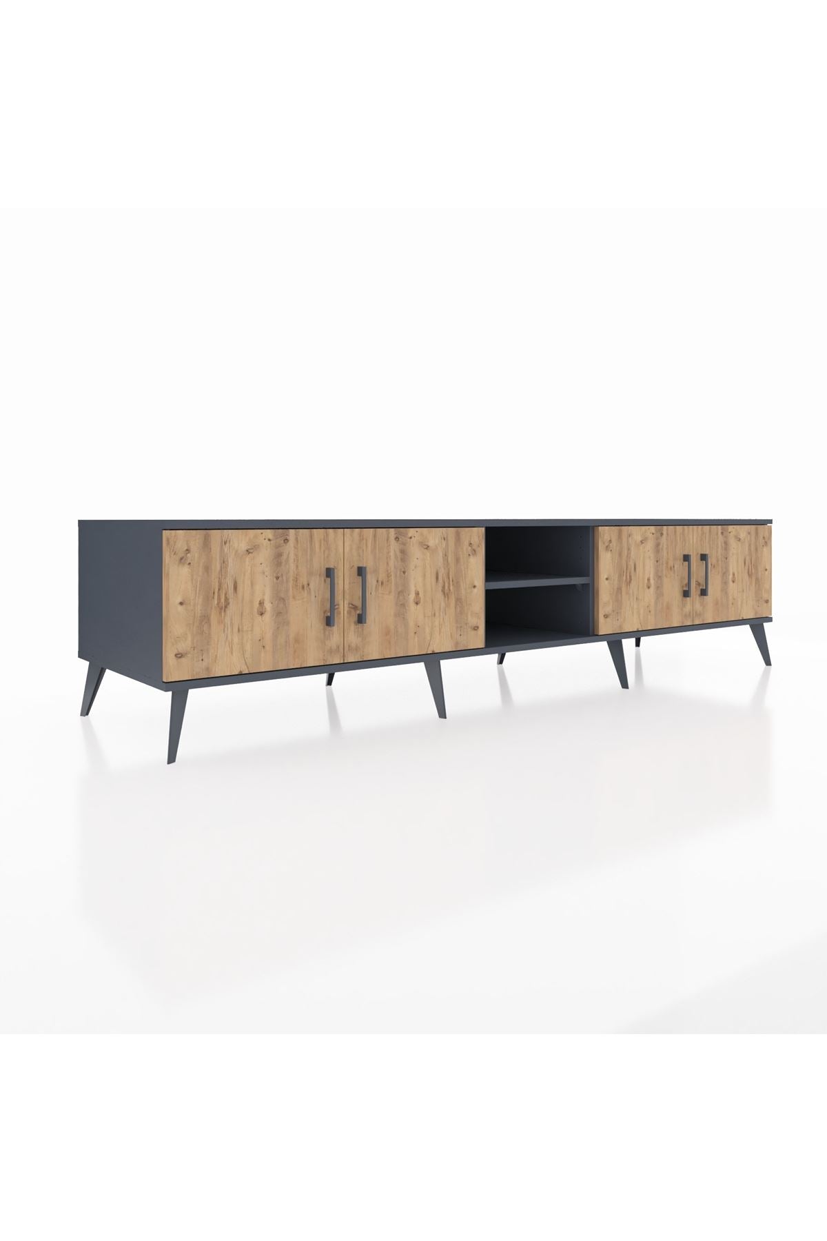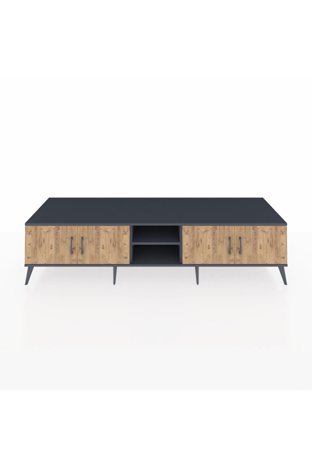 Kronos TV Ünitesi 3 Raflı 4 Kapaklı 220x59x51 Antrasit-Çam/Antrasit