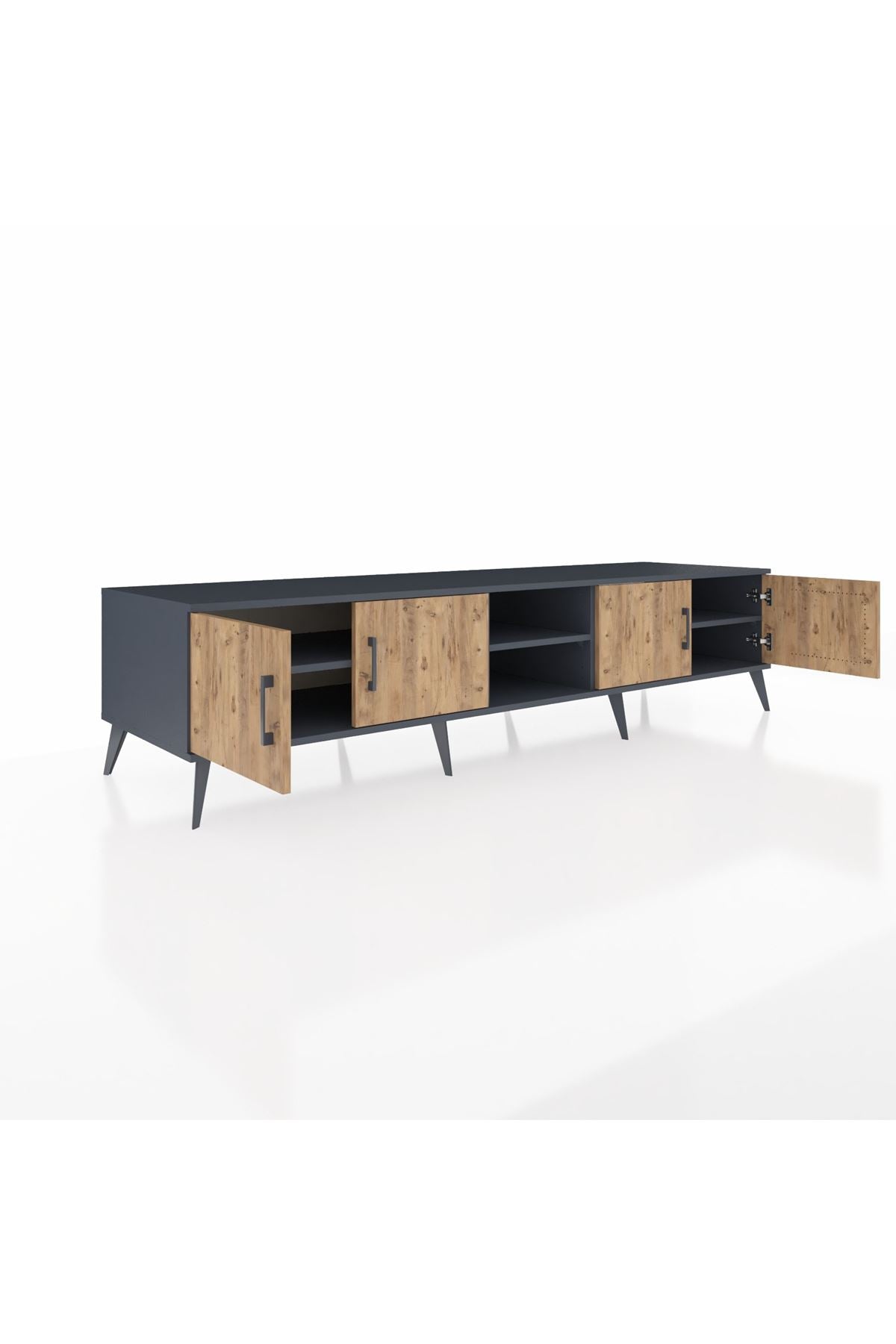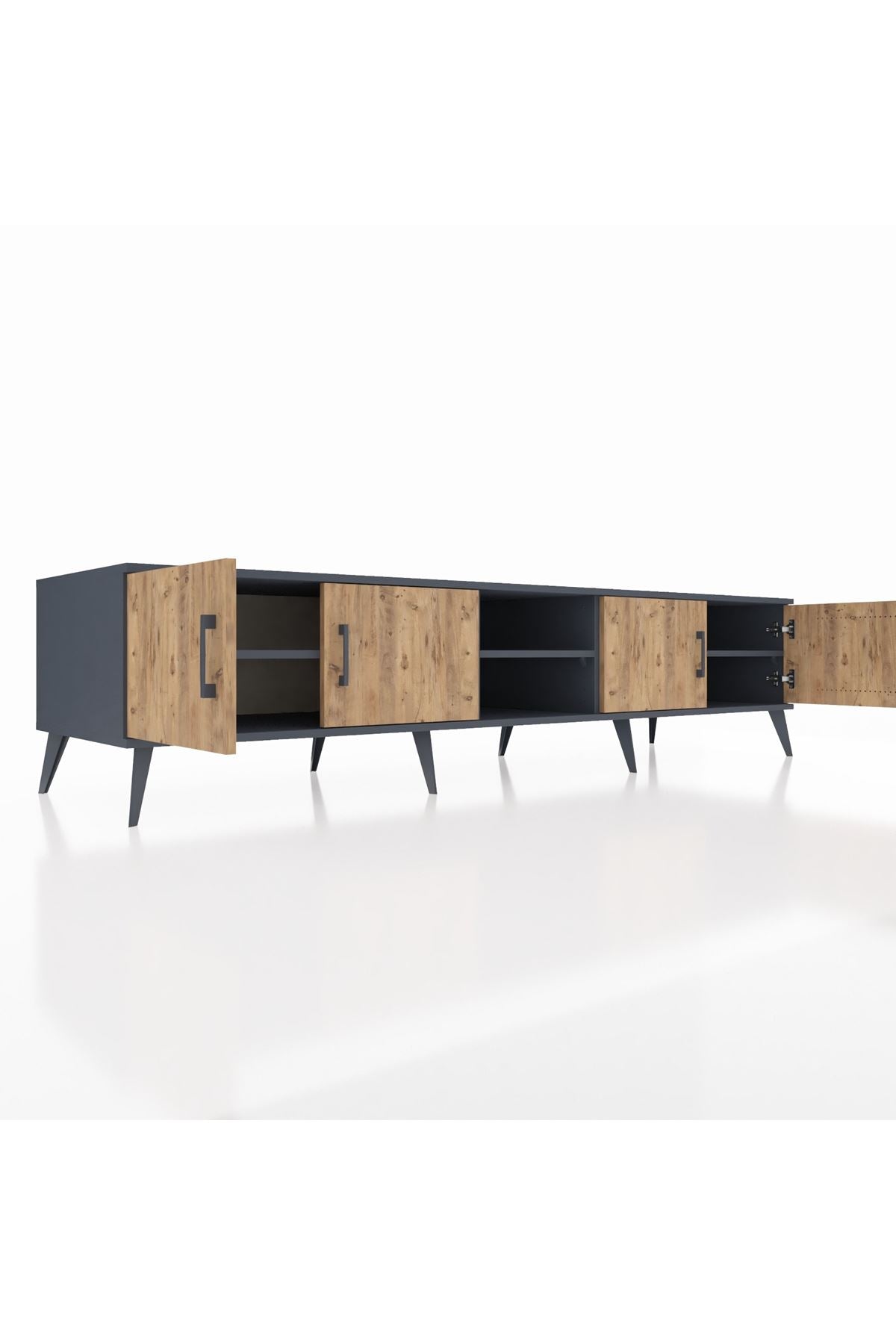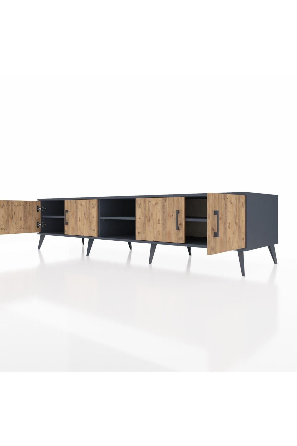 Kronos TV Ünitesi 3 Raflı 4 Kapaklı 220x59x51 Antrasit-Çam/Antrasit