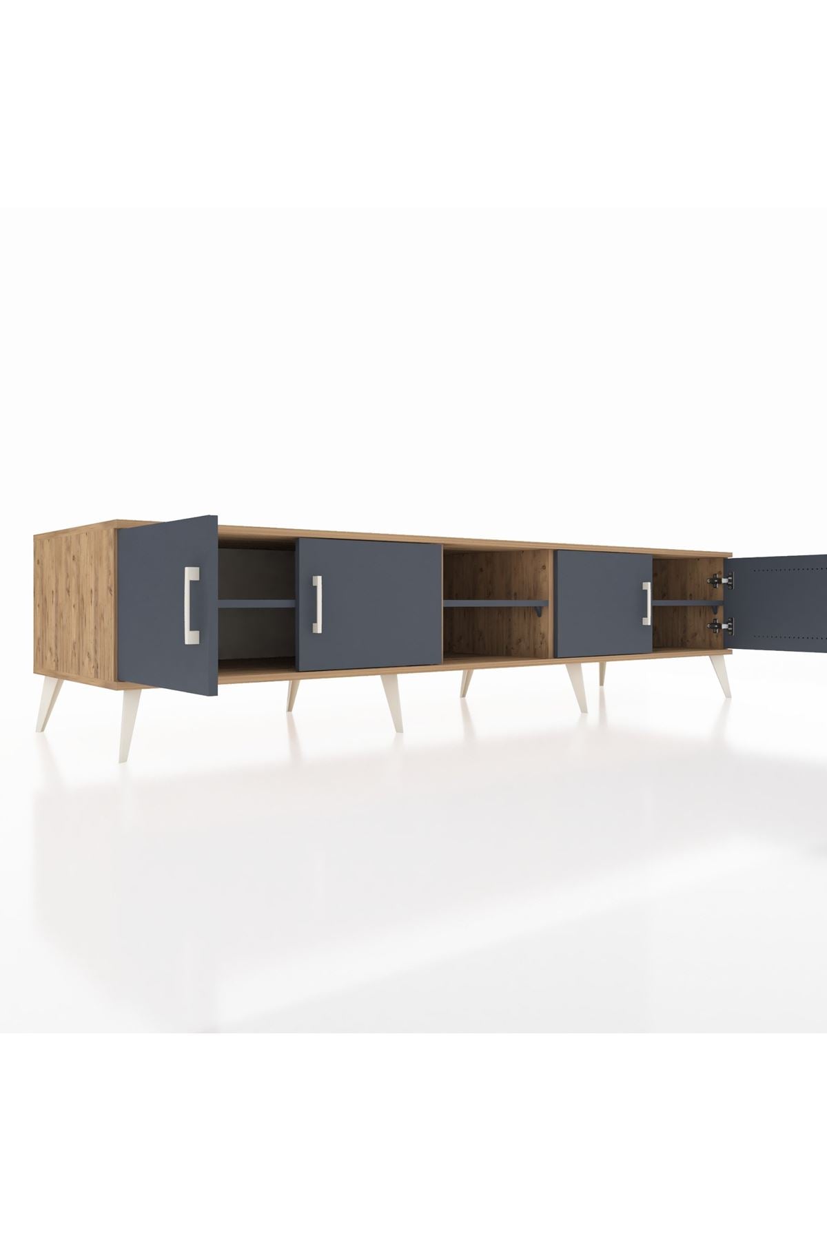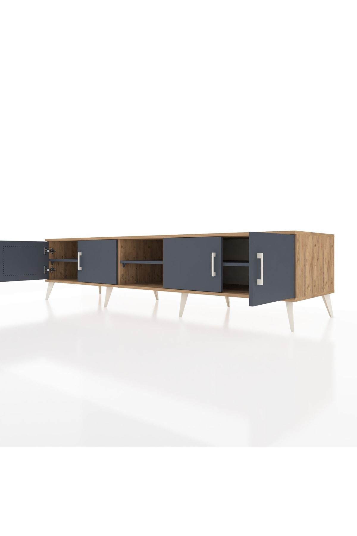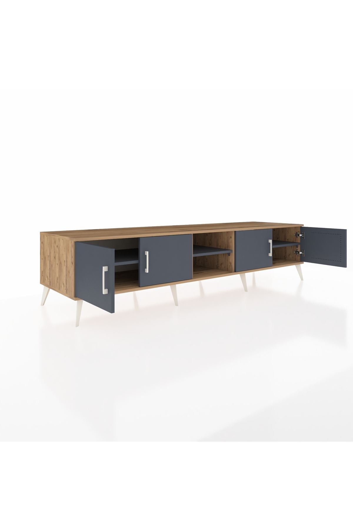 Kronos TV Ünitesi 3 Raflı 4 Kapaklı 220x59x51 Çam-Antrasit