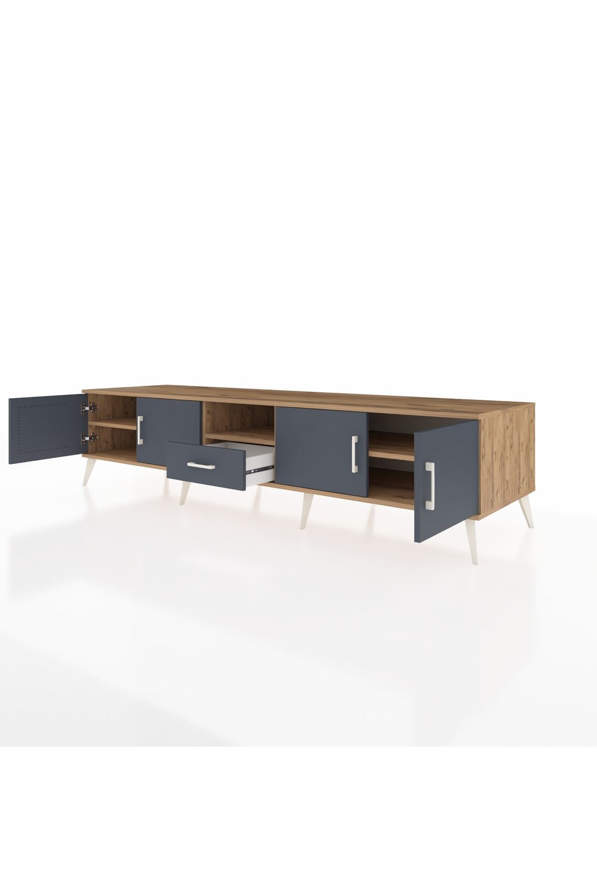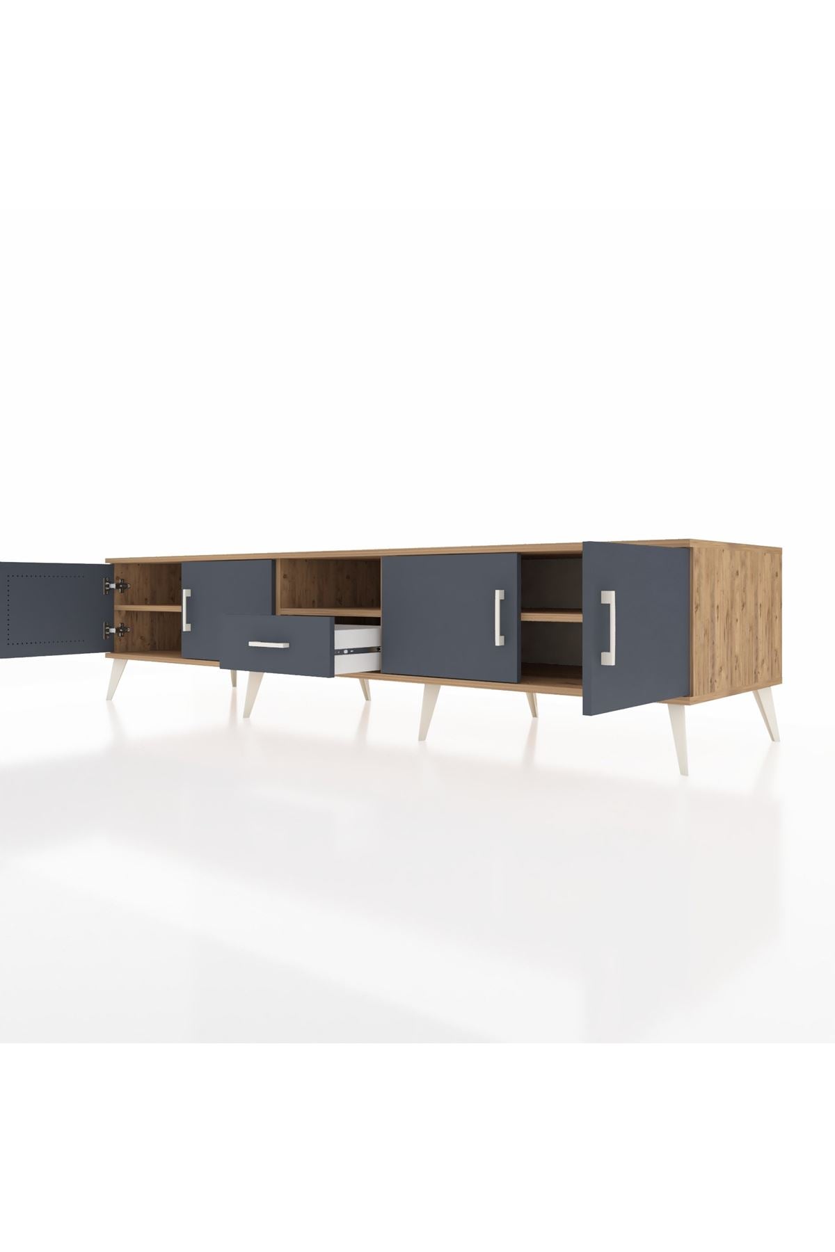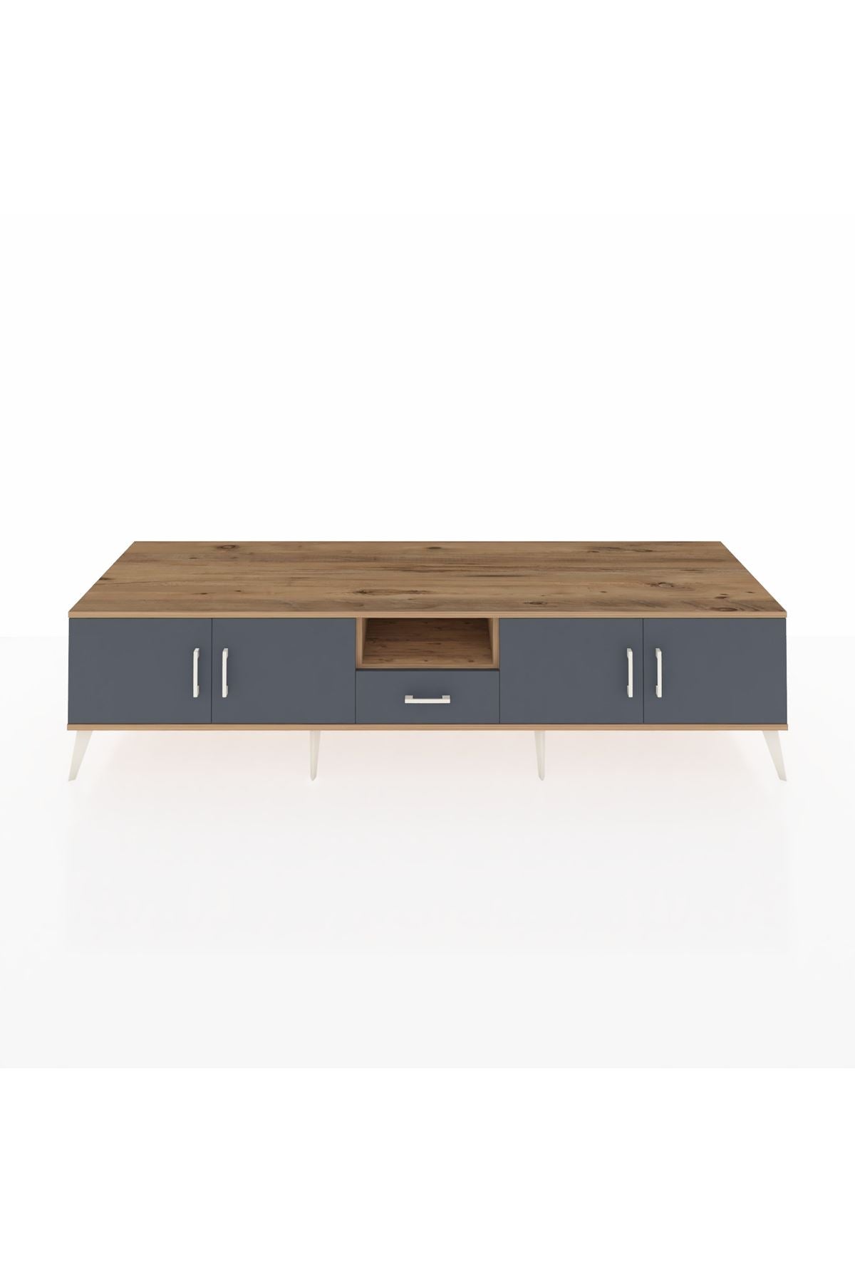 Kronos TV Ünitesi 3 Raflı Tek Çekmeceli 4 Kapaklı 220x59x51 Çam-Antrasit