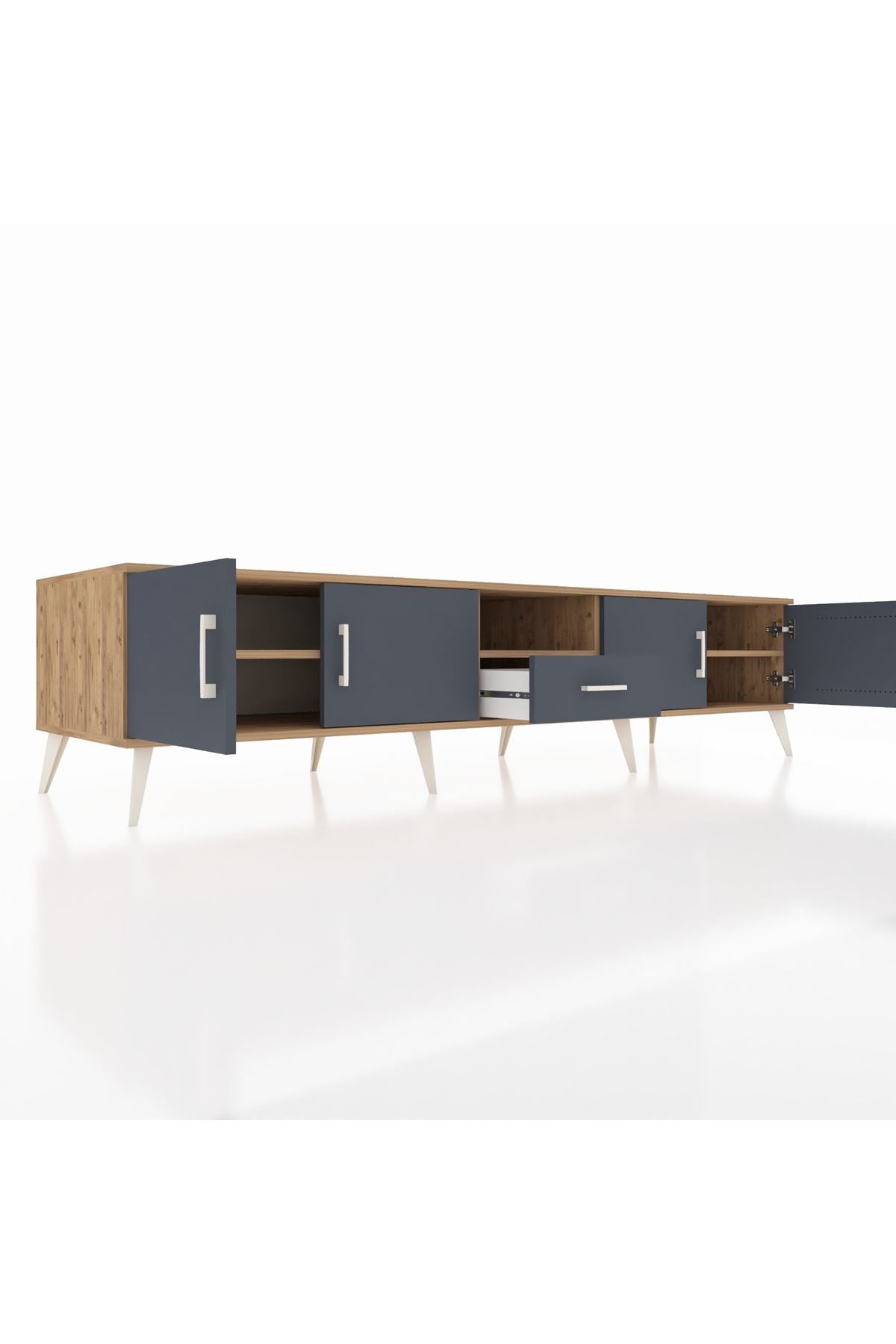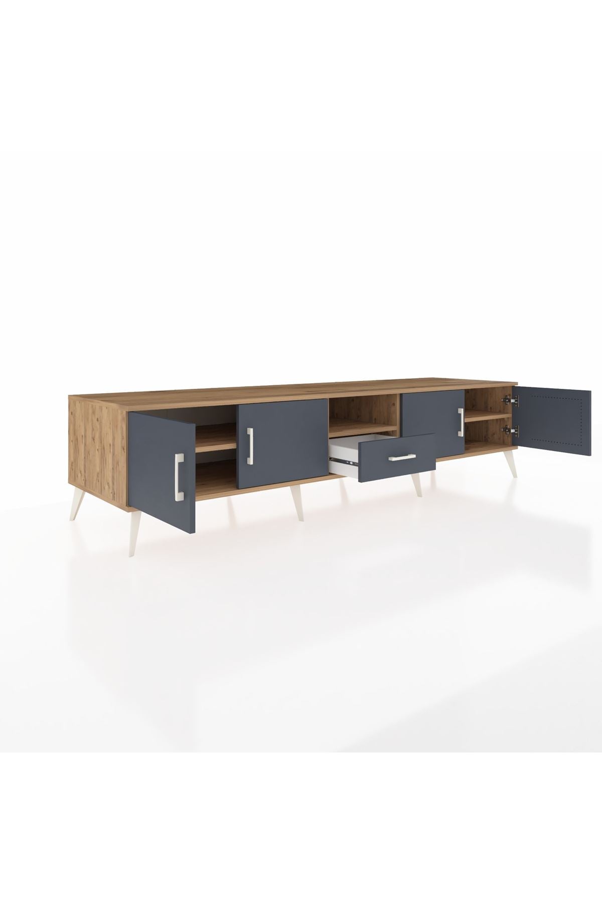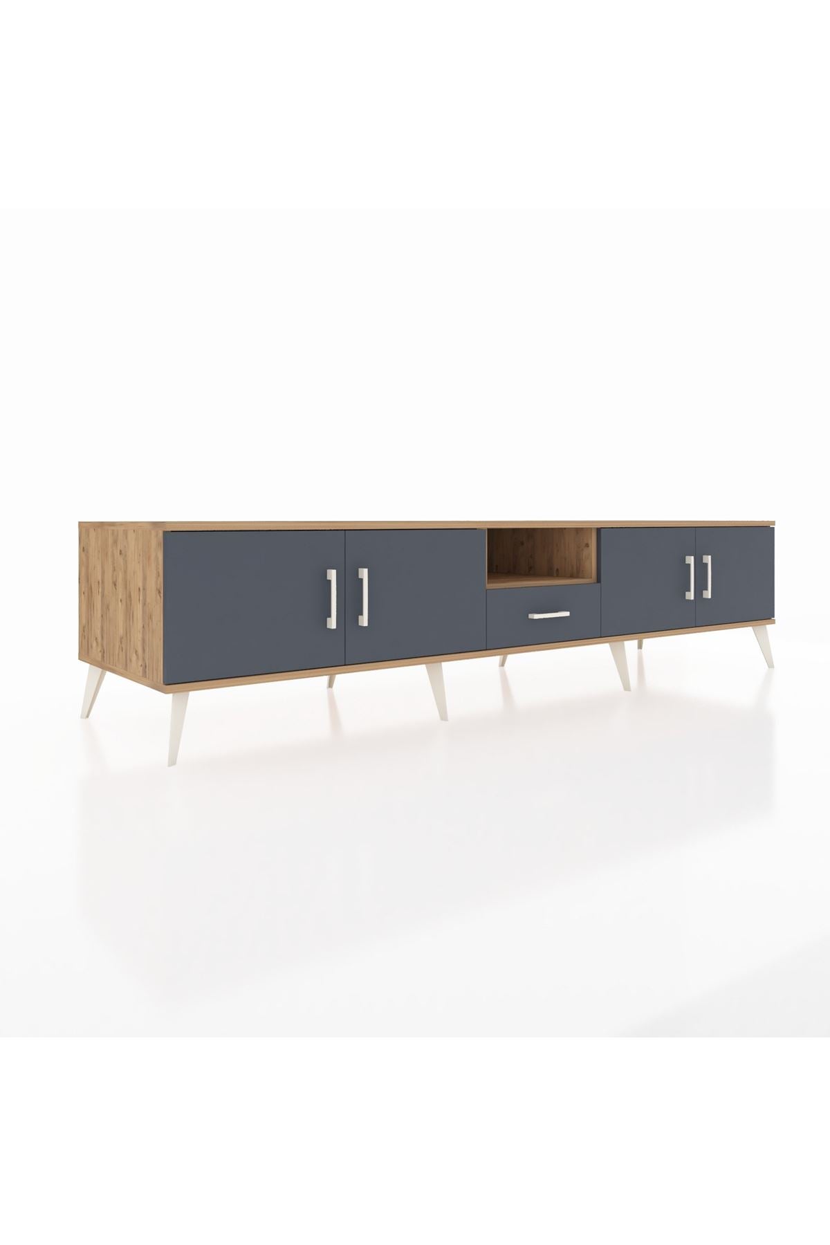 Kronos TV Ünitesi 3 Raflı Tek Çekmeceli 4 Kapaklı 220x59x51 Çam-Antrasit