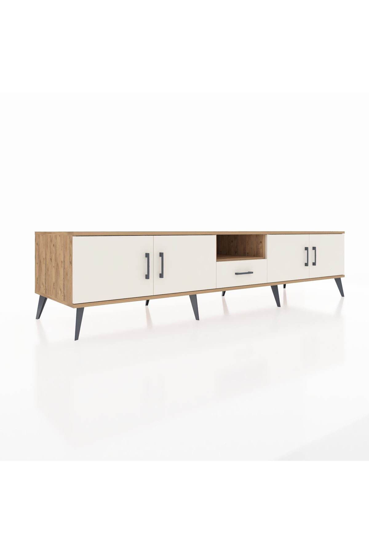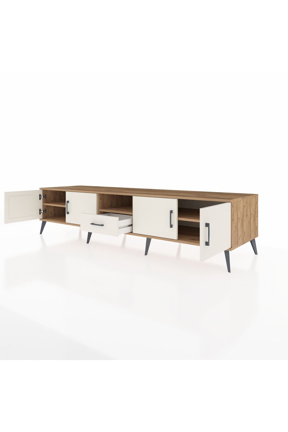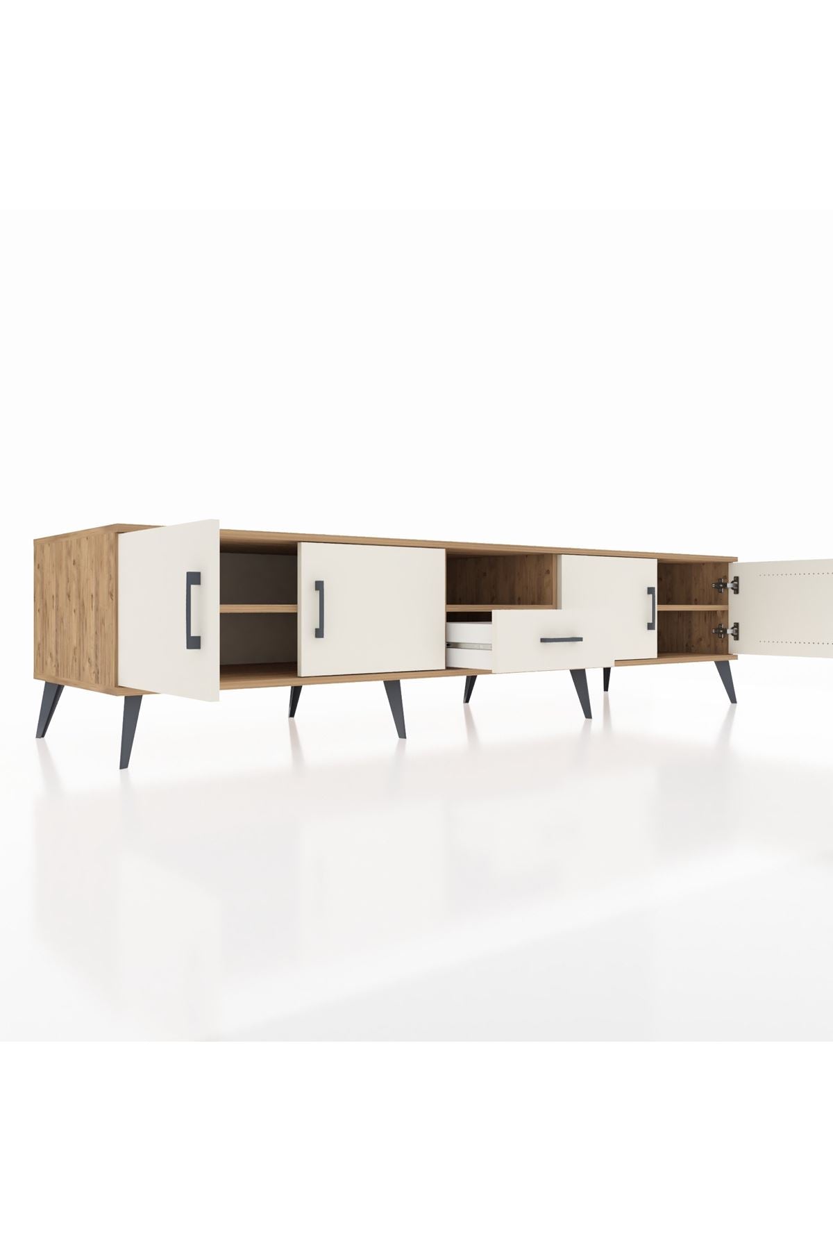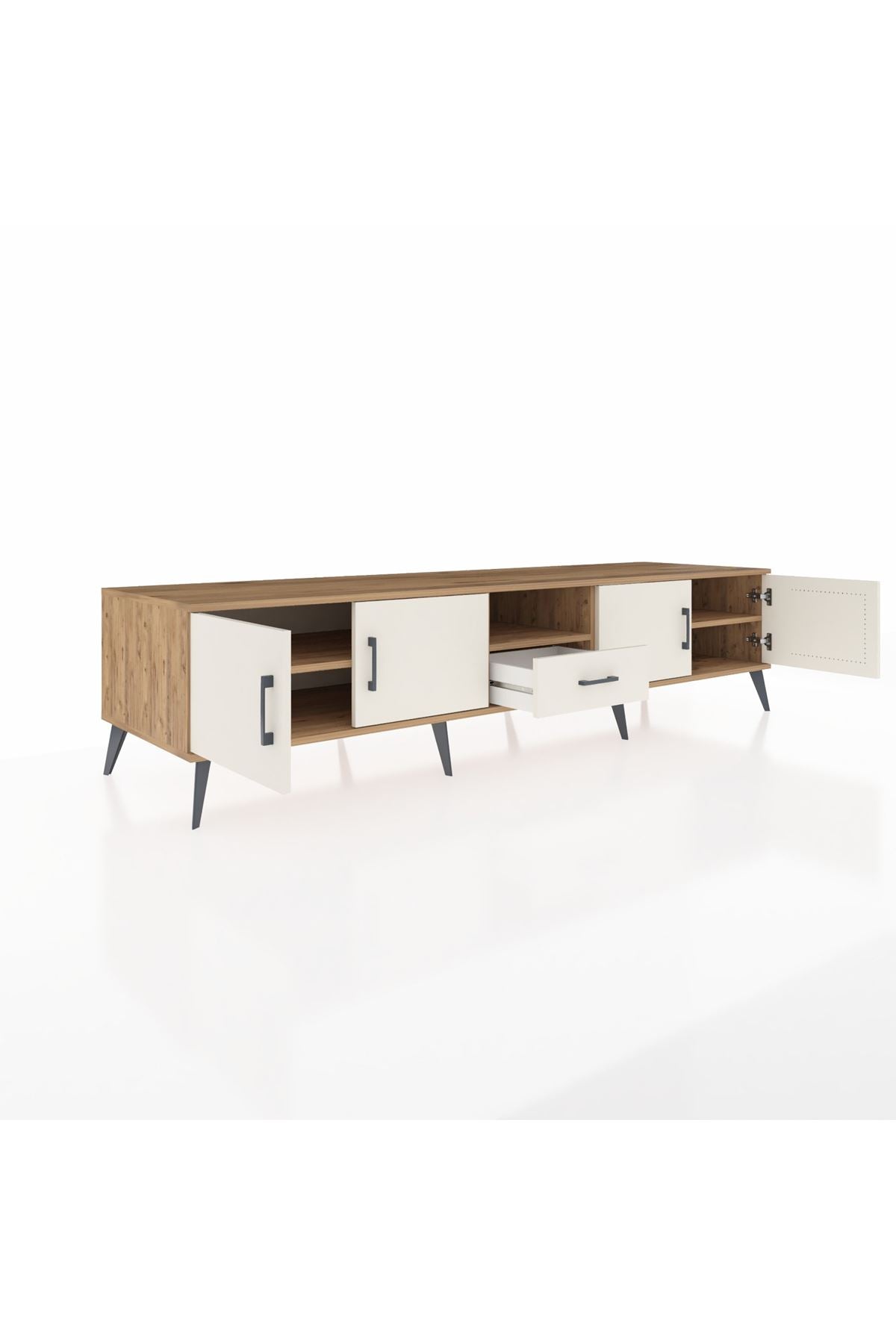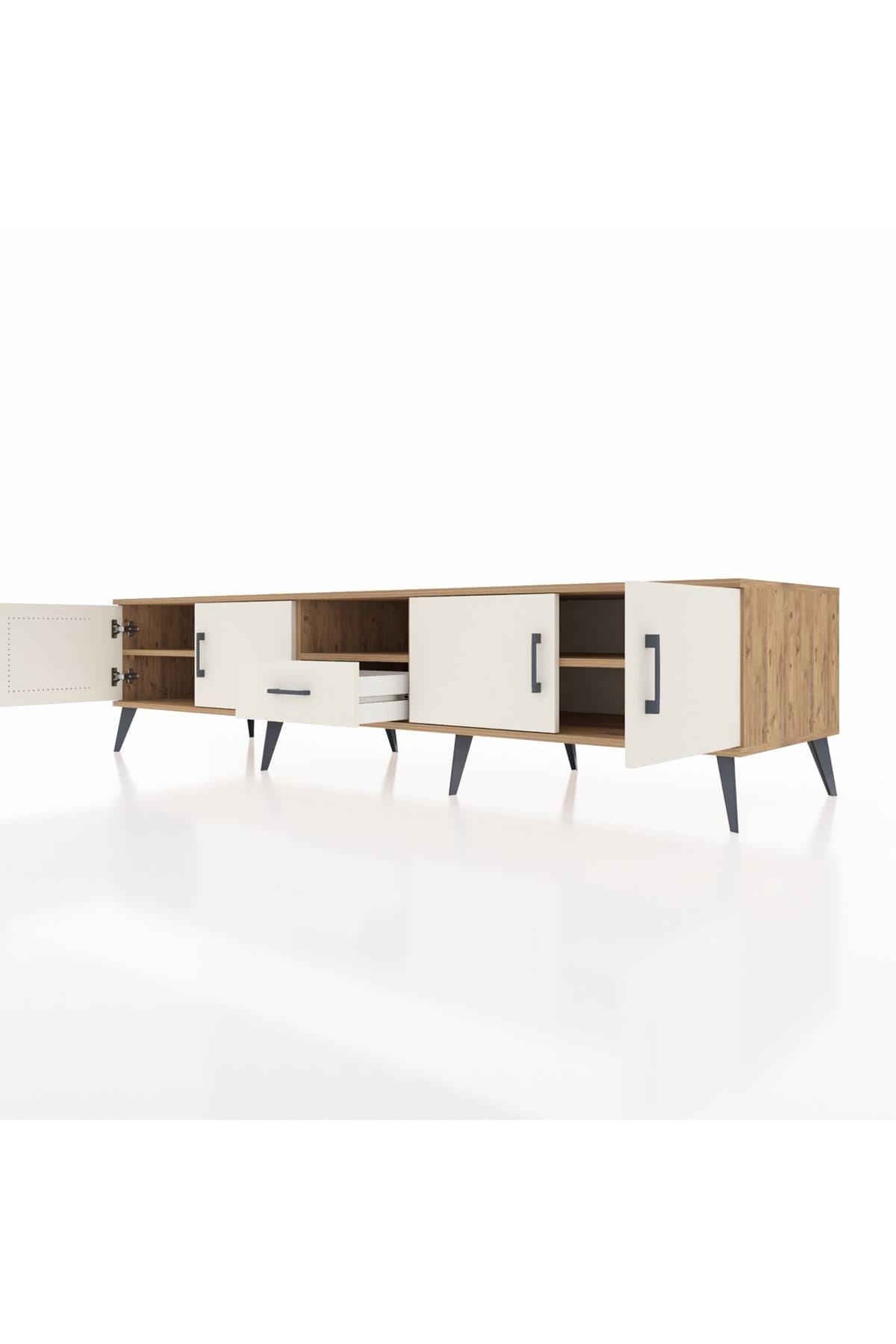 Kronos TV Ünitesi 3 Raflı Tek Çekmeceli 4 Kapaklı 220x59x51 Çam-Aytaşı
