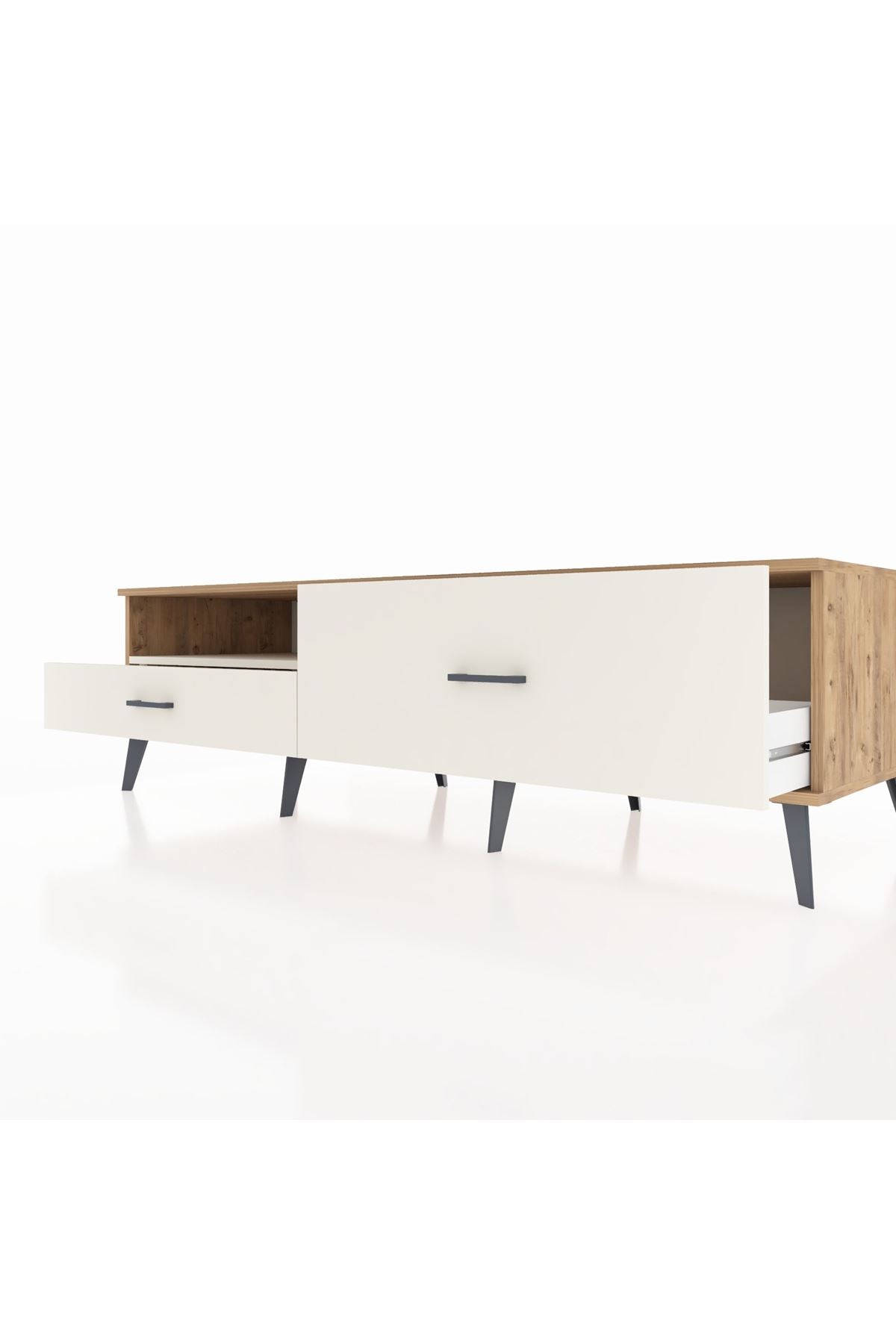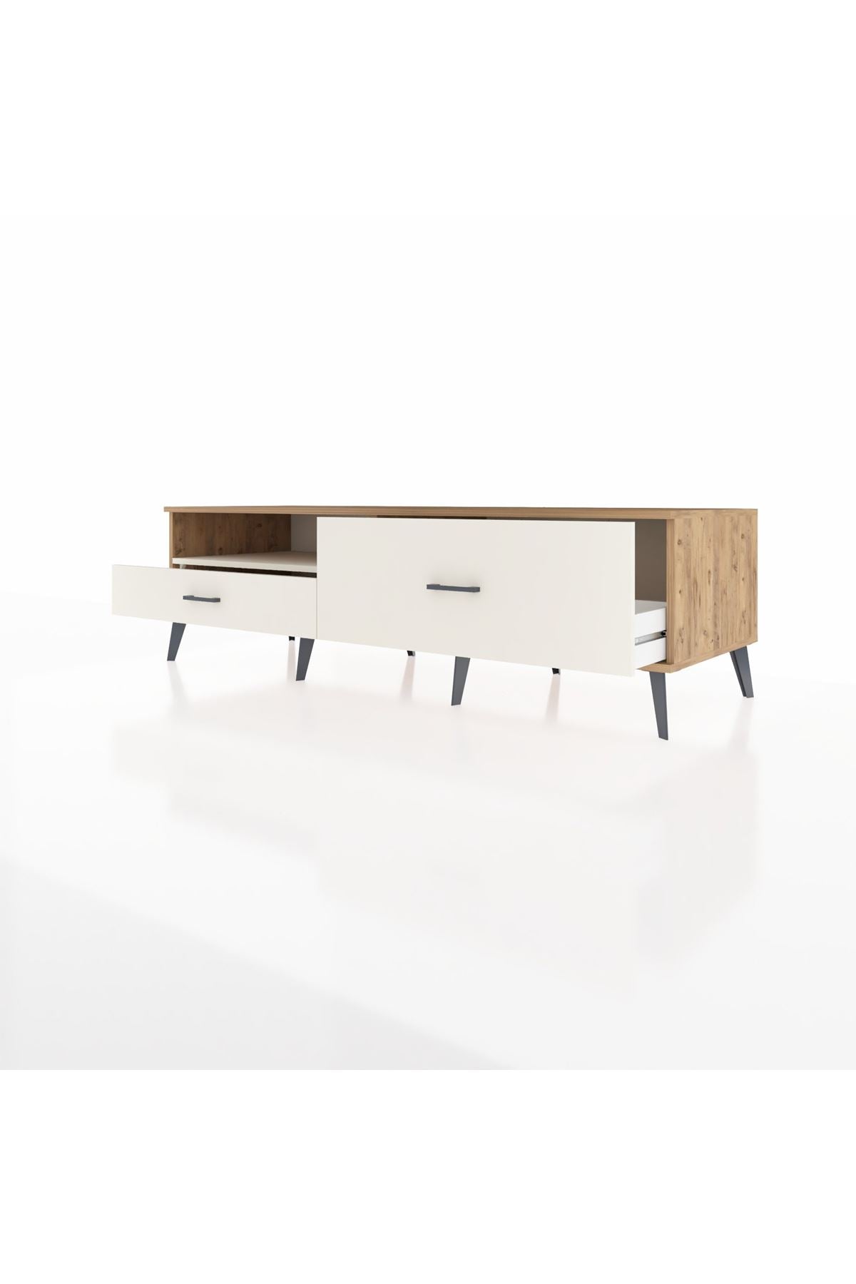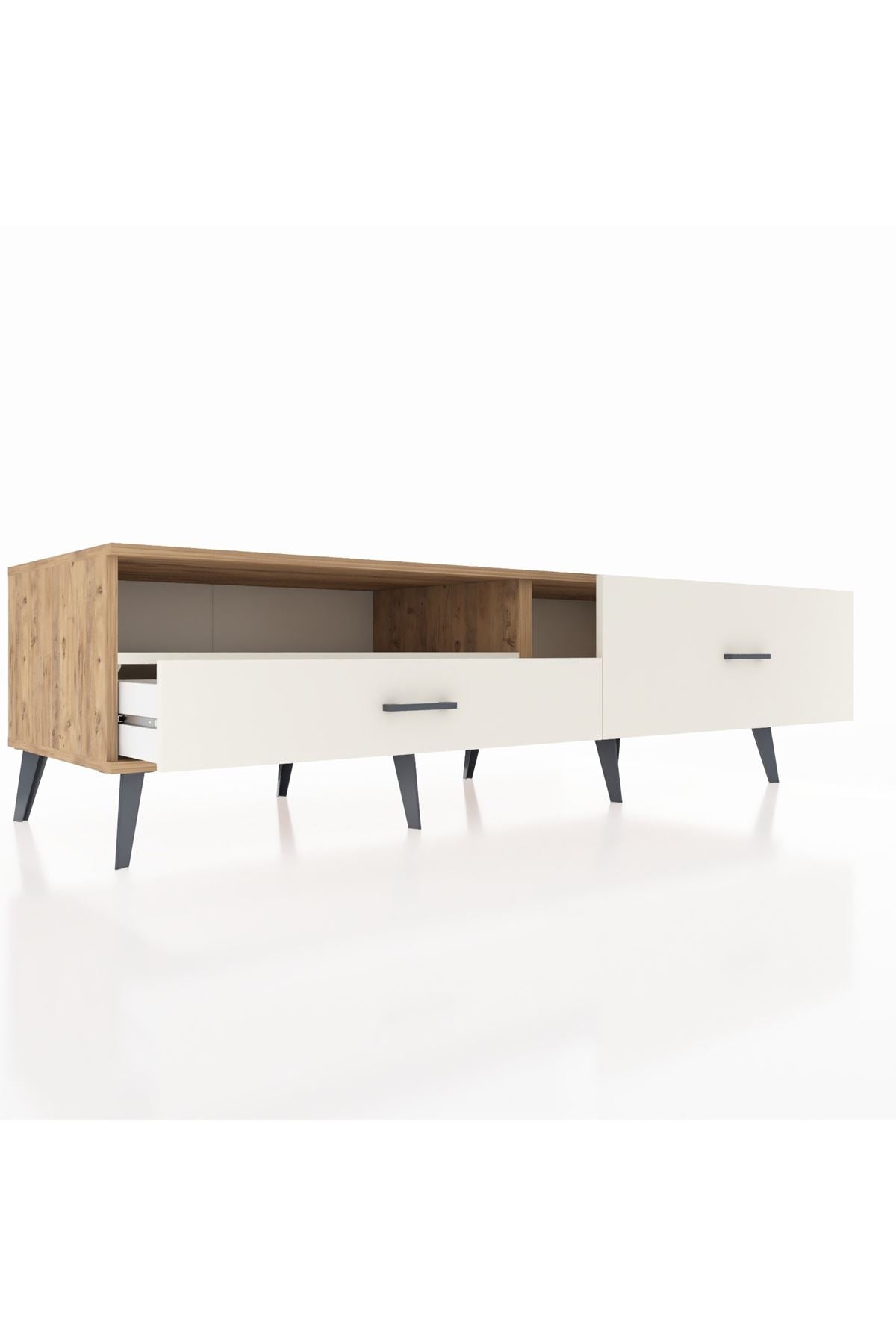 🦾 Metal ayakları ve metal kulpları sayesinde modern bir görünüme sahip olan bu TV ünitesi, sağlam yapısıyla uzun yıllar boyunca güvenle kullanabileceğiniz bir üründür. Robot süpürge kullanımına uygun ayak yüksekliği sayesinde temizlik de artık çok daha kolay!