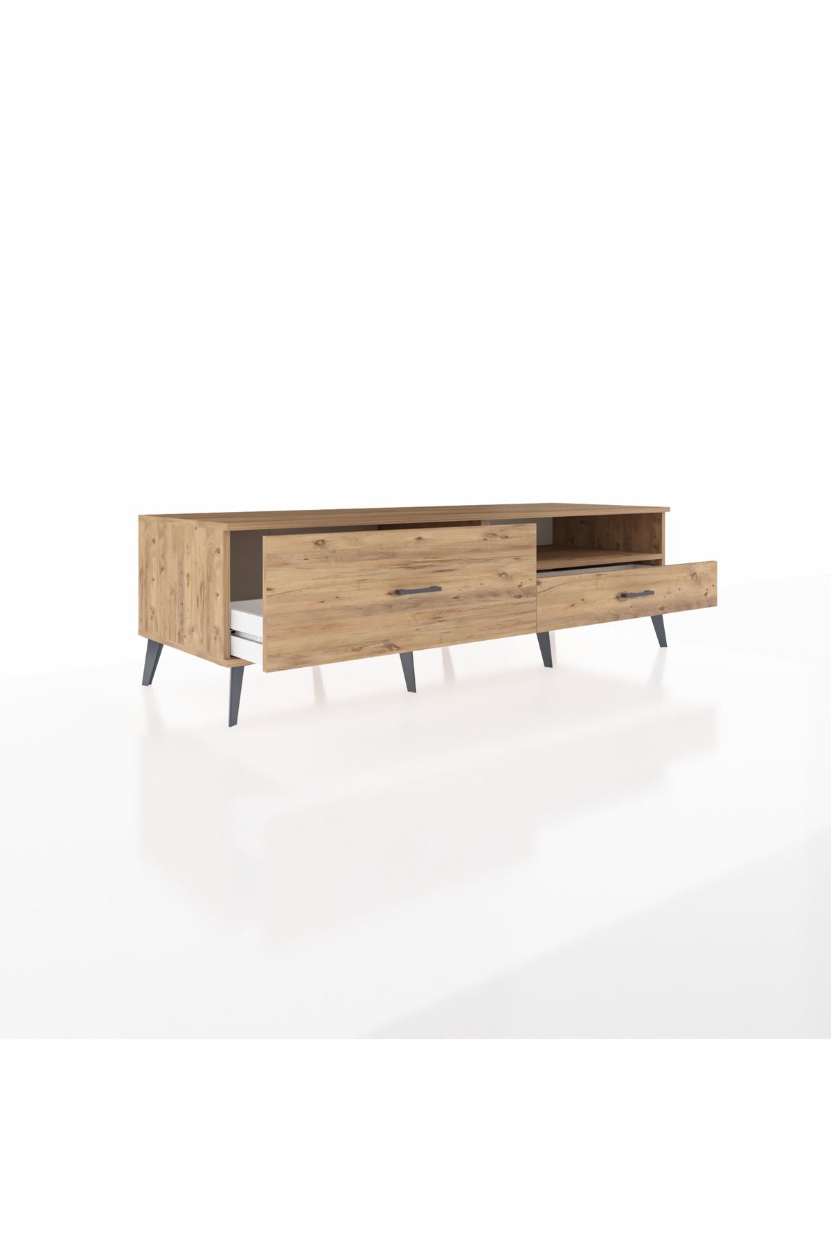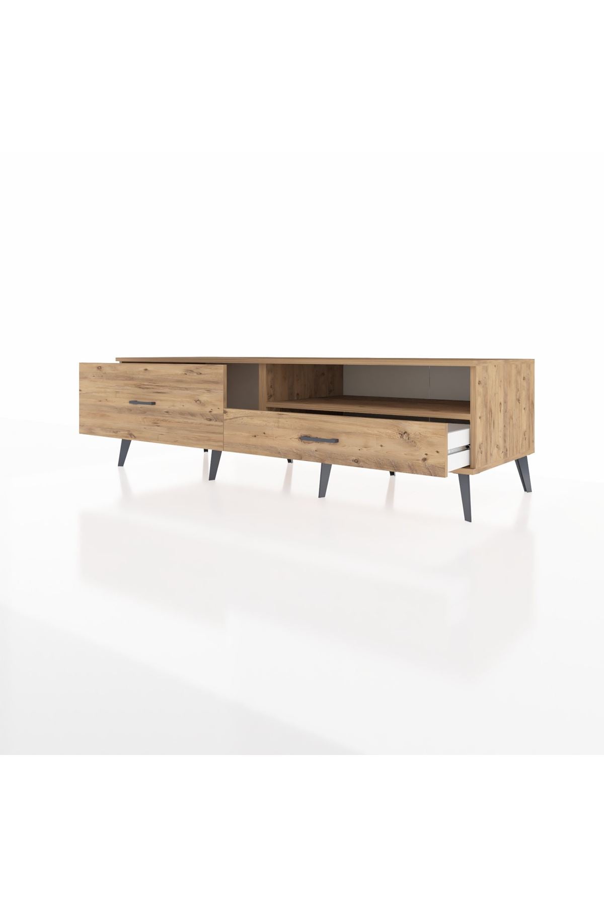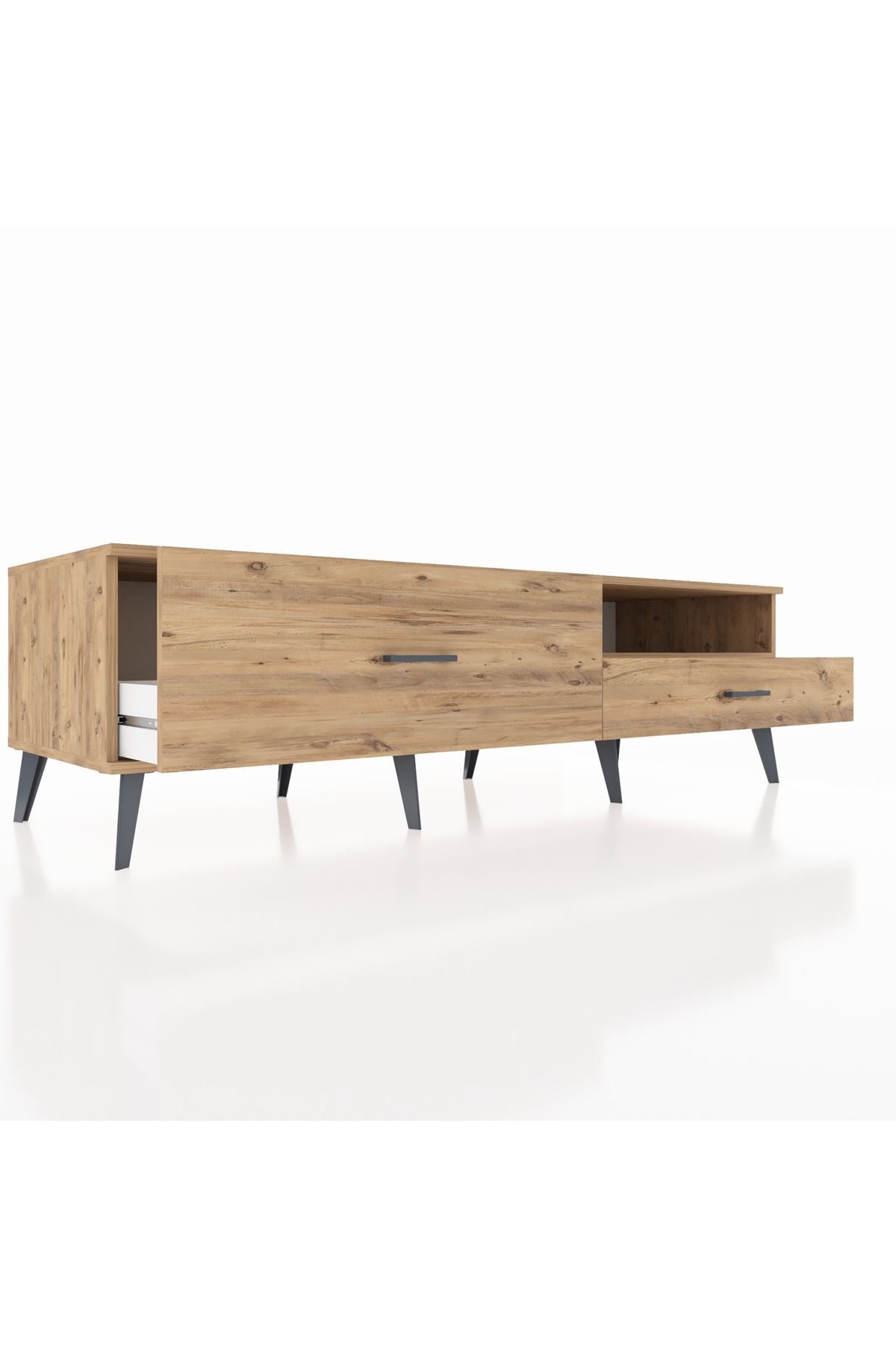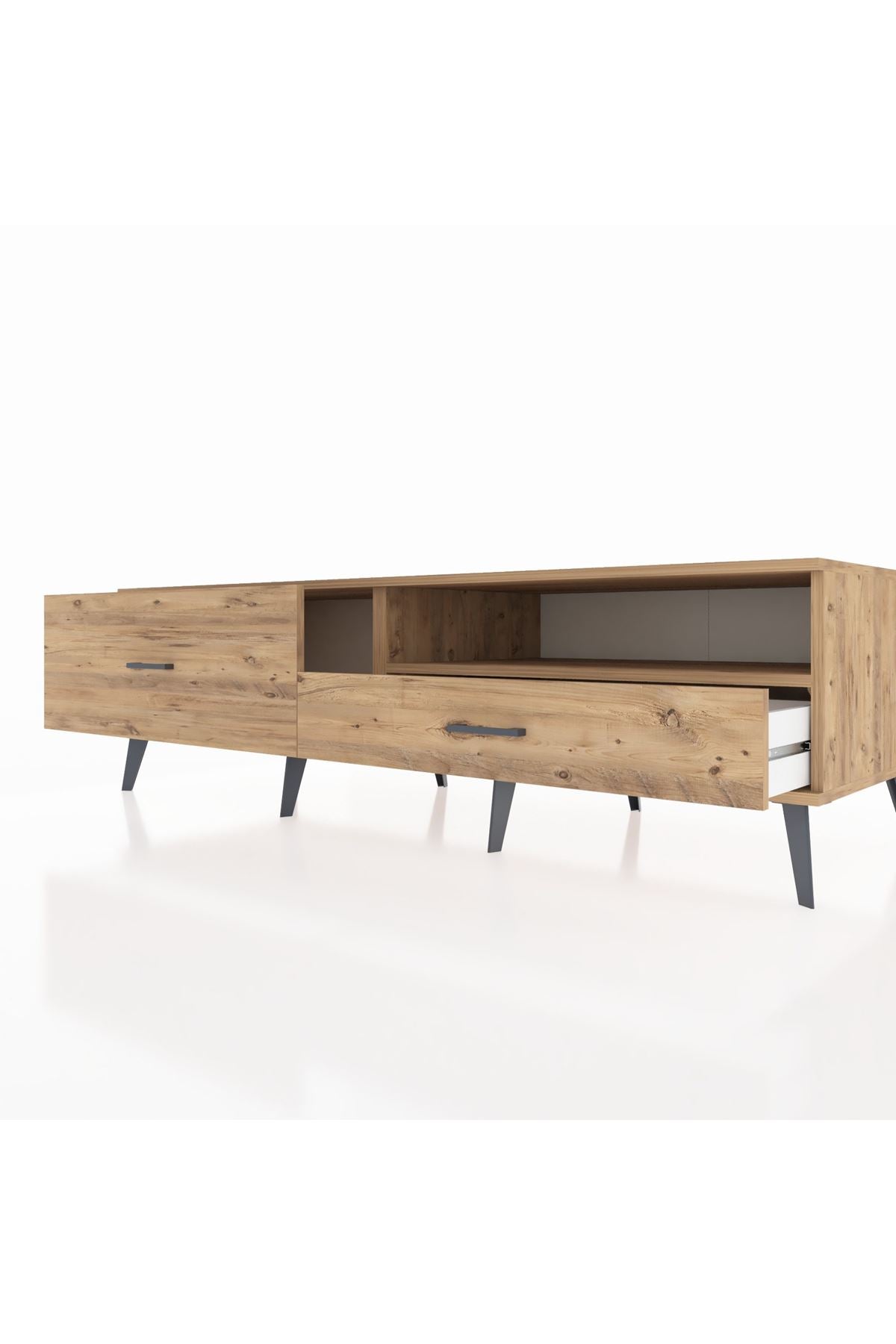 🦾 Metal ayakları ve şık metal kulpları sayesinde modern bir görünüm sunan bu TV ünitesi, sağlam yapısıyla da dikkat çekiyor. Robot süpürge kullanımına uygun ayak yüksekliği sayesinde temizlik artık çok daha kolay! 🧹