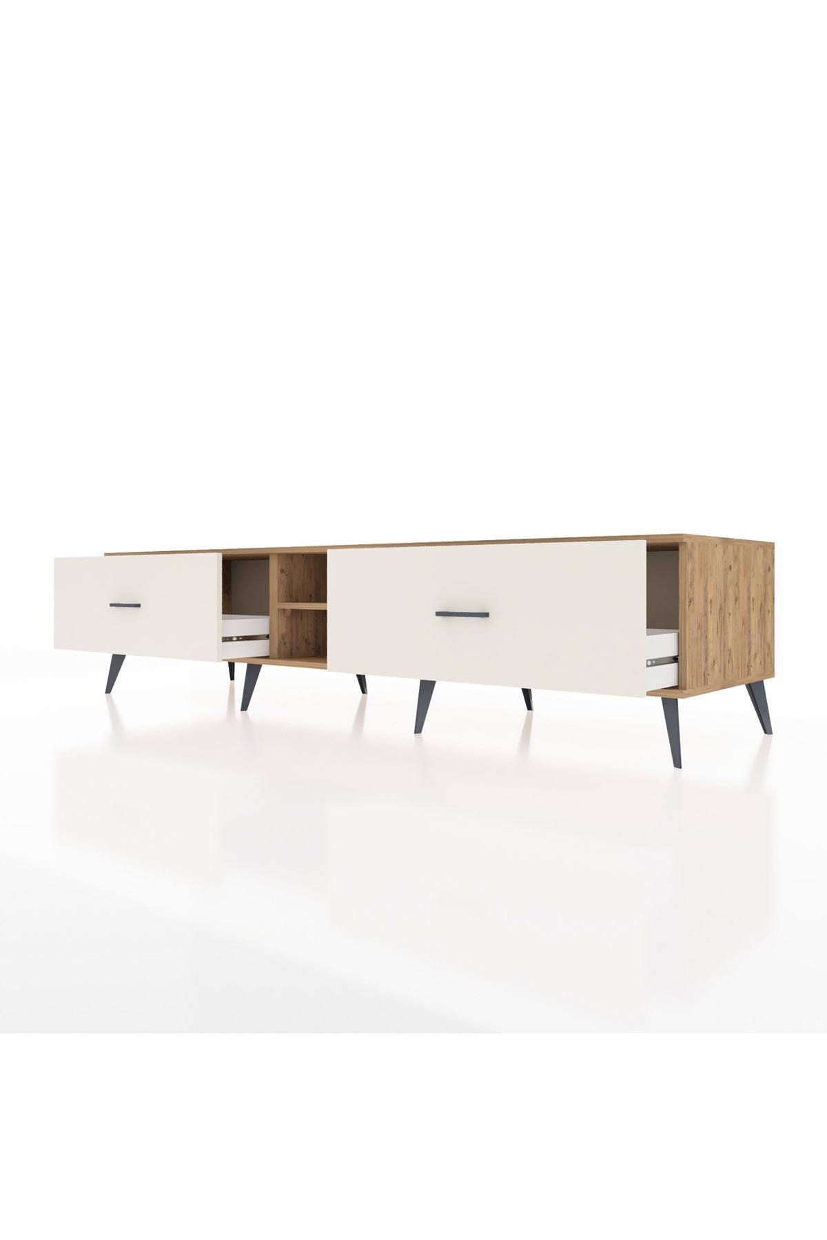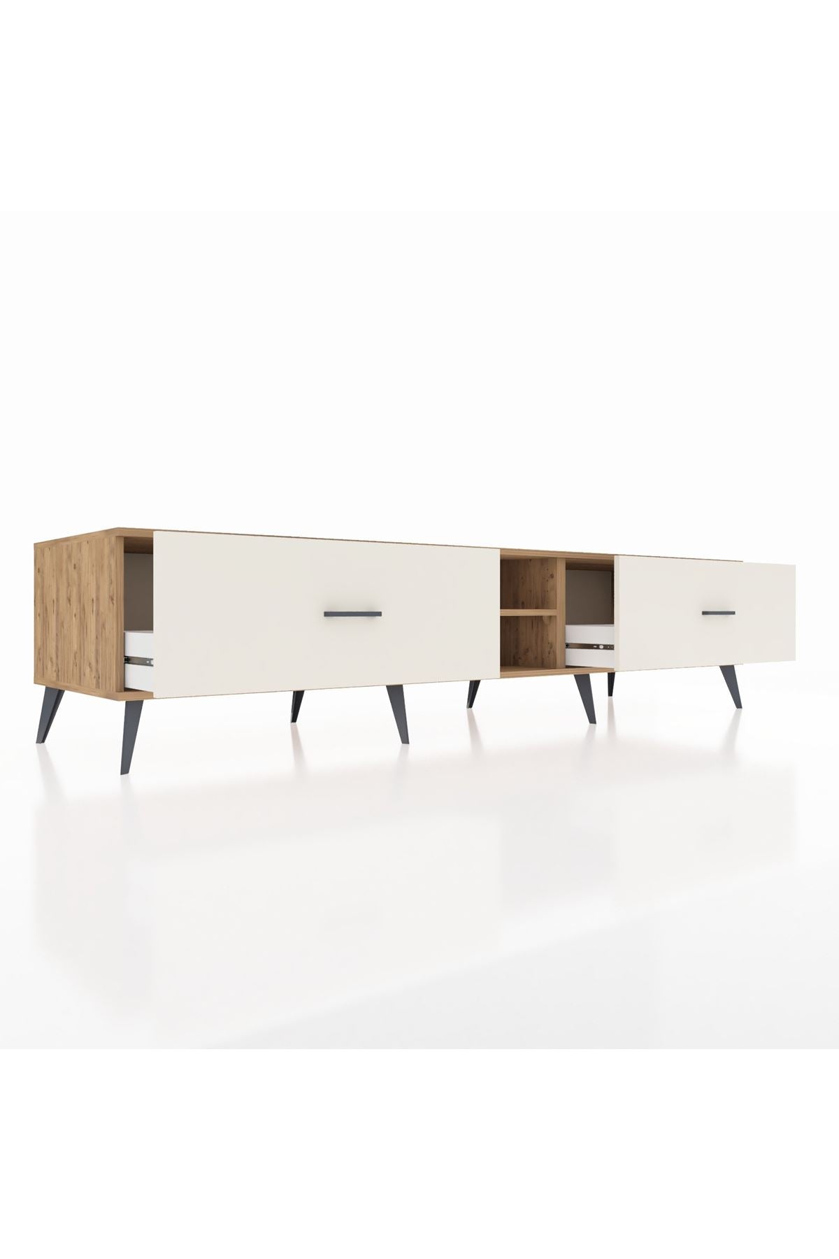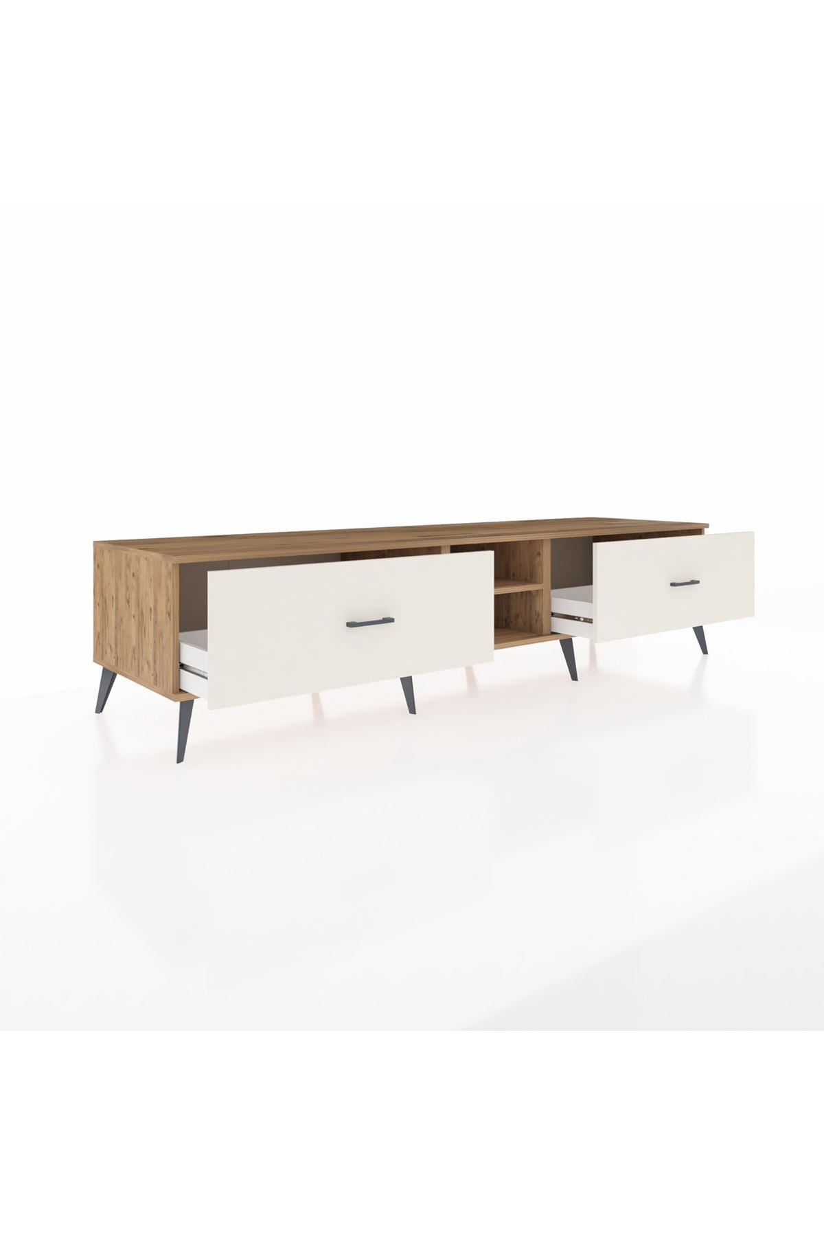 🦾 Metal ayakları sayesinde robot süpürge kullanımına uygun yüksekliğe sahip olan bu TV ünitesi, aynı zamanda metal kulplarıyla da şıklığı tamamlıyor. Sağlam yapısıyla yıllara meydan okur.