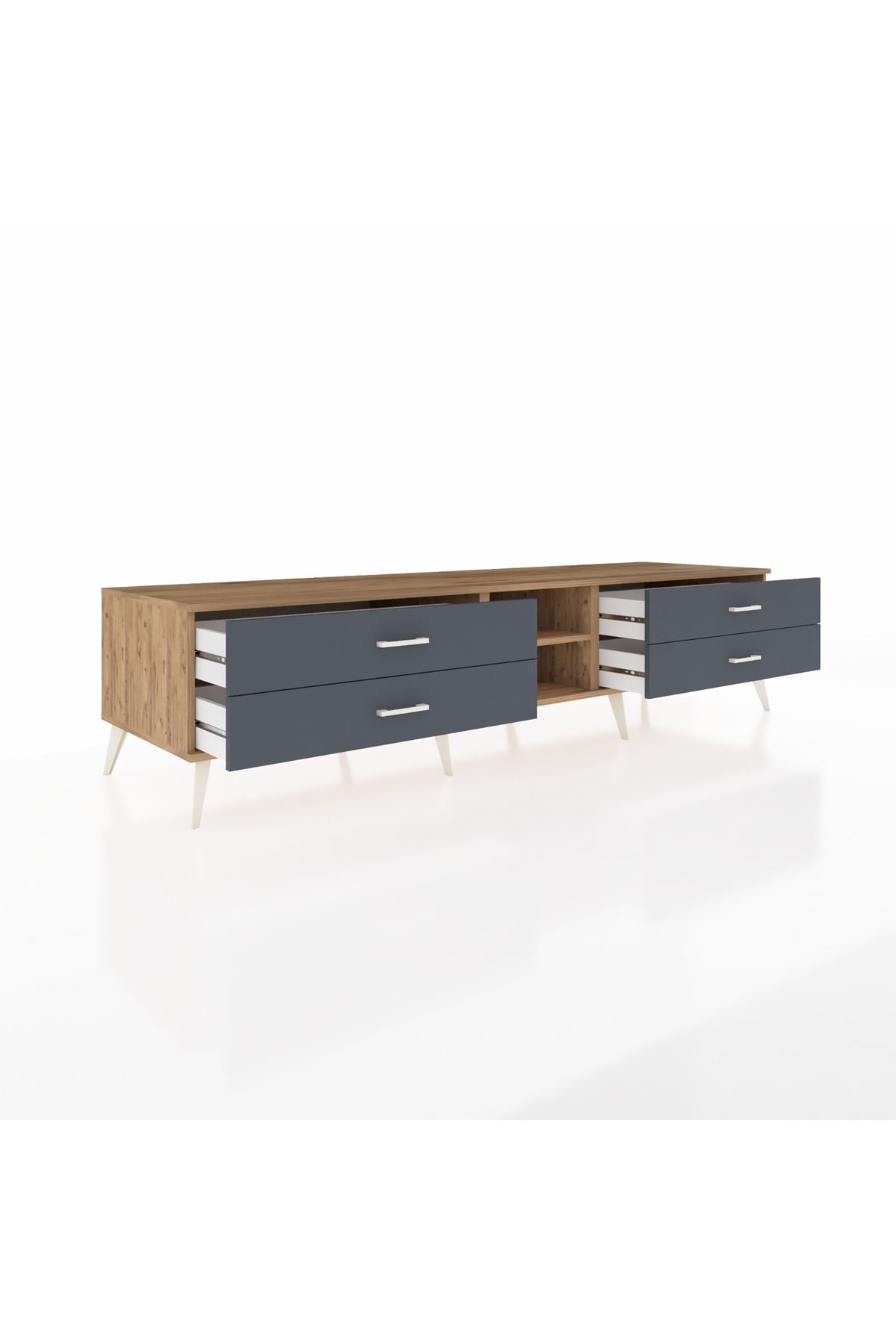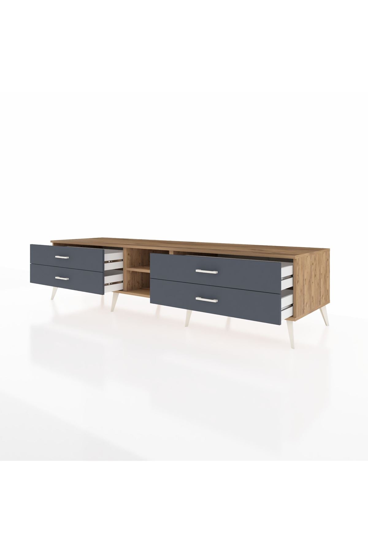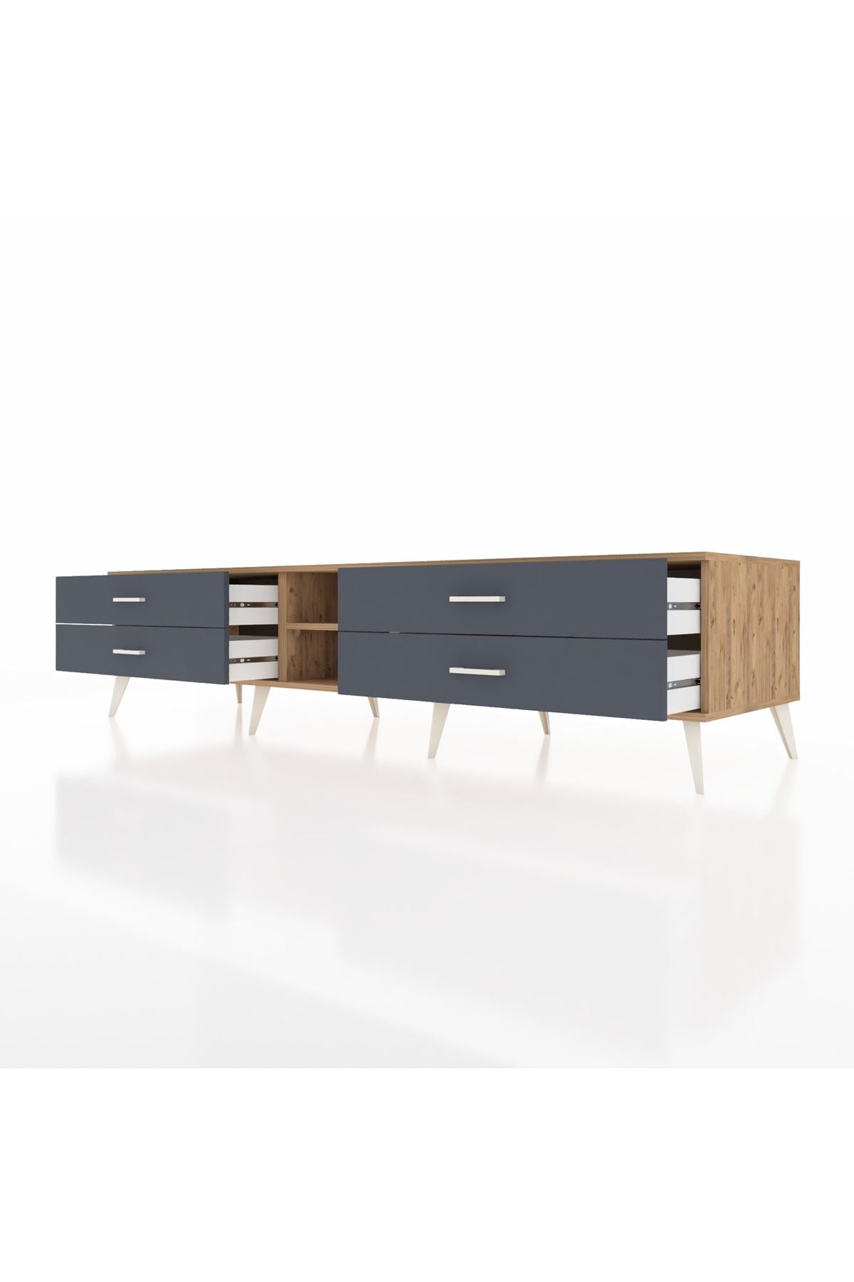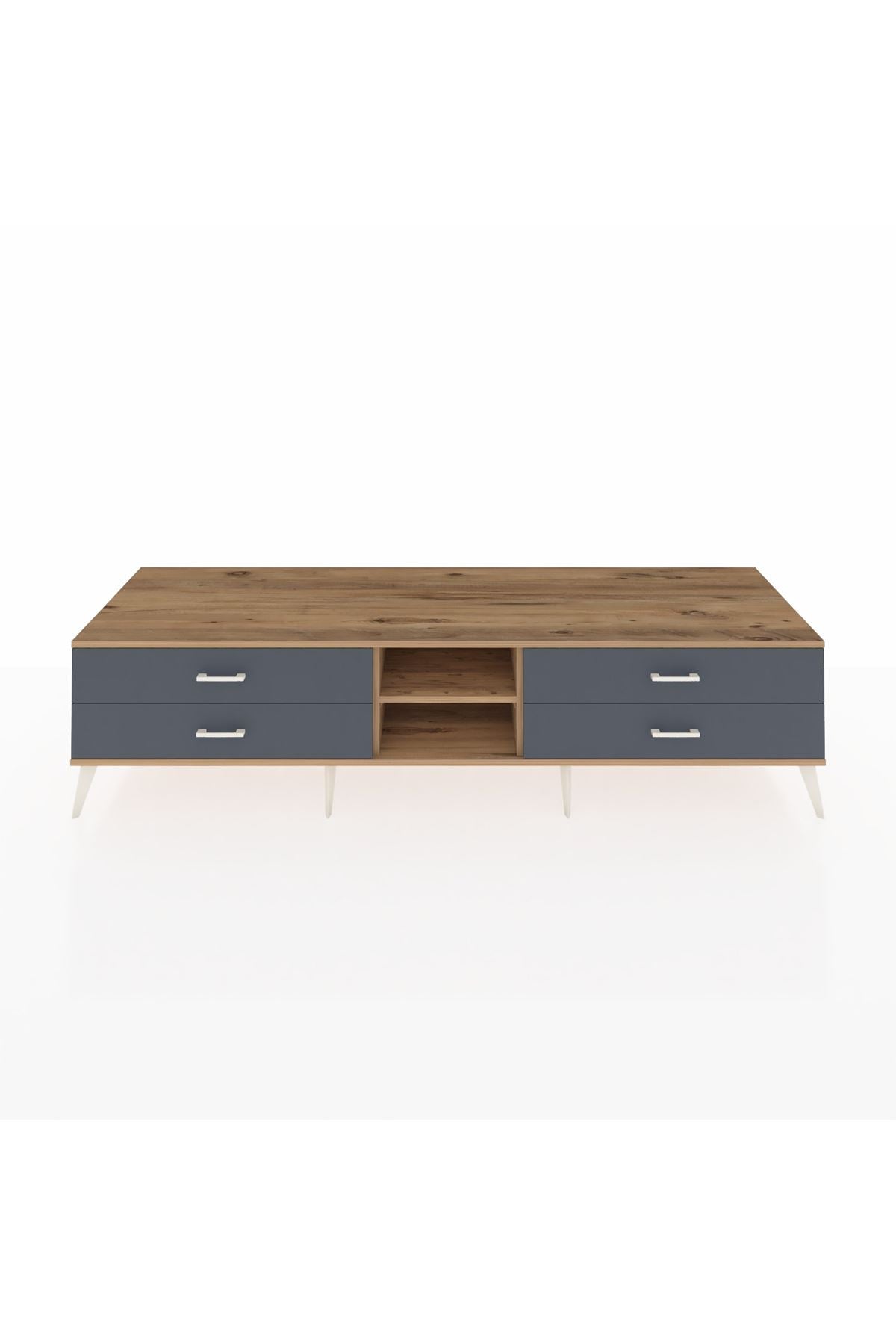 Kronos TV Ünitesi Tek Raflı 4 Çekmeceli 220x59x51 Çam-Çam/Antrasit